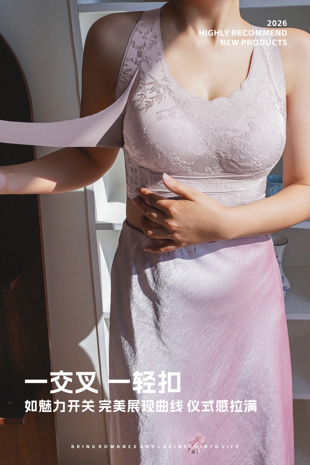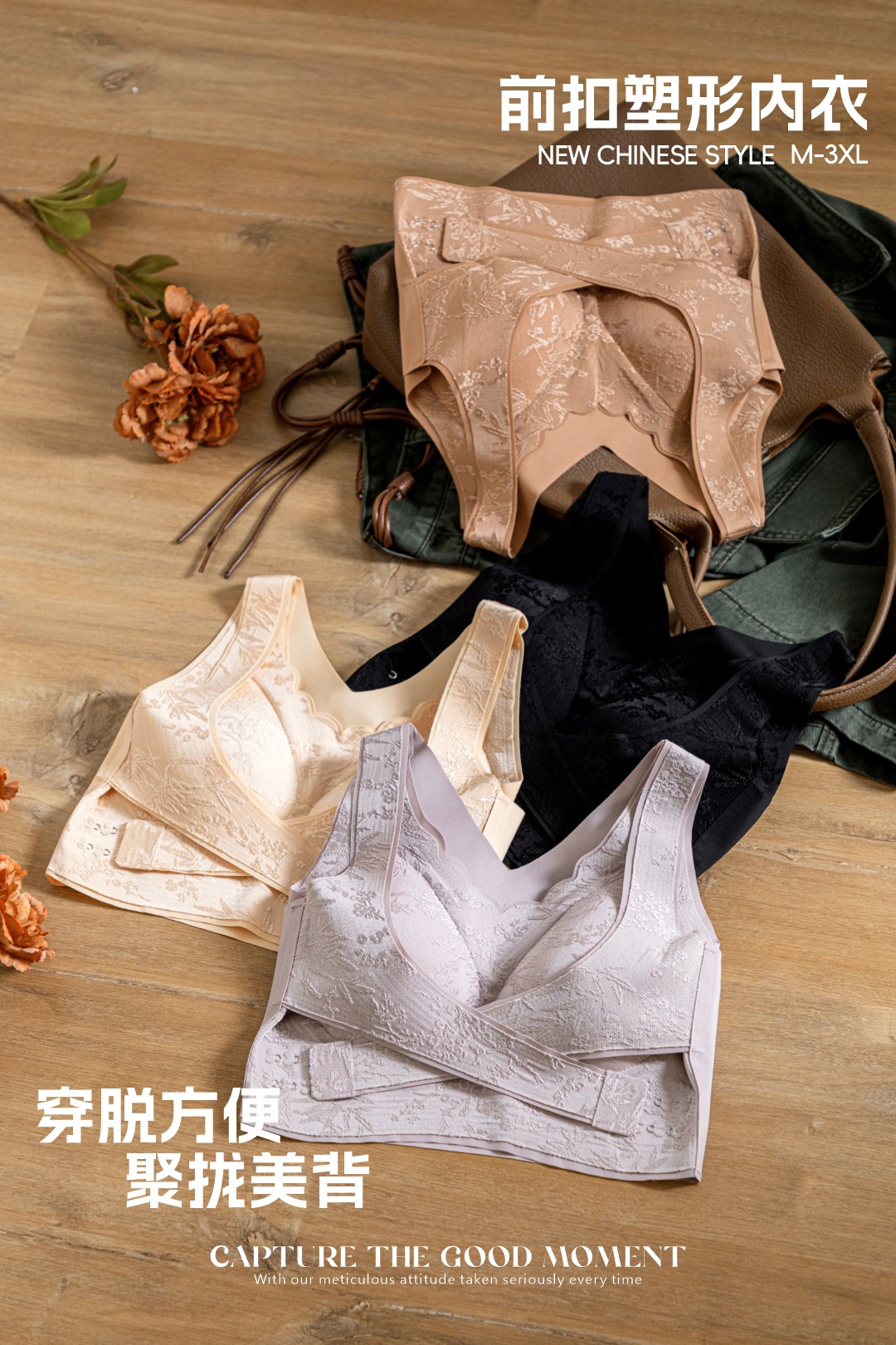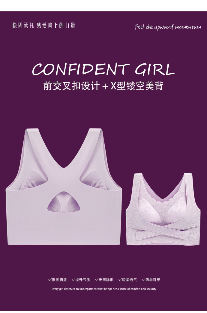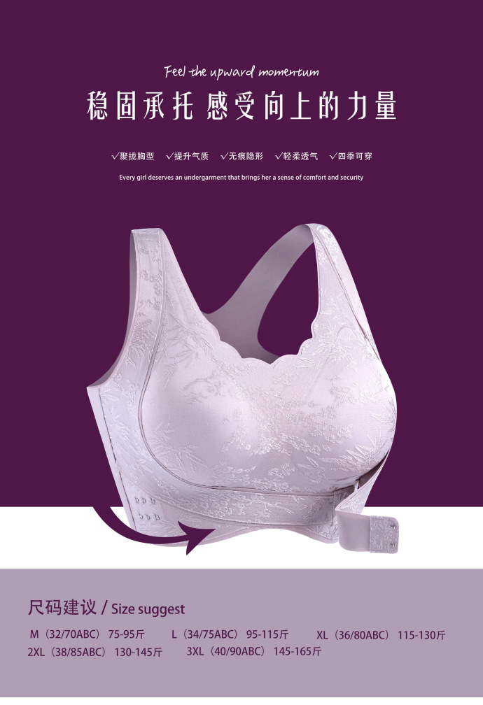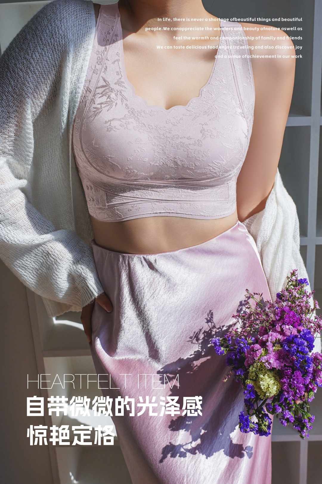 雀说国风浮雕交叉侧扣背心式文胸调整型美背收副乳上托无钢圈运动内衣ALW2358
