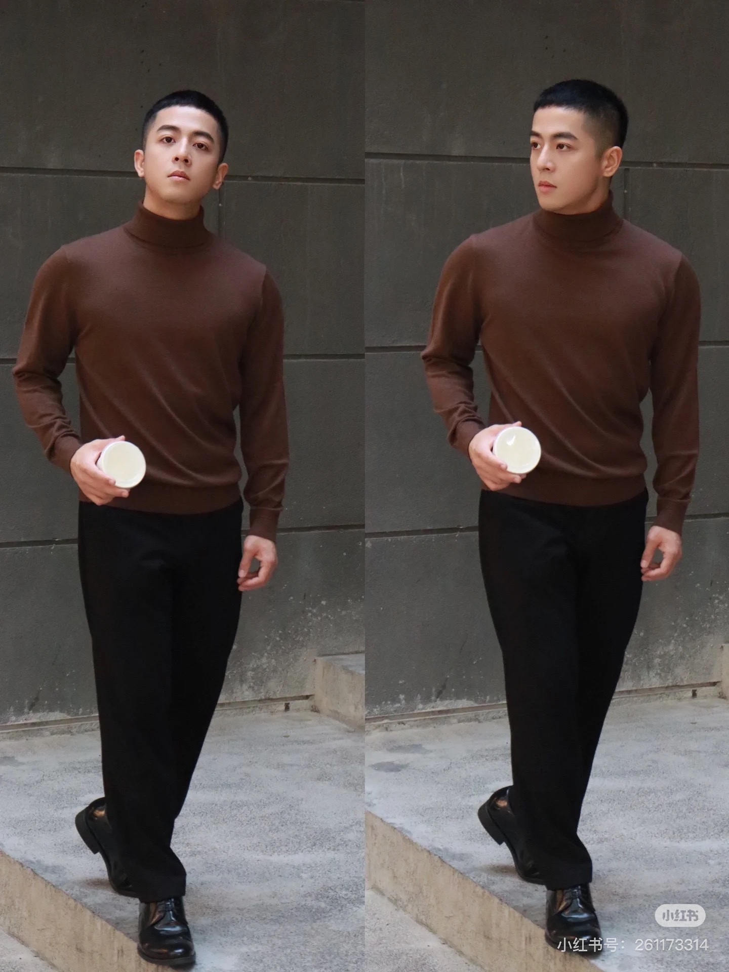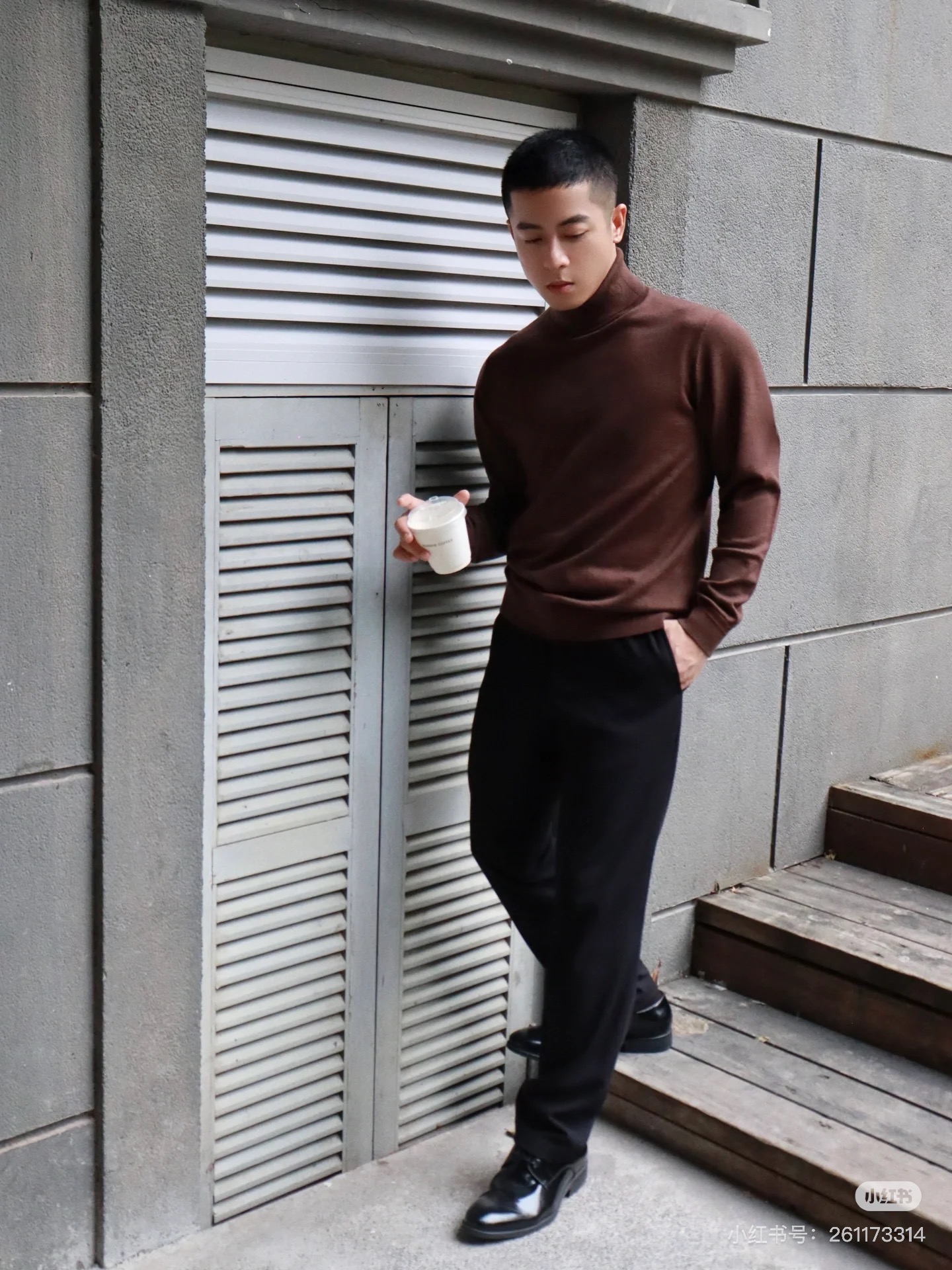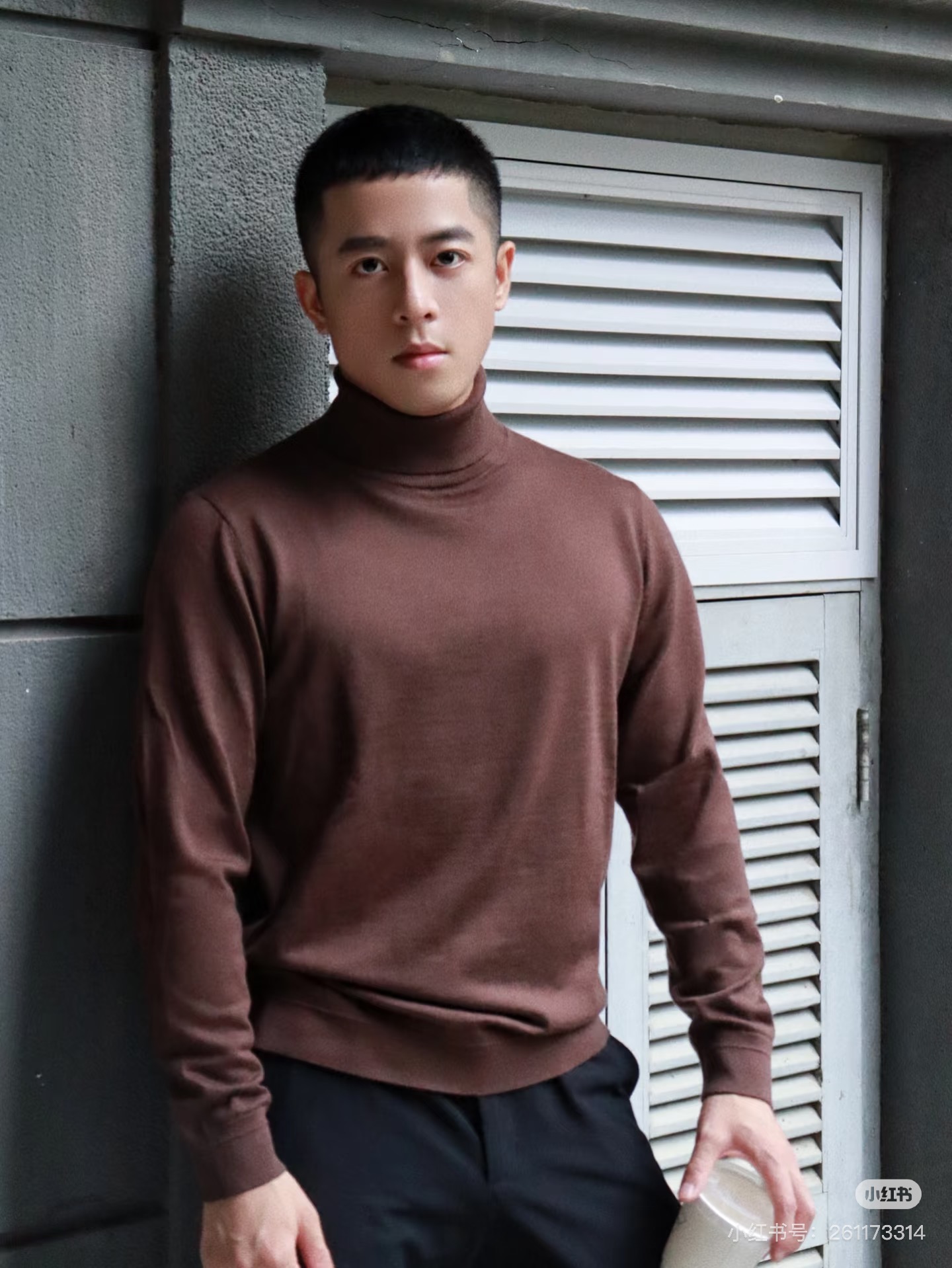 对标杰尼亚的顶级品质货‼️ 【秋冬男士高领纯色针织衫毛衣】 🍂以黄金配比,重塑秋冬暖意拒绝臃肿,亦不拘于娇贵。这件男士高领针织衫,以精密计算的纤维配比,成就贴心穿着体验。