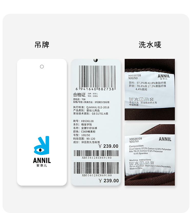 【实体店同款】男童全腰针织长裤秋季新款安奈儿童装XB536128