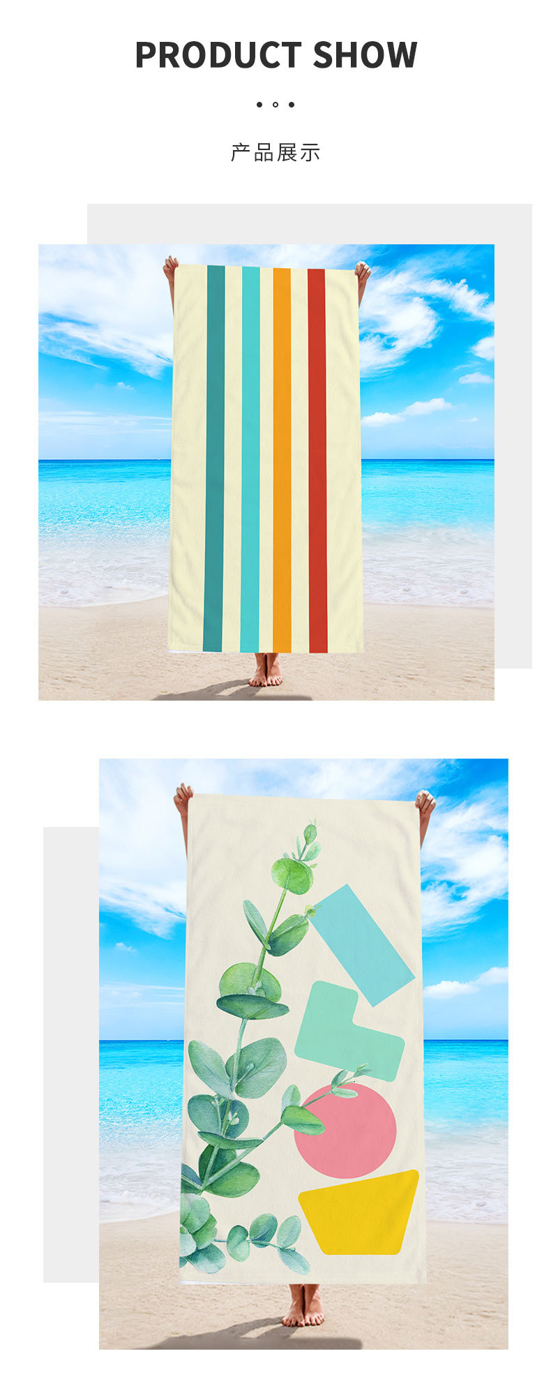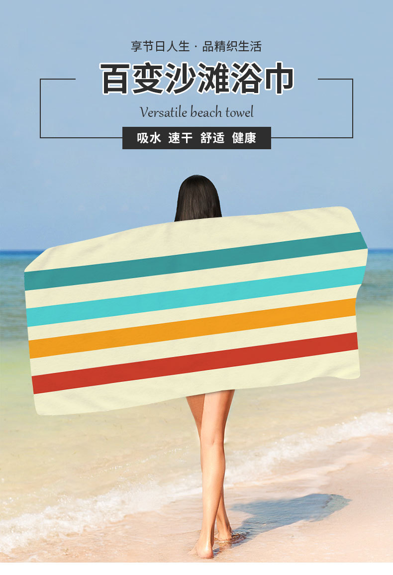 双面毛巾布沙滩巾,印花超细纤维沙滩游泳浴巾MQ- 47038