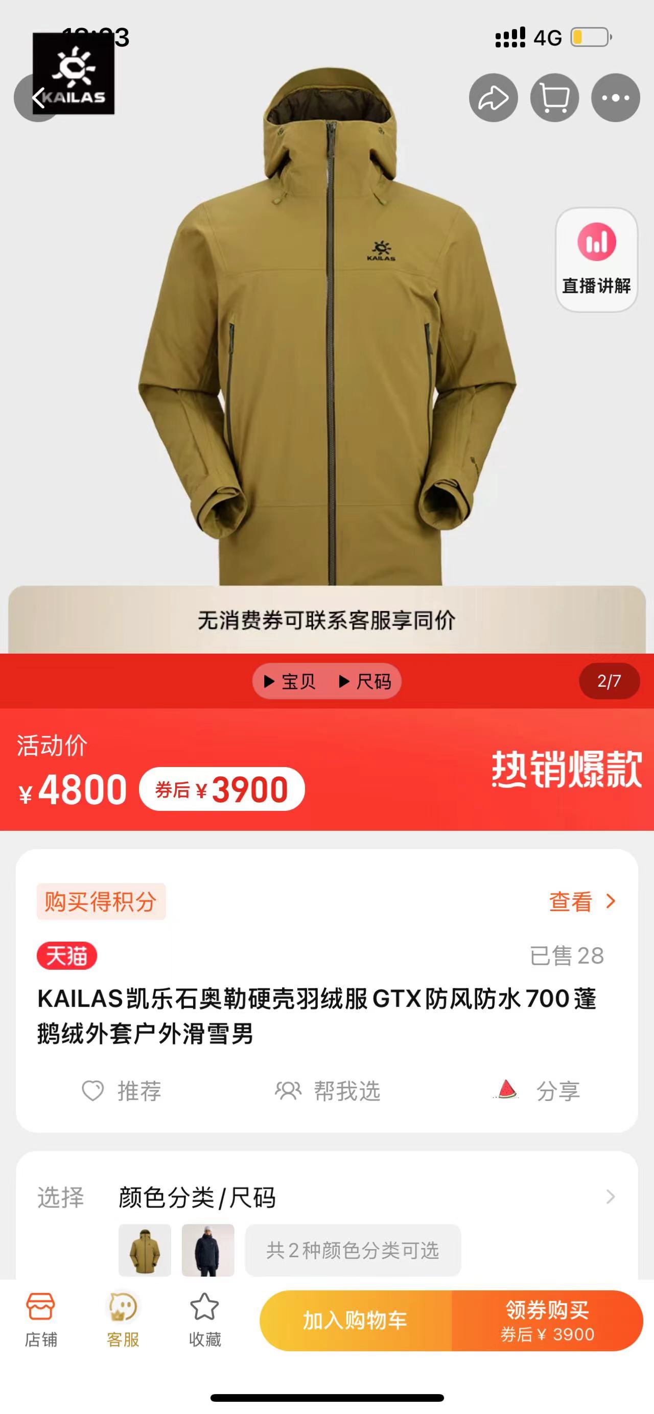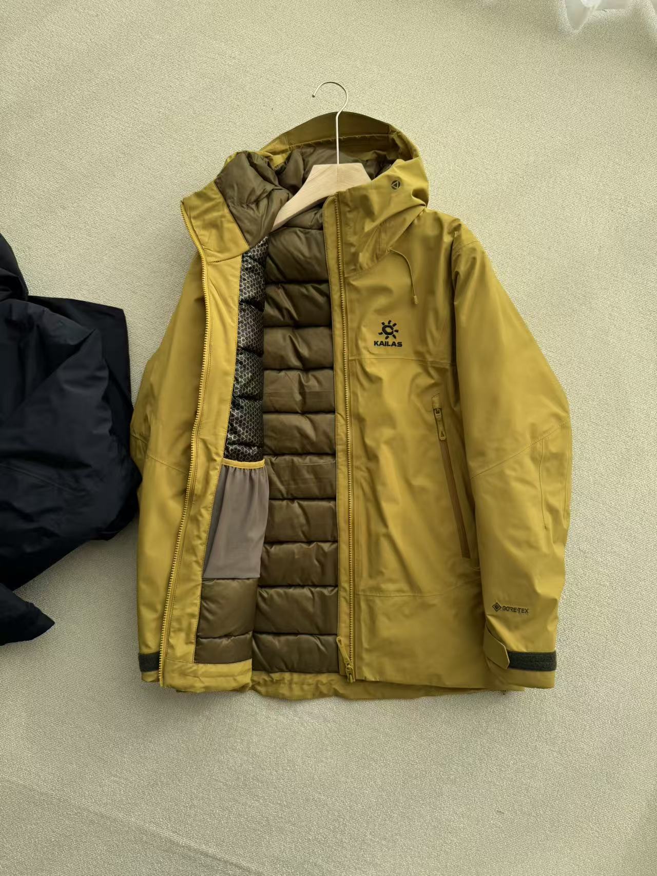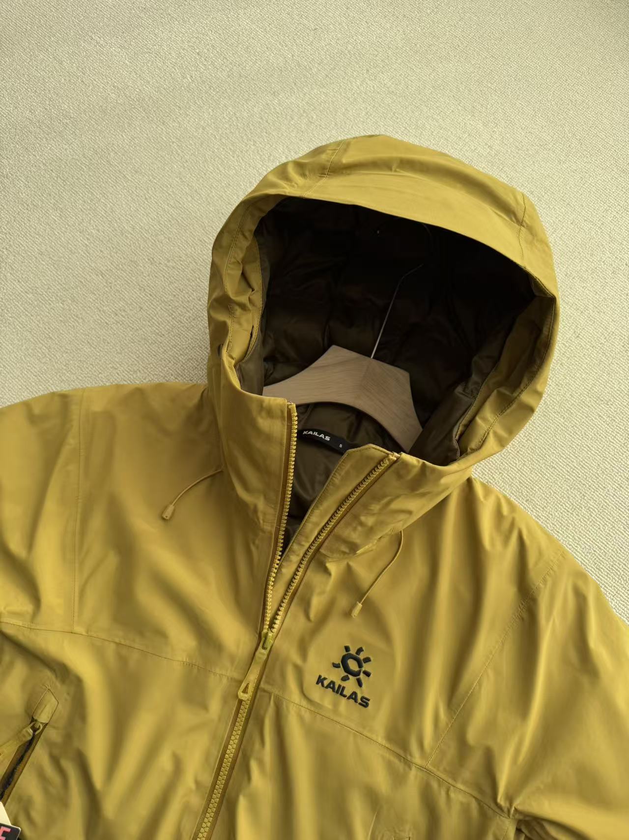凯乐石奥勒硬壳羽绒服GTX防风防水700蓬鹅绒羽绒服,「硬核防护」GORE-TEX面料,“暴雨暴雪都不怕:GORE-TEX科技膜加持,防水指数10000+、透气指数8000+,户外湿冷环境下,既能挡住风雨,又能排出体内湿气,告别闷汗黏腻”「轻暖双杀」700蓬90绒“穿得暖还不臃肿:填充国标90%白鹅绒,700蓬松度+锁绒工艺,-20℃极寒环境也能锁温,同时保持轻量化,滑雪、徒步时无负重感,连帽+双向抽绳:贴合头部,风雪不灌,腋下透气拉链:运动时拉开快速散热,避免闷热;袖口/下摆收紧:魔术贴+抽绳双重固定,锁温防漏风,多口袋布局:内侧贴袋+外侧防水拉链袋,随身物品安全防丢「一衣双穿」场景适配滑雪时是专业防护装备,日常搭工装裤/牛仔裤,秒变山系穿搭,户外亮眼、通勤不突兀!