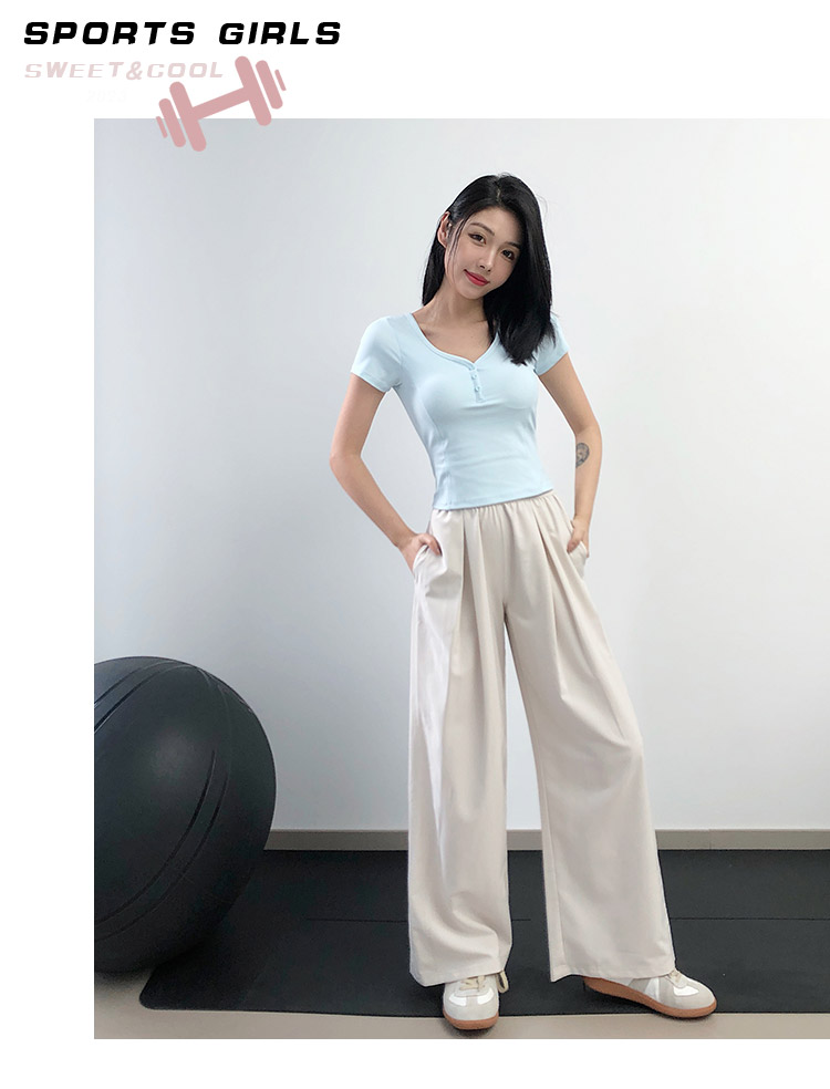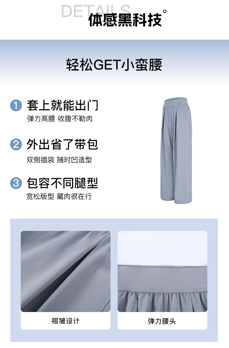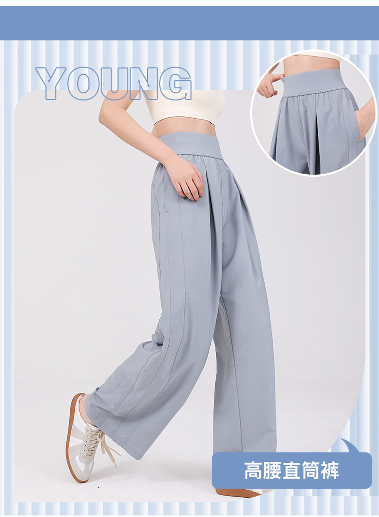 跃牌【美西西系列】高腰宽松阔腿裤女透气百搭侧袋轻盈高弹通勤运动户外瑜伽长裤CK-998