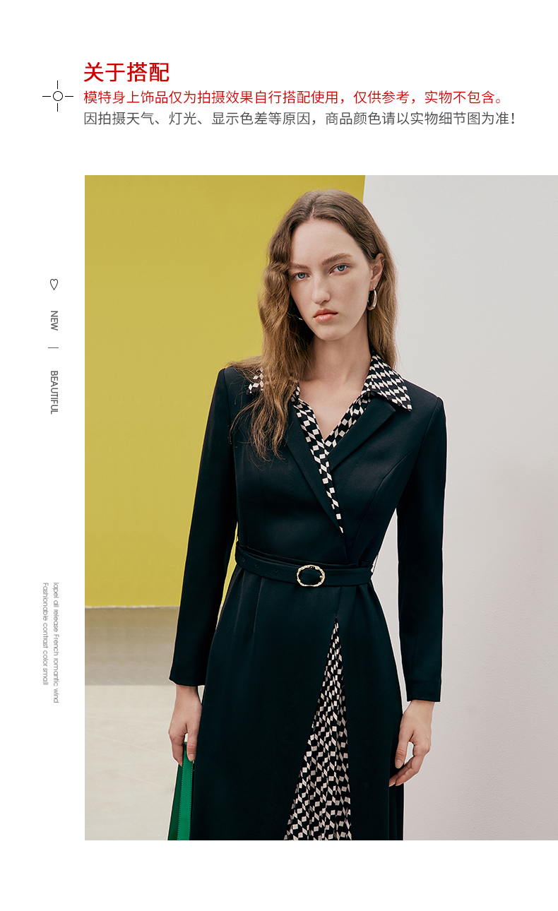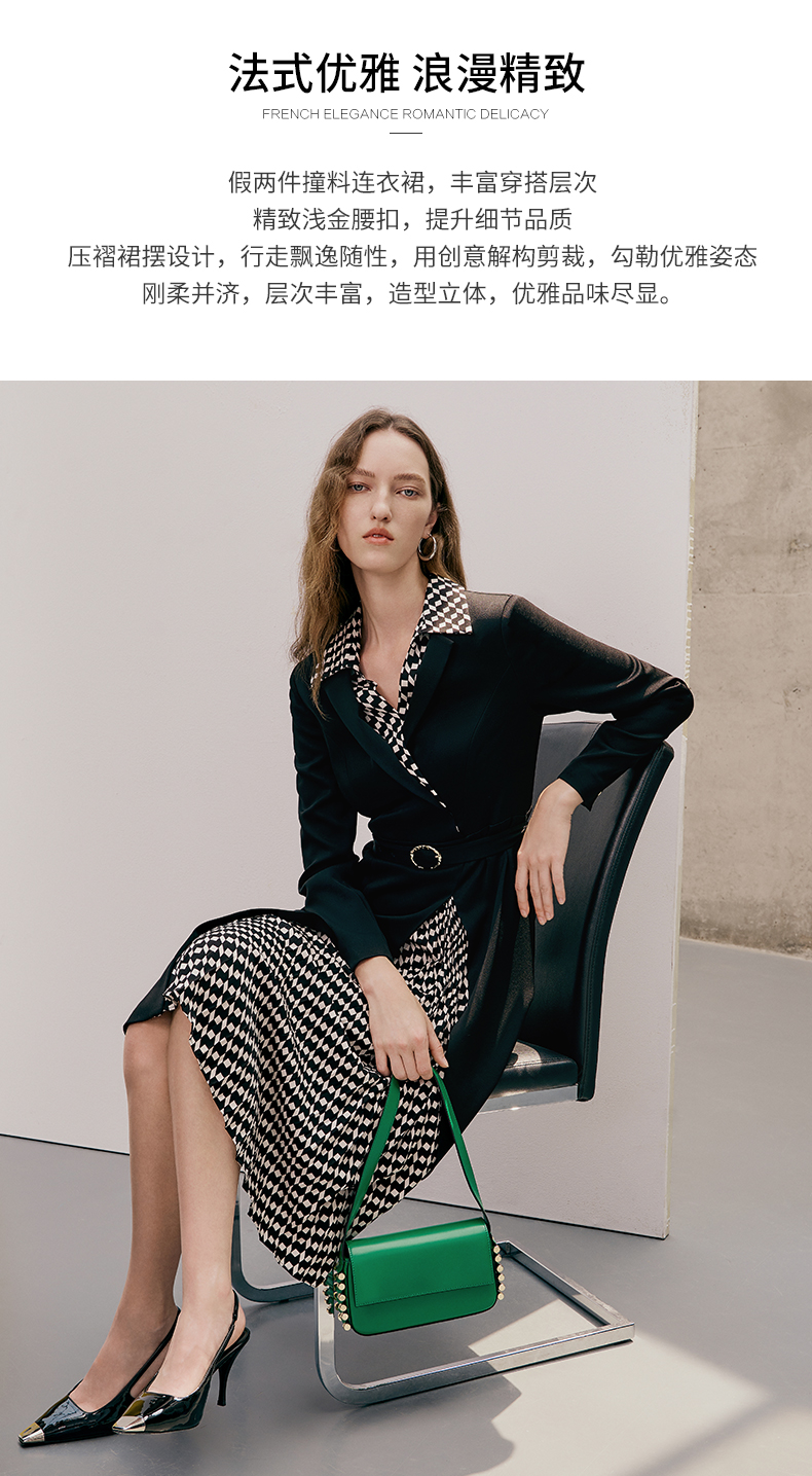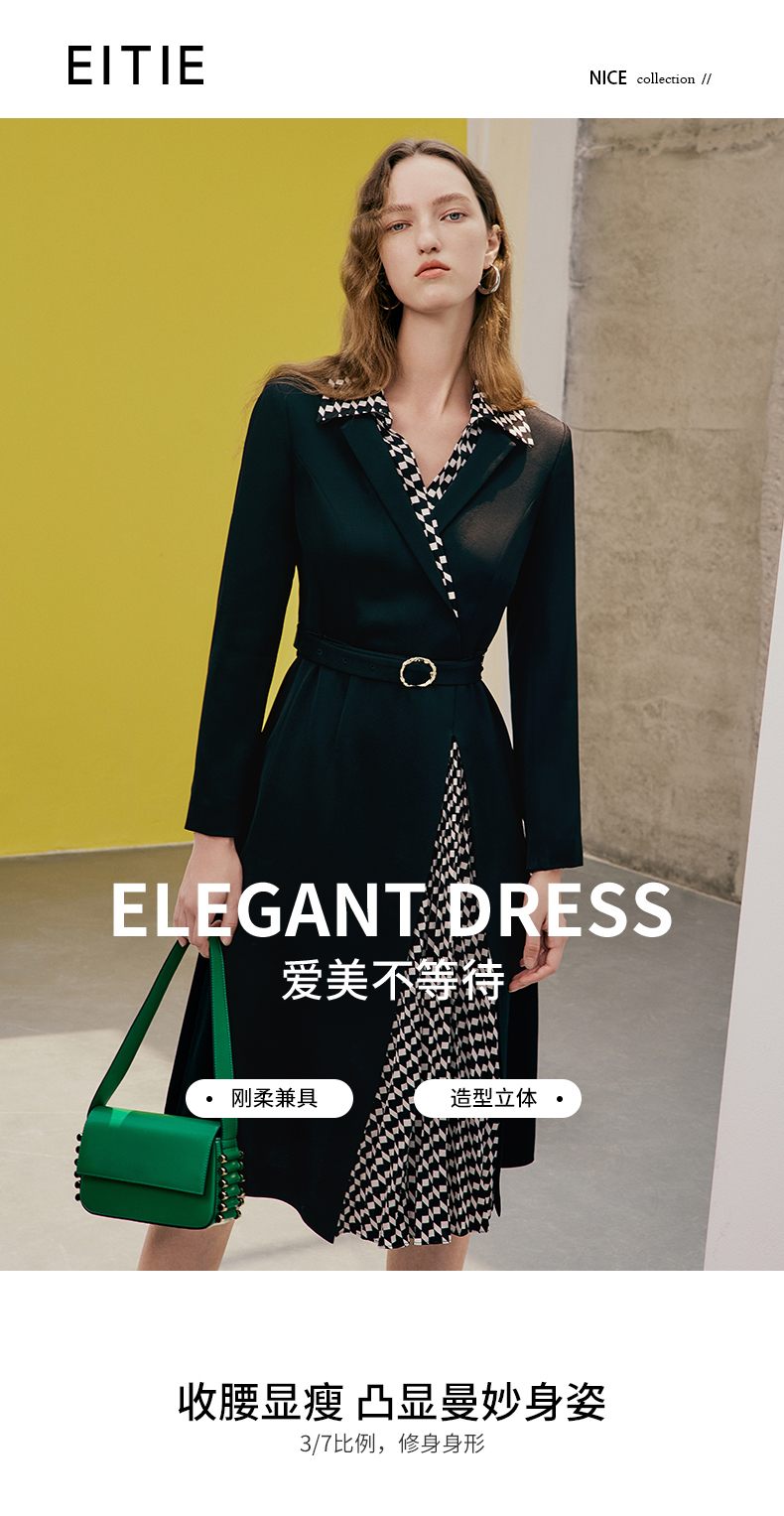 EITIE爱特爱春季新款气质时尚收腰拼接连衣裙7307008