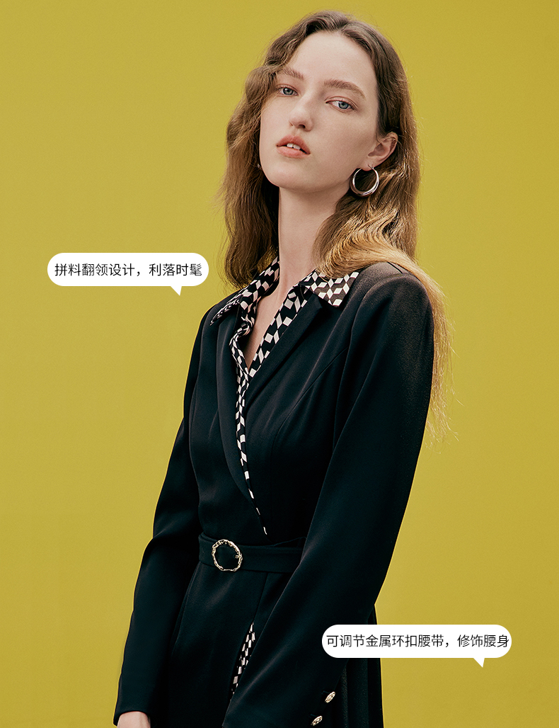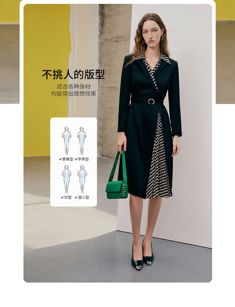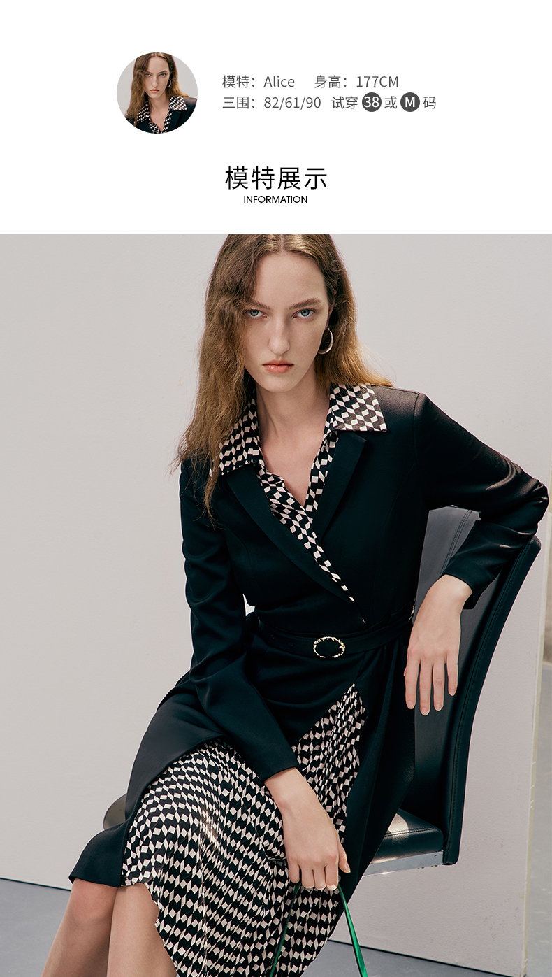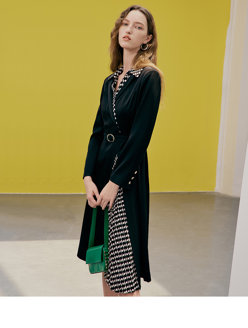 EITIE爱特爱春季新款气质时尚收腰拼接连衣裙7307008