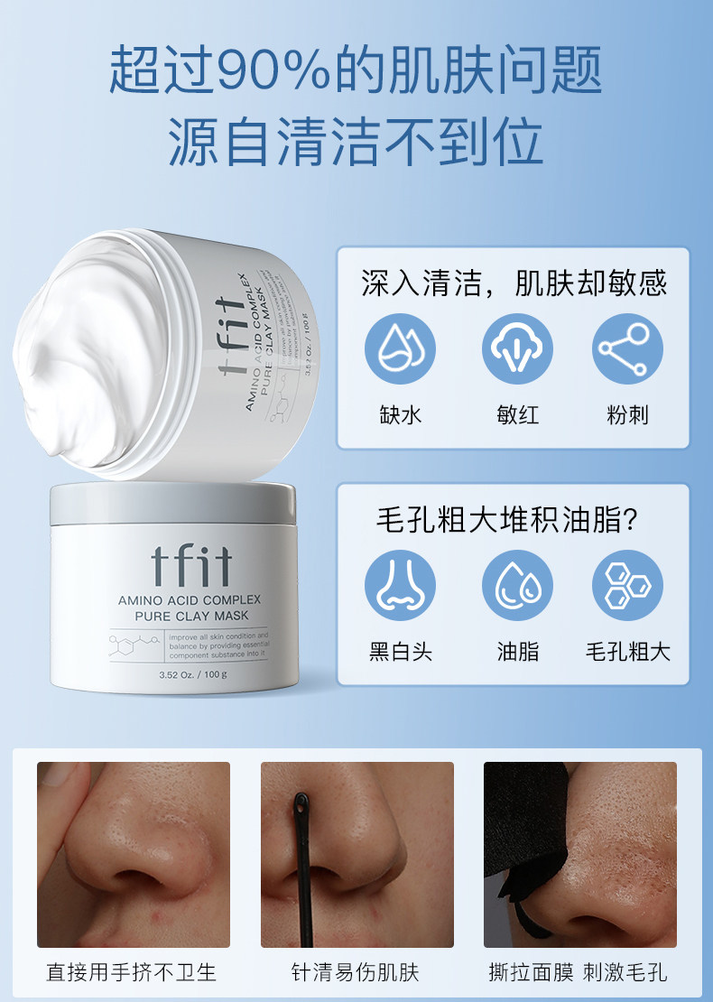 TFIT清洁泥膜面膜 睡眠面膜深层清洁毛孔油黑头粉刺闭口涂抹式