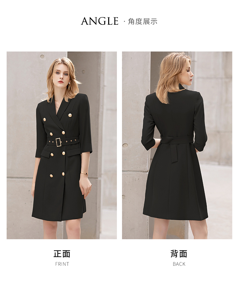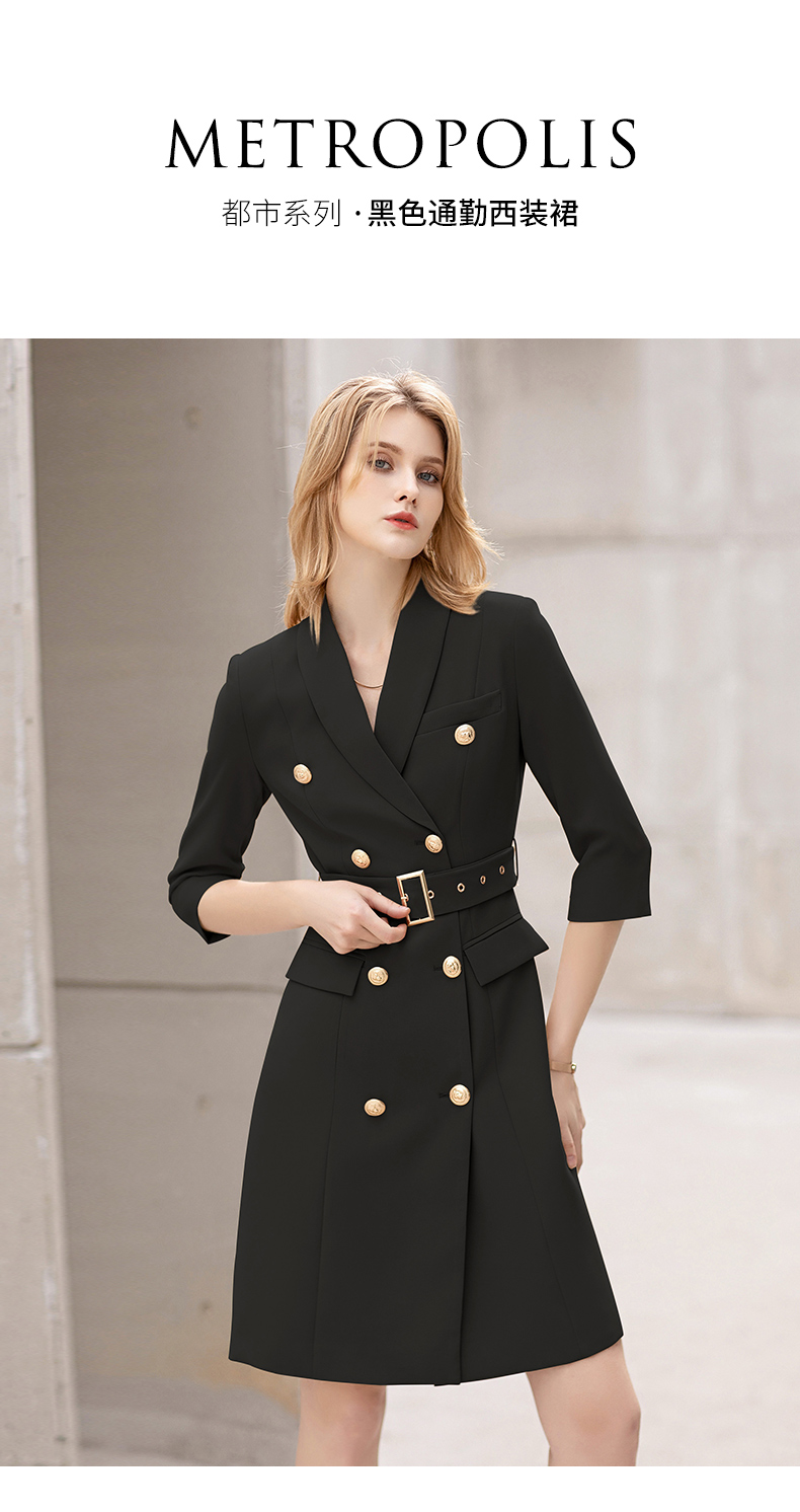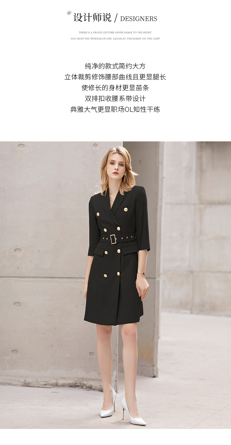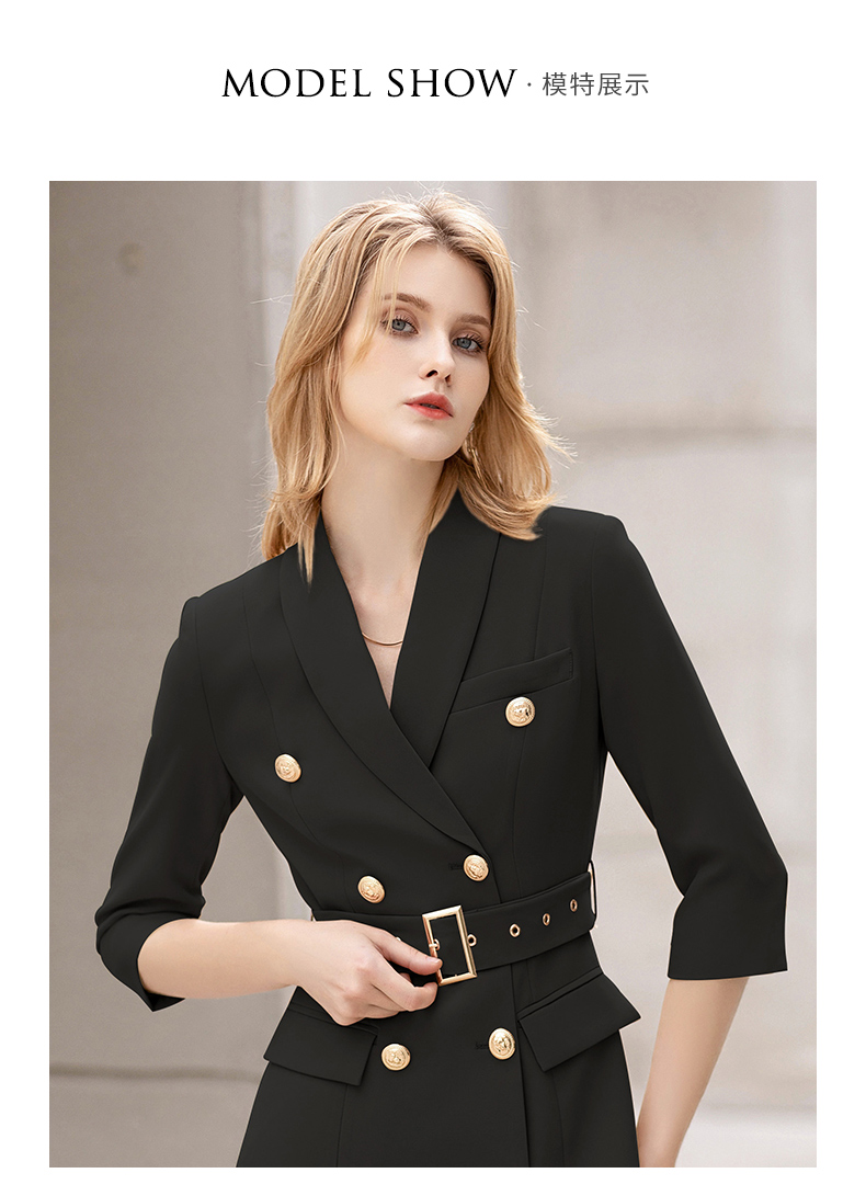 IWY/夏季薄款七分袖西装连衣裙气质显瘦售楼部工装女商务绑带职业套裙