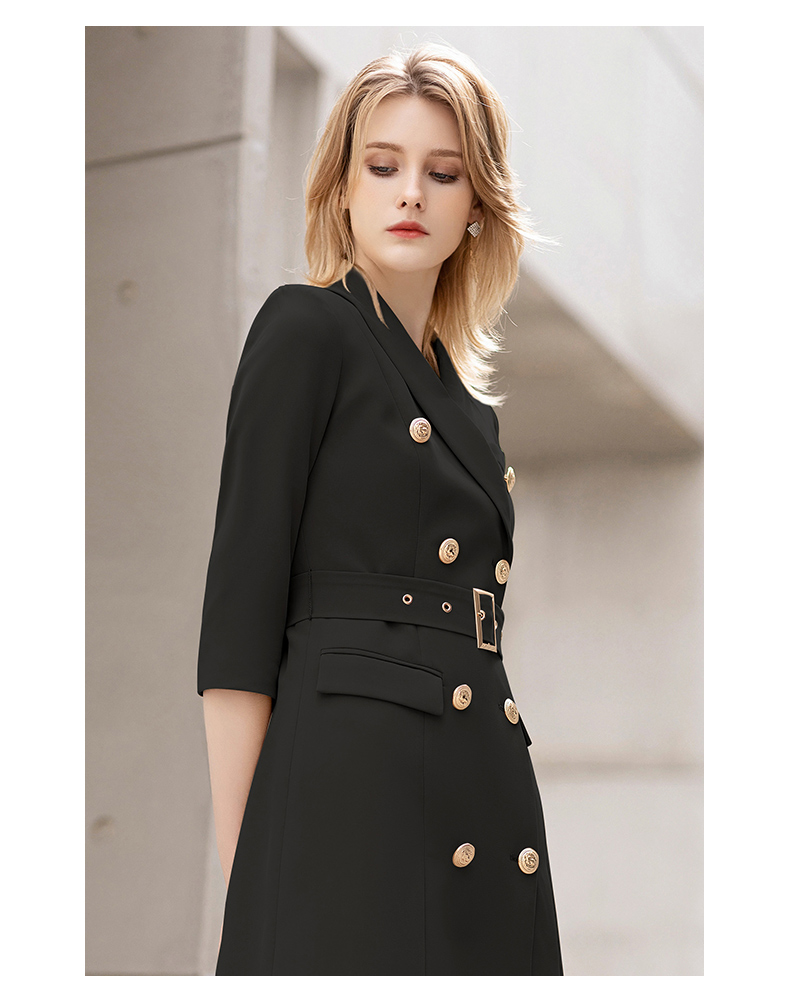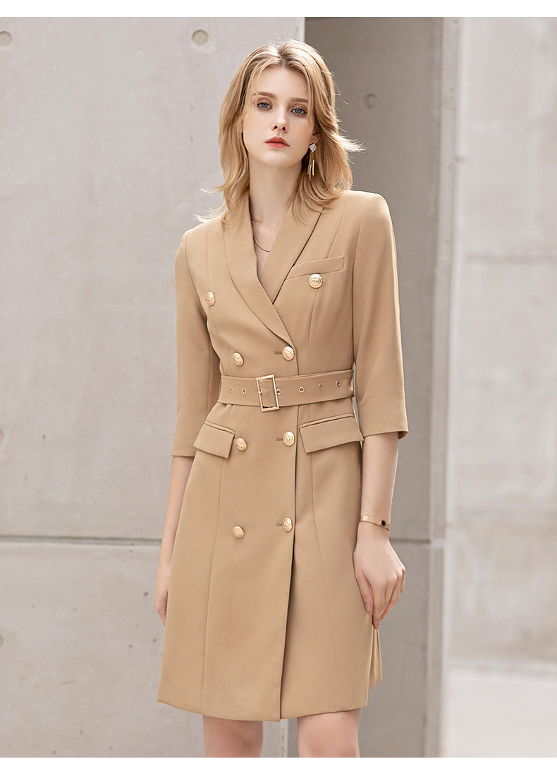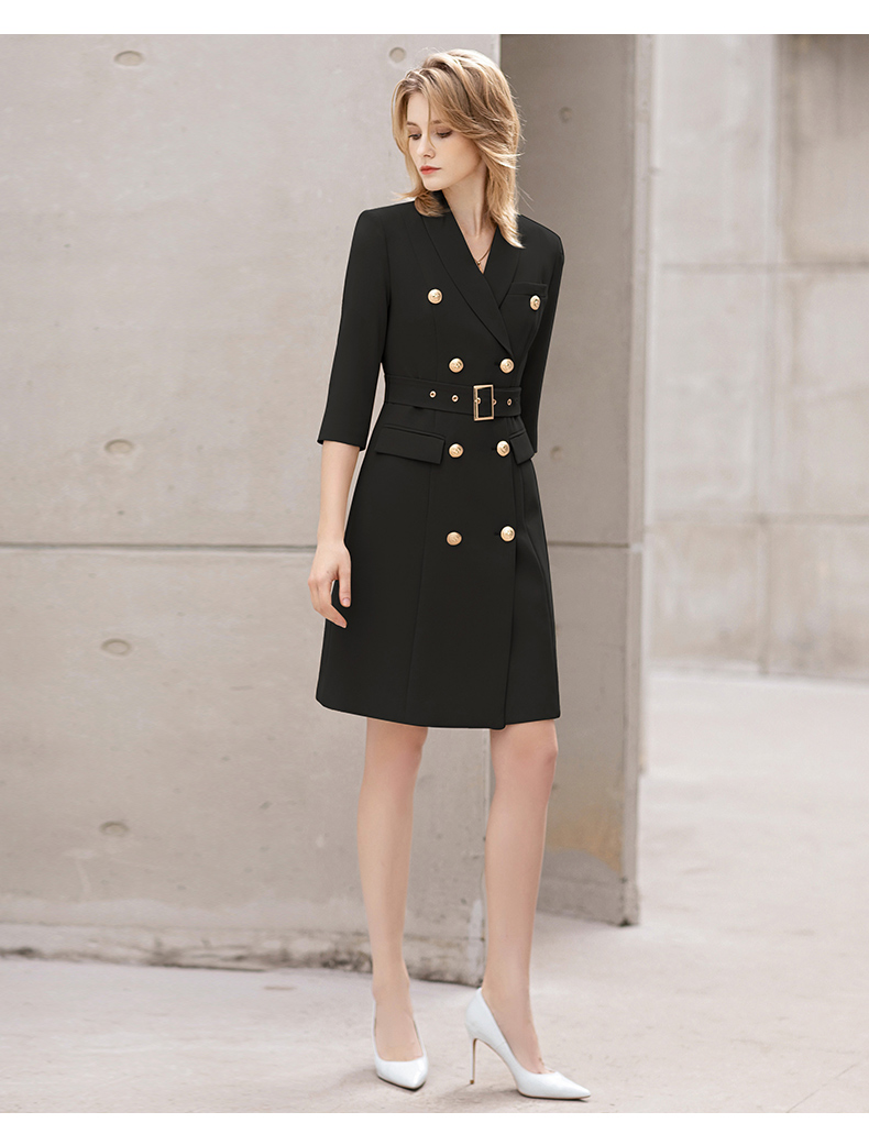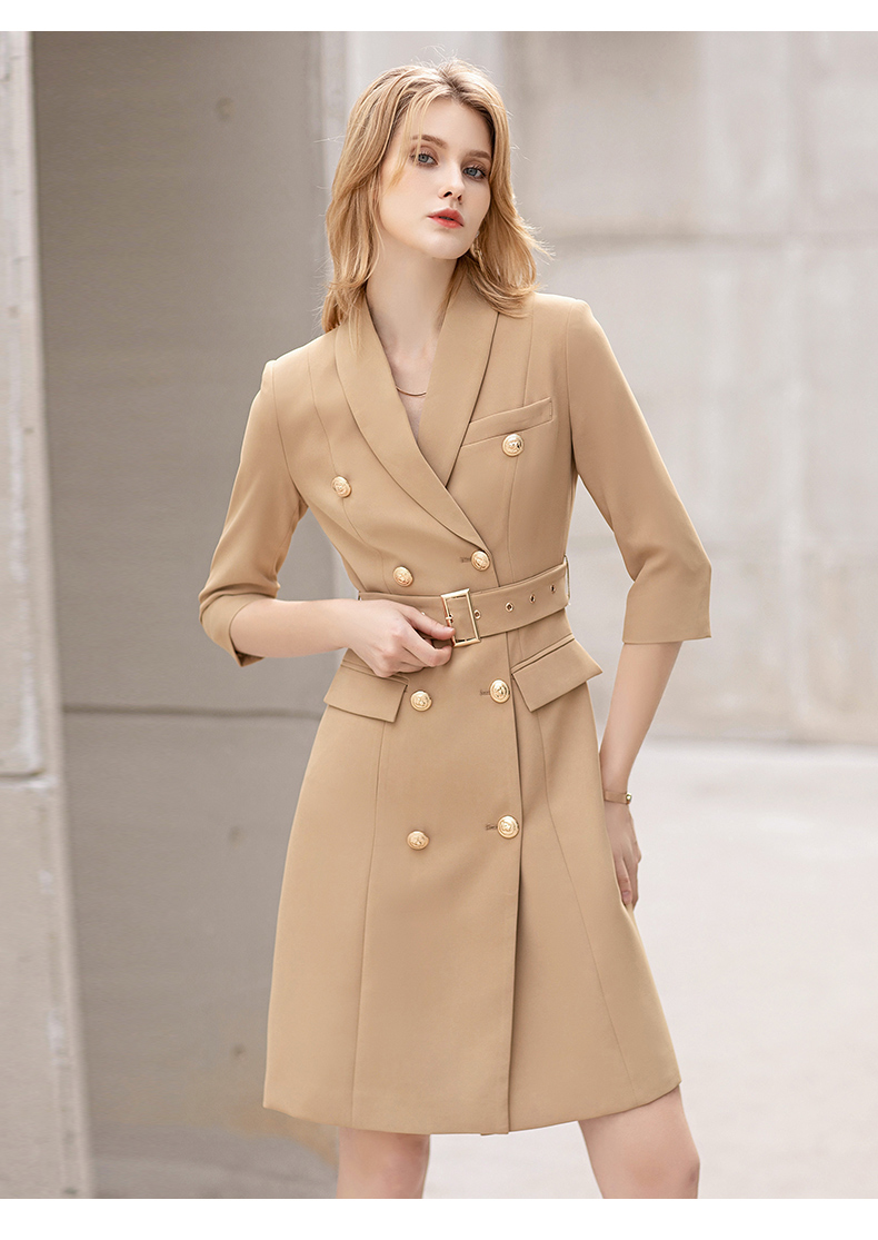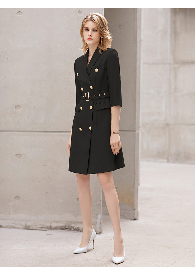 IWY/夏季薄款七分袖西装连衣裙气质显瘦售楼部工装女商务绑带职业套裙