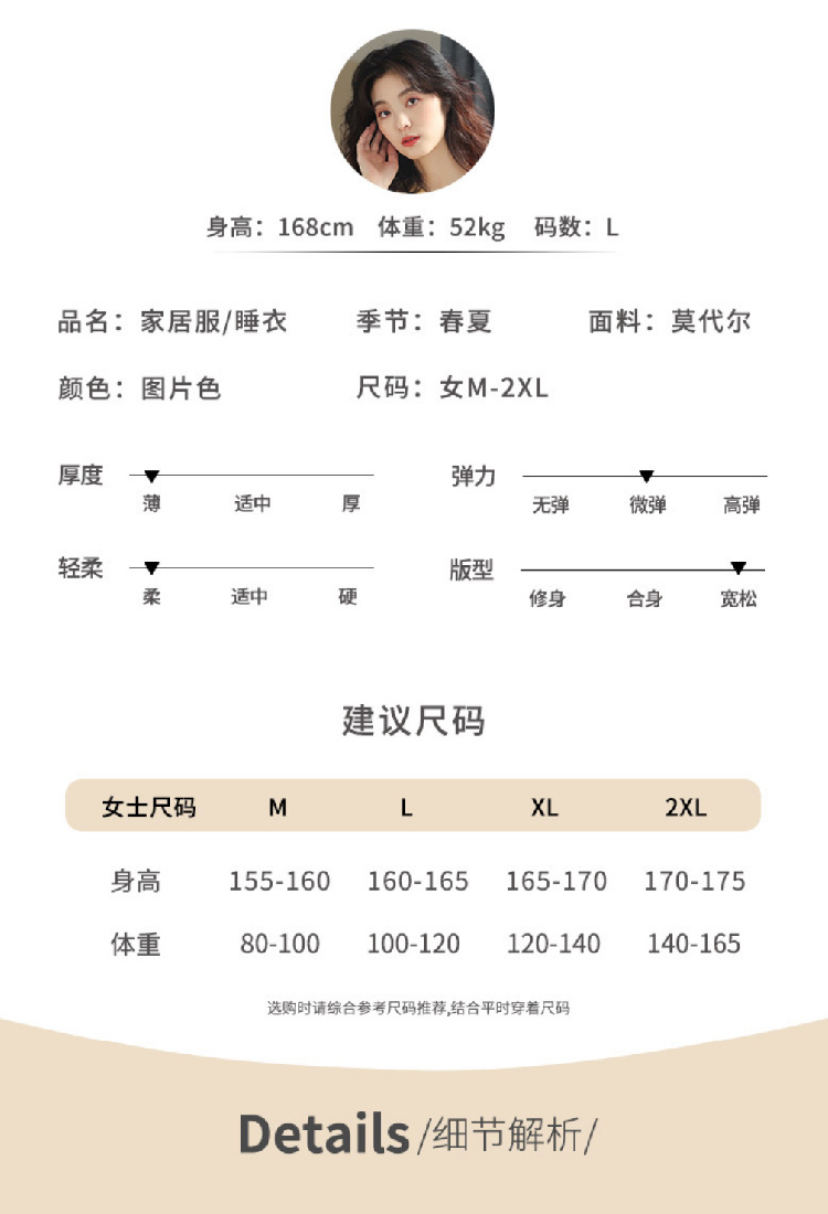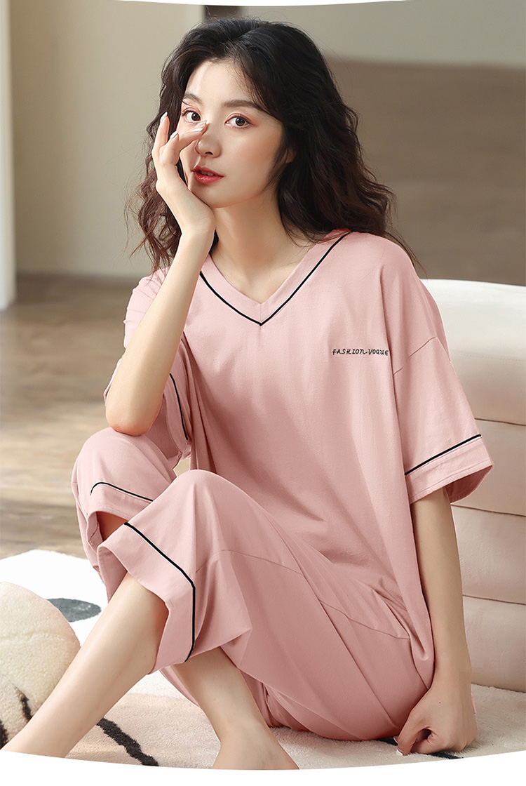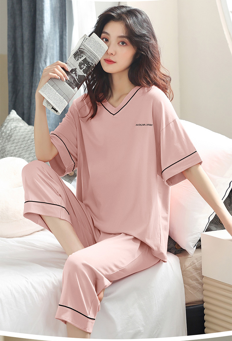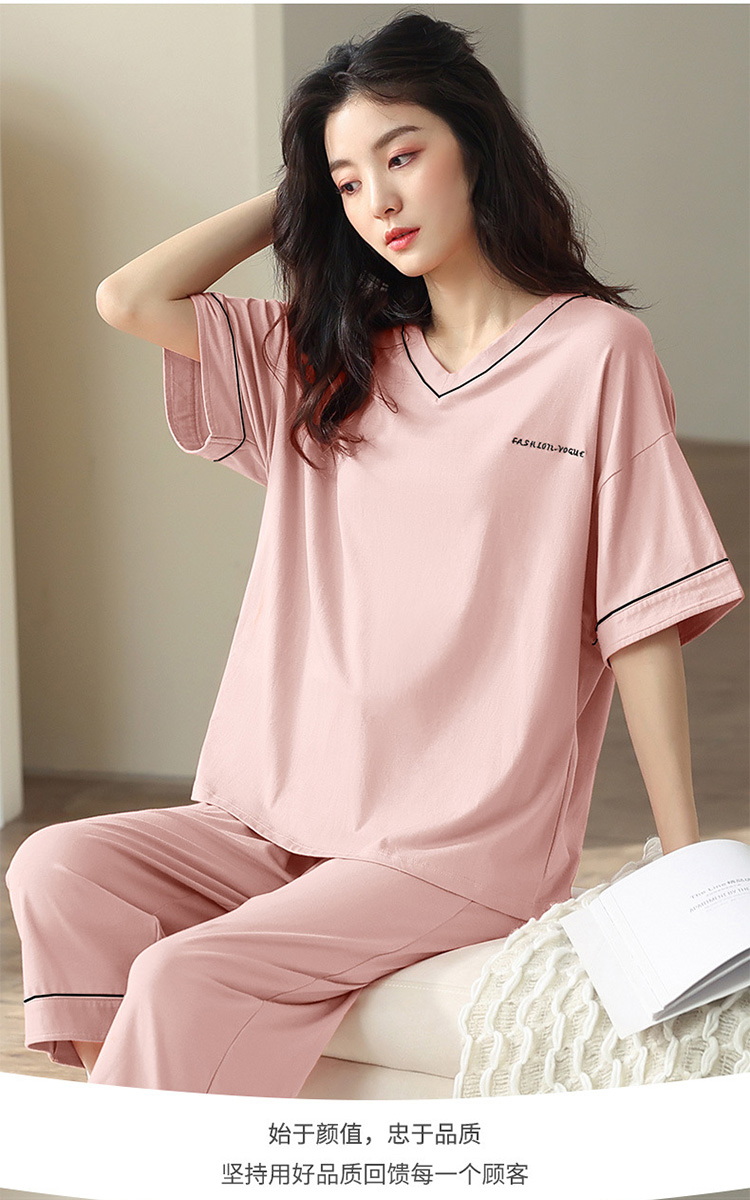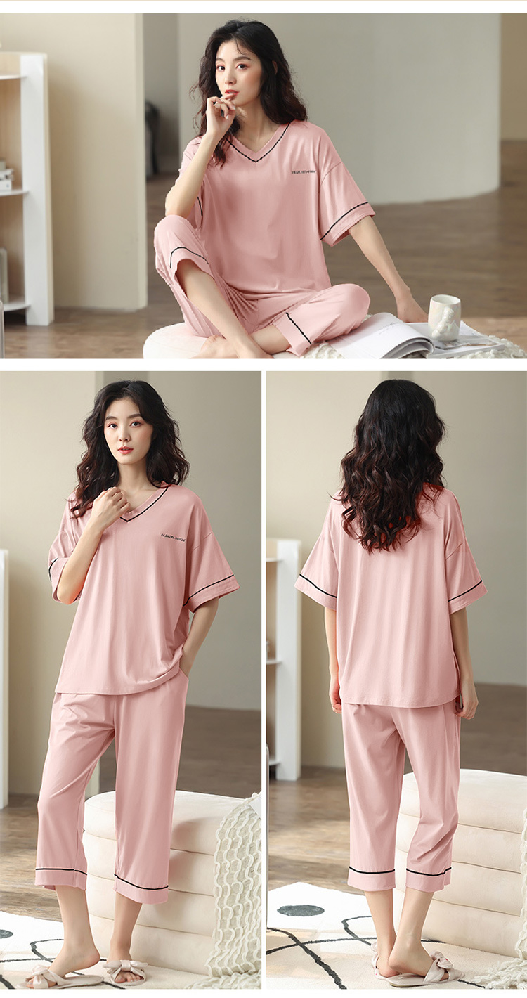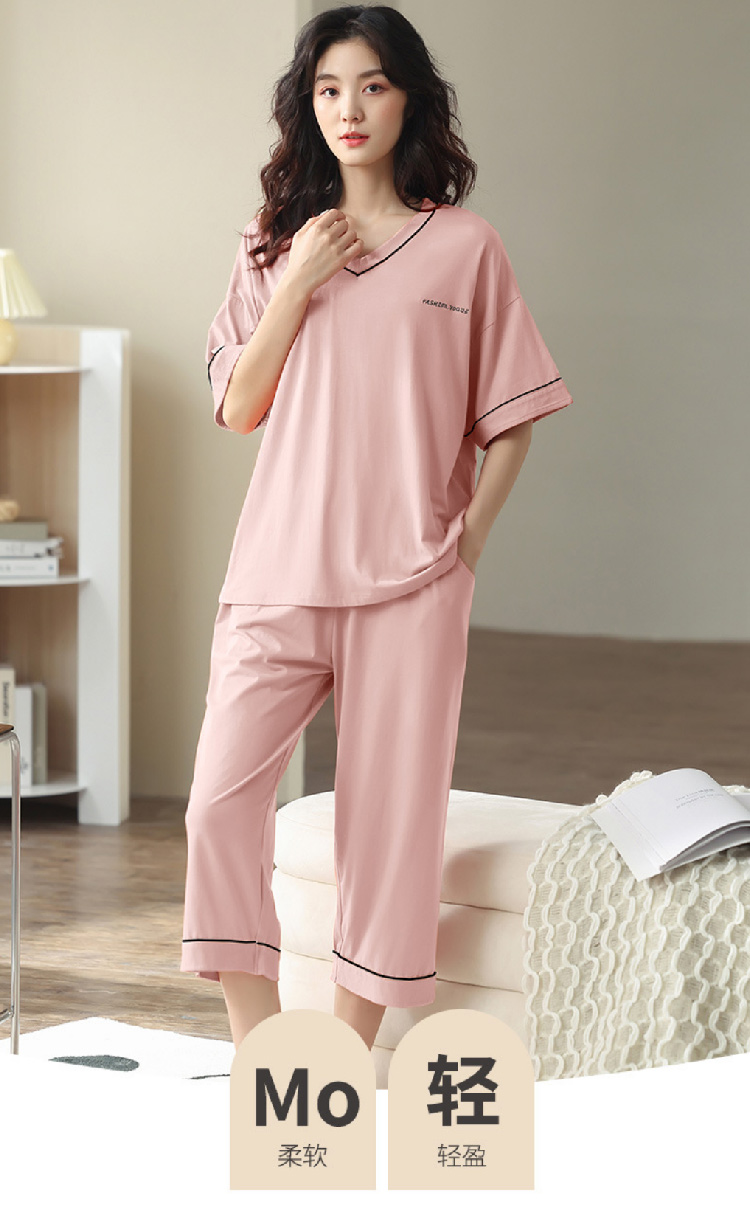 【莫代尔女士睡衣】夏季短袖柔软莫代尔睡衣女 休闲可外穿家居短袖长裤两件套