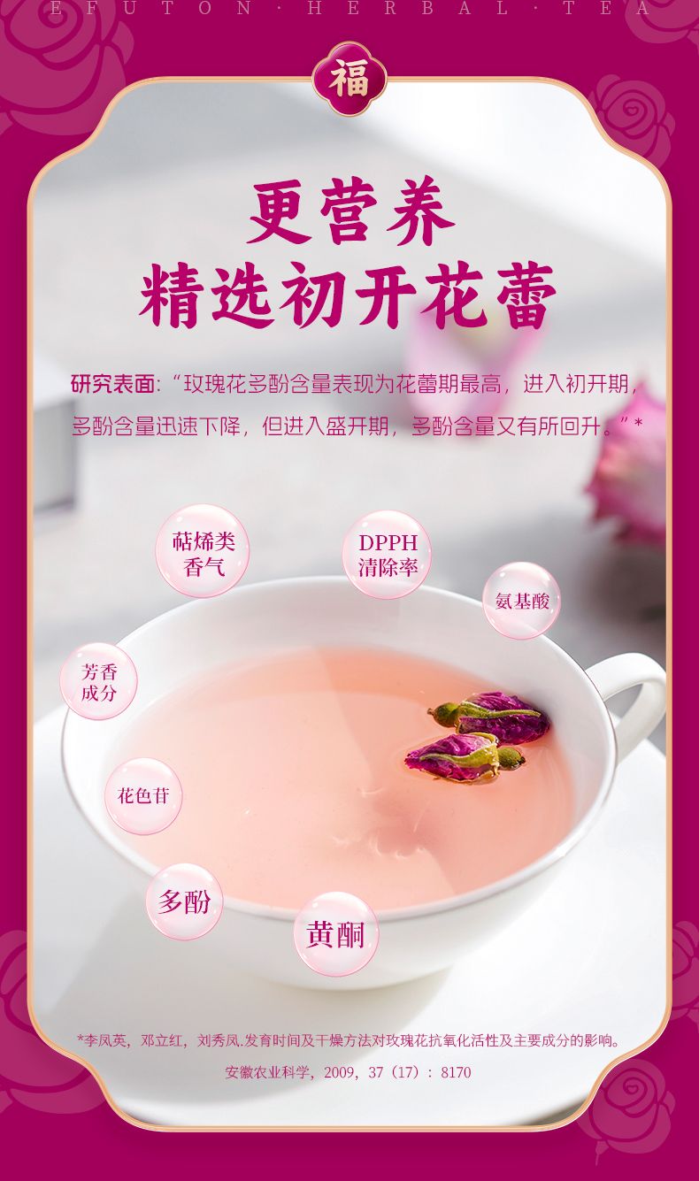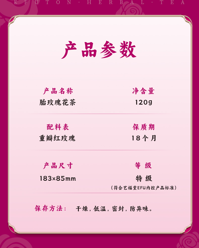 艺福堂花草茶 平阴原产胎玫瑰花茶120g 养生茶不熏硫搭菊花茶重瓣红玫瑰