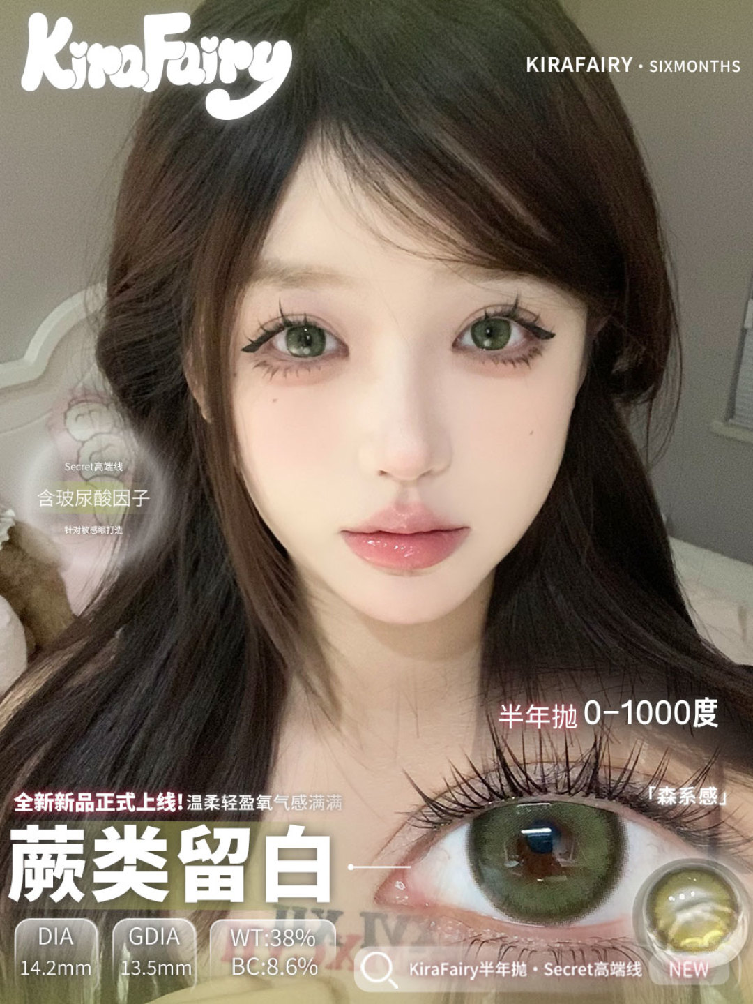 kira半年抛 蕨类留白 绿 14.2mm 含硅水凝胶