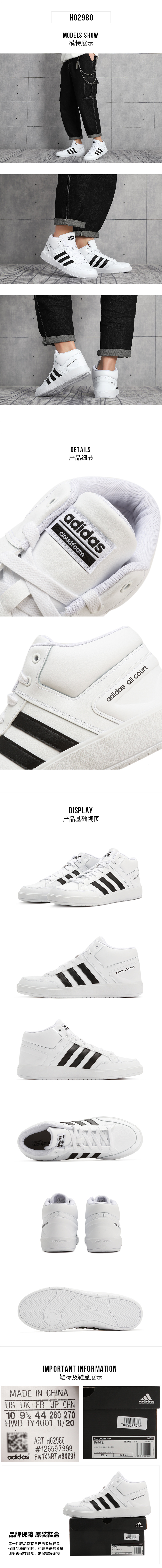 阿迪达斯(Adidas)男鞋高帮板鞋2022秋季运动鞋neo休闲鞋网球鞋 H02980