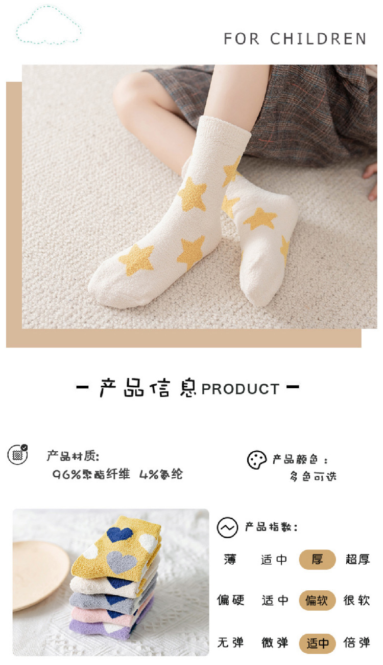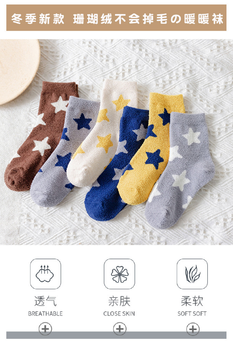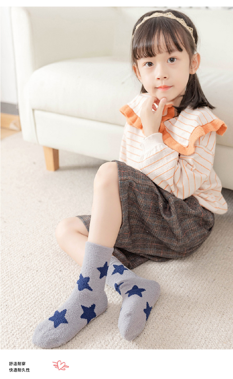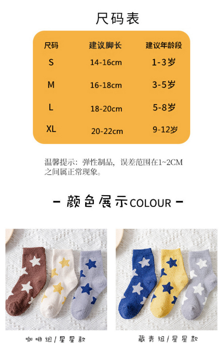 【儿童珊瑚绒袜3双装】秋冬新款可爱儿童袜子 加厚宝宝毛巾袜星星男女童中筒袜