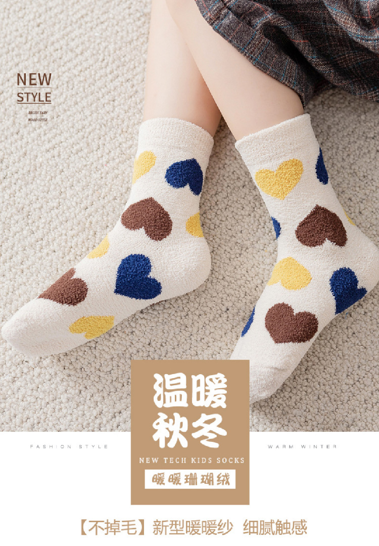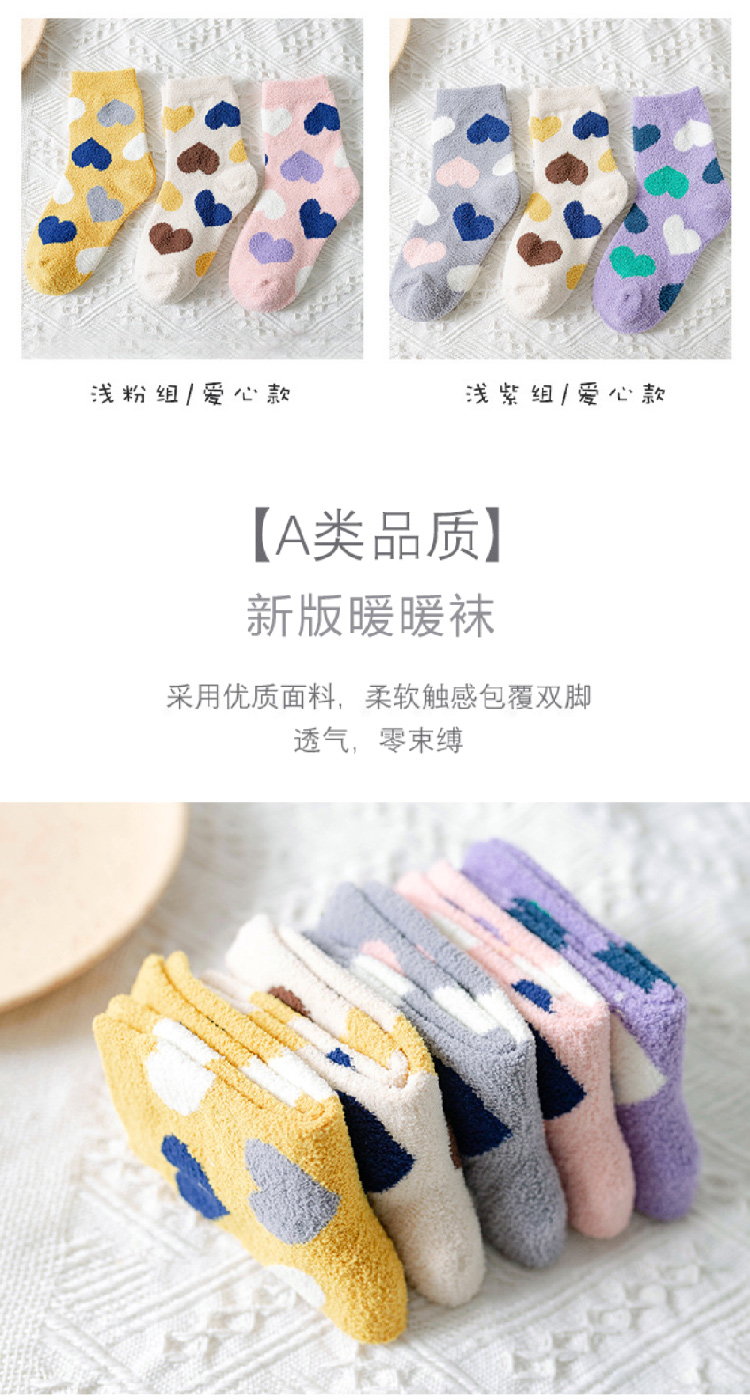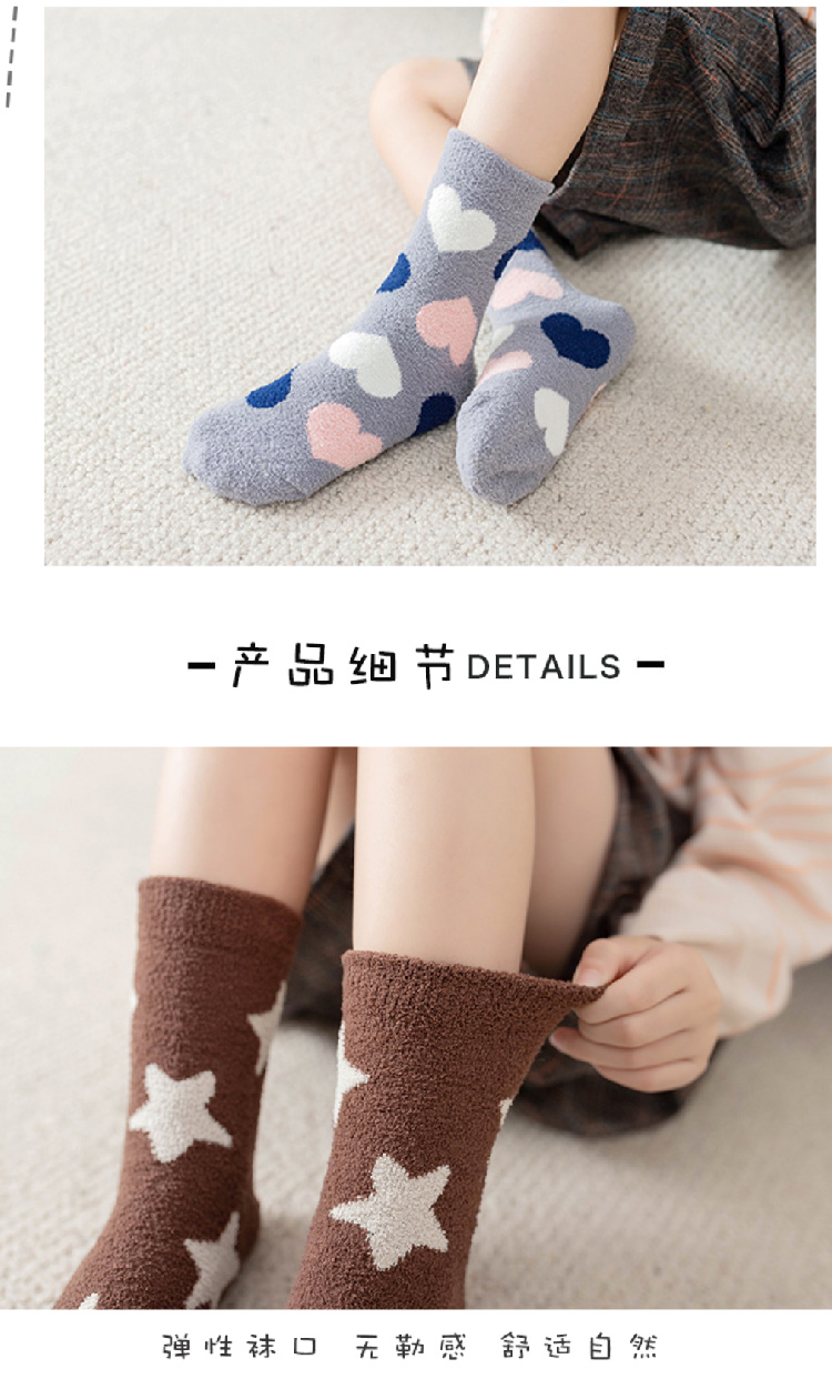 【儿童珊瑚绒袜3双装】秋冬新款可爱儿童袜子 加厚宝宝毛巾袜星星男女童中筒袜