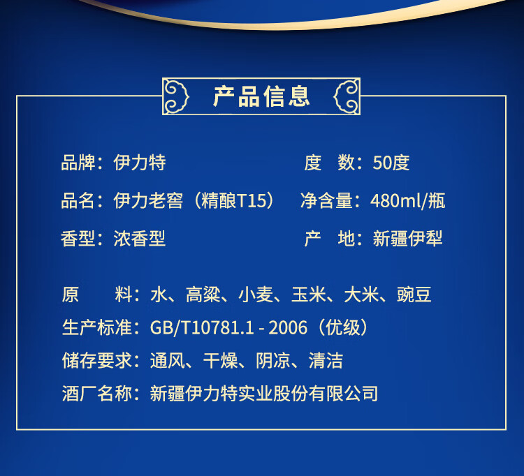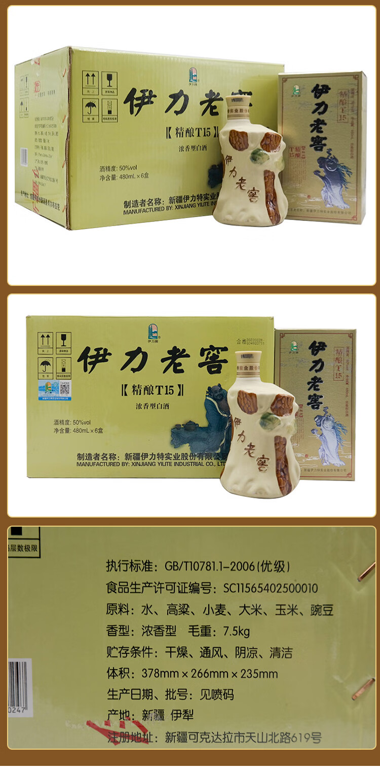 【整箱】伊力老窖 精酿T15(老树根)浓香型白酒 480ml 50度
