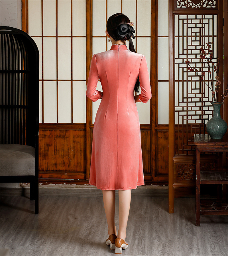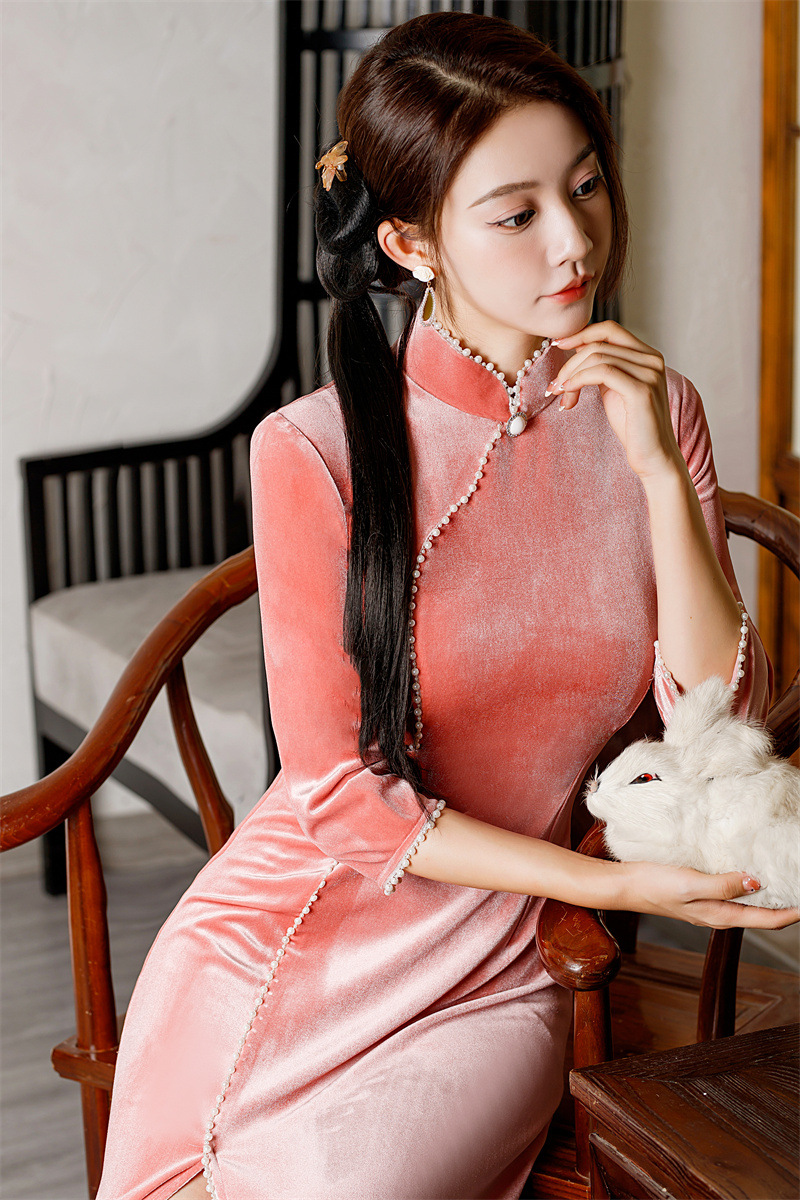 曼丽绒长款温婉少女,毛茸茸日常文艺风气质旗袍MLS-6821
