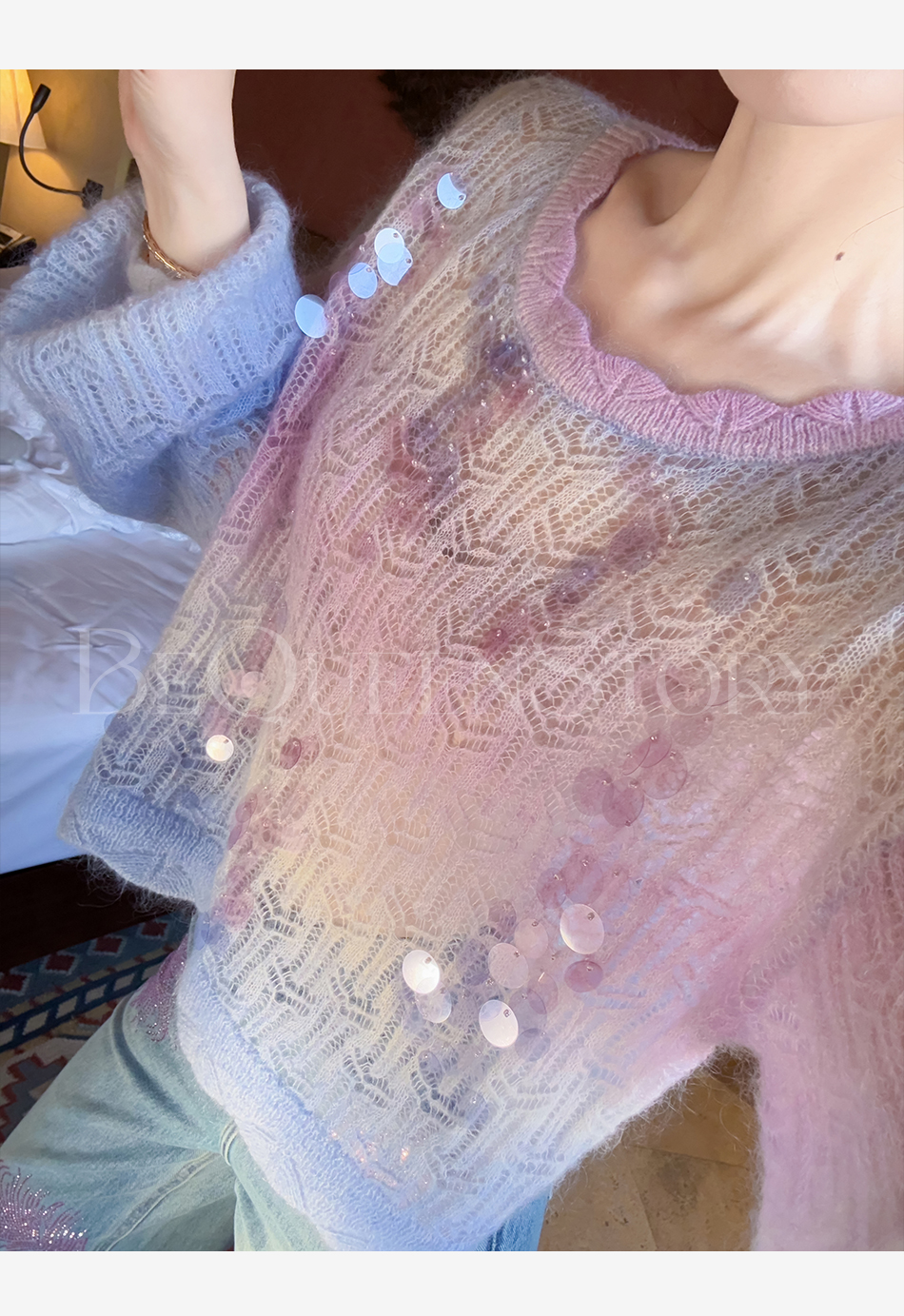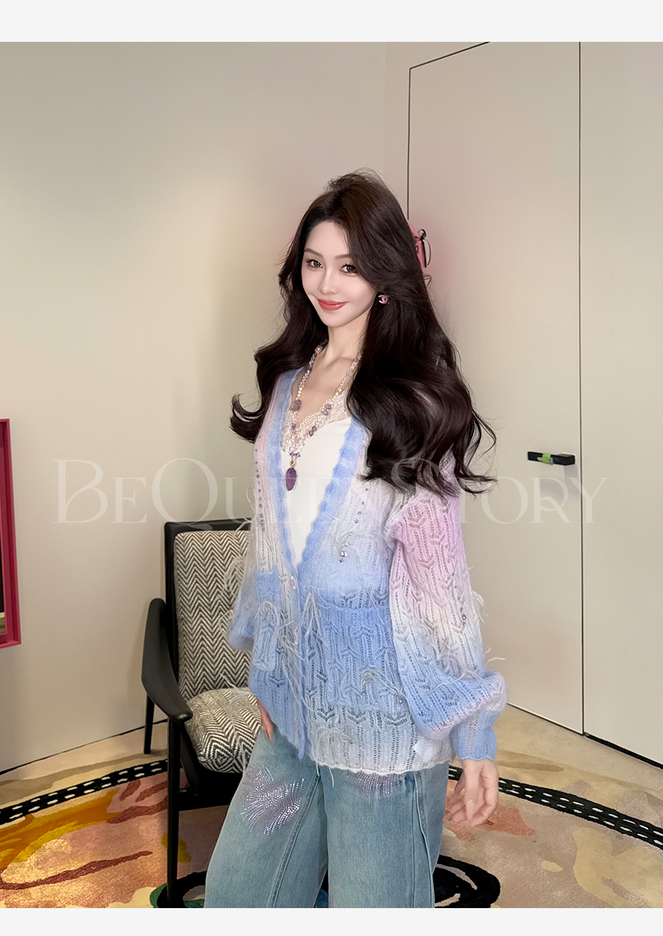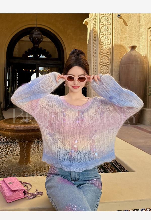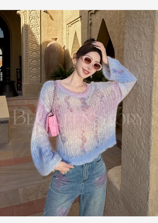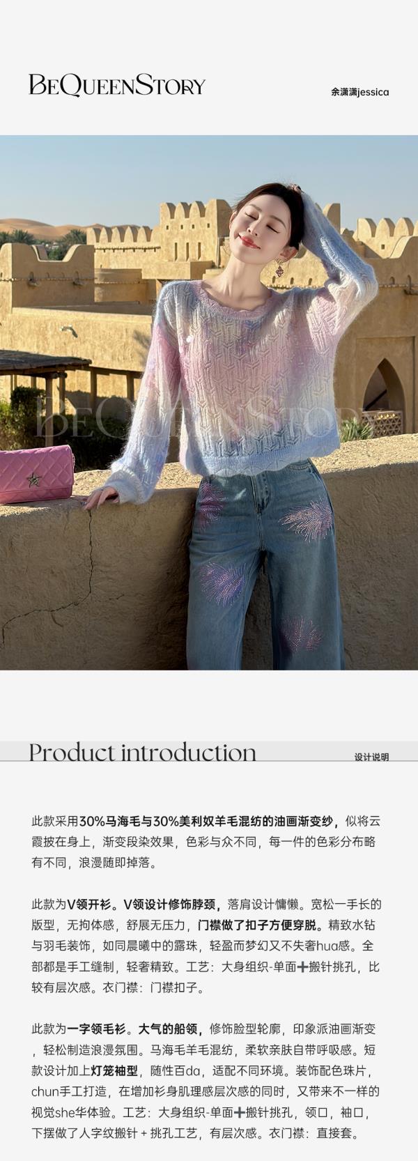 余潇潇【幻海仙踪】2025春装新款马海毛羊毛混纺渐变段染毛衣&开衫