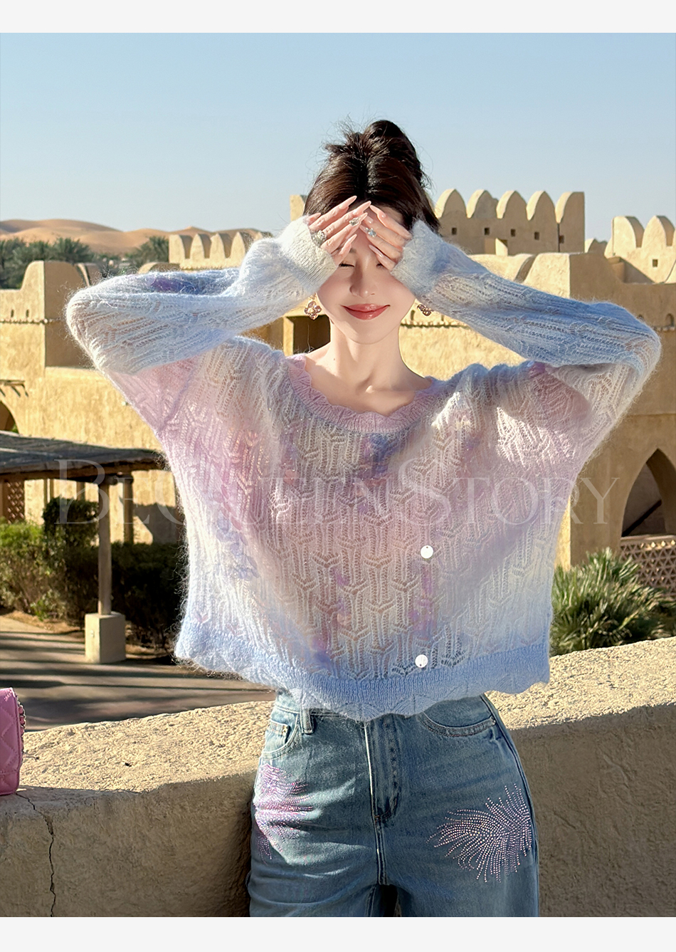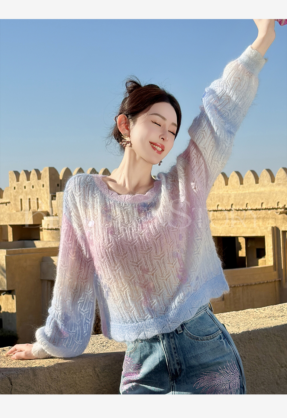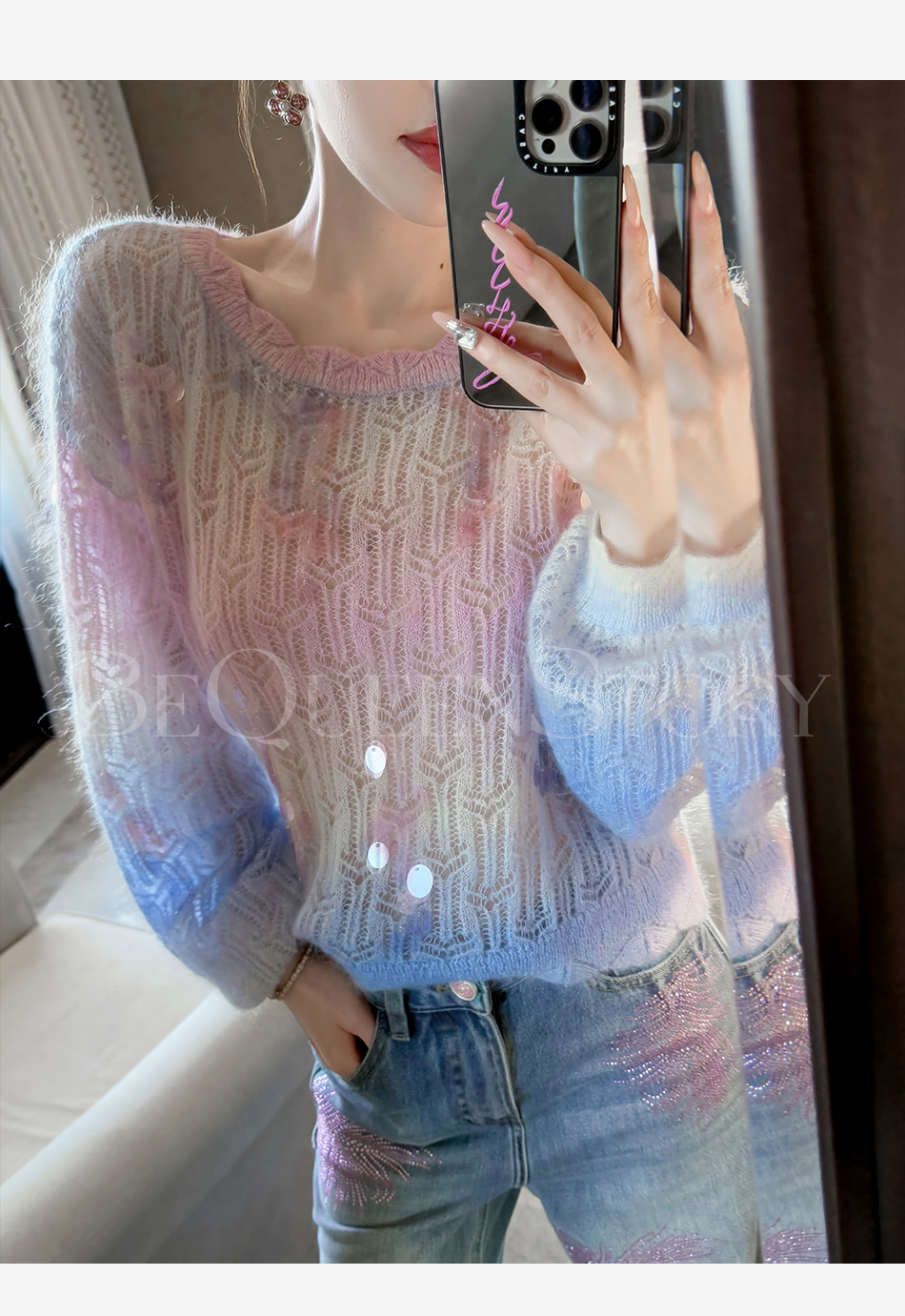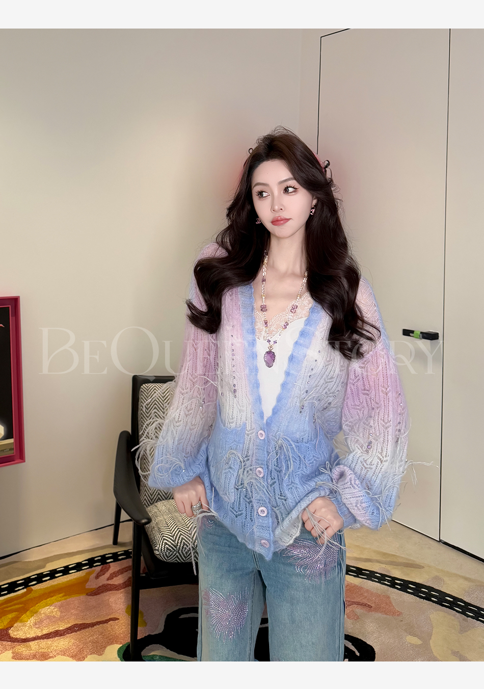 余潇潇【幻海仙踪】2025春装新款马海毛羊毛混纺渐变段染毛衣&开衫