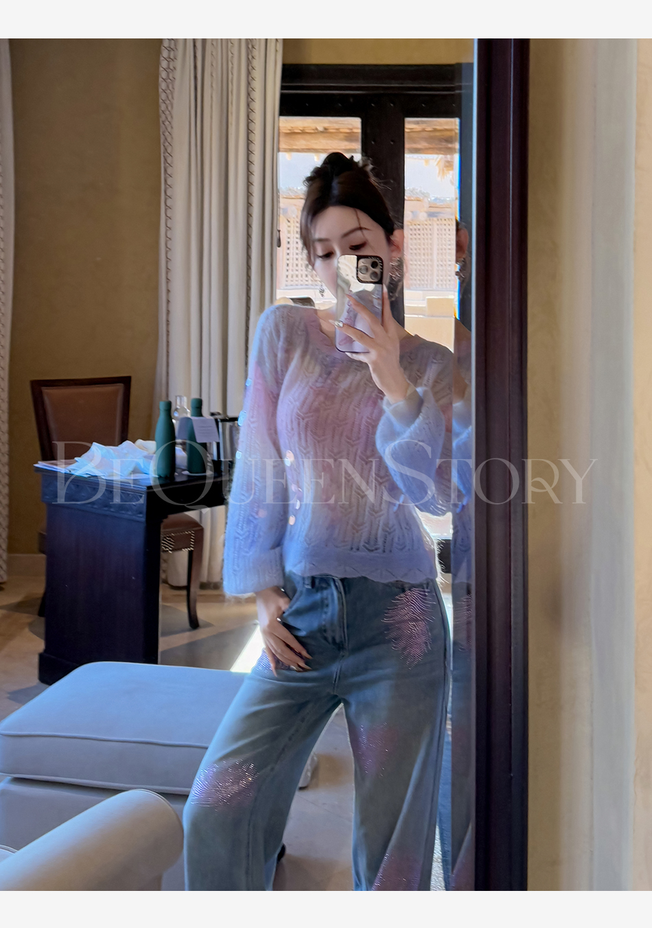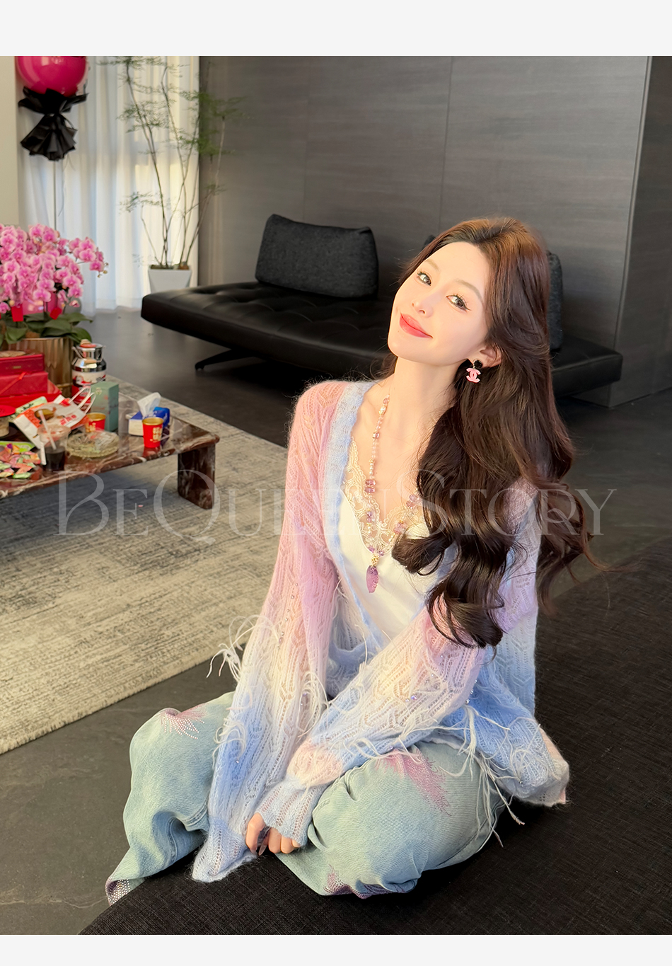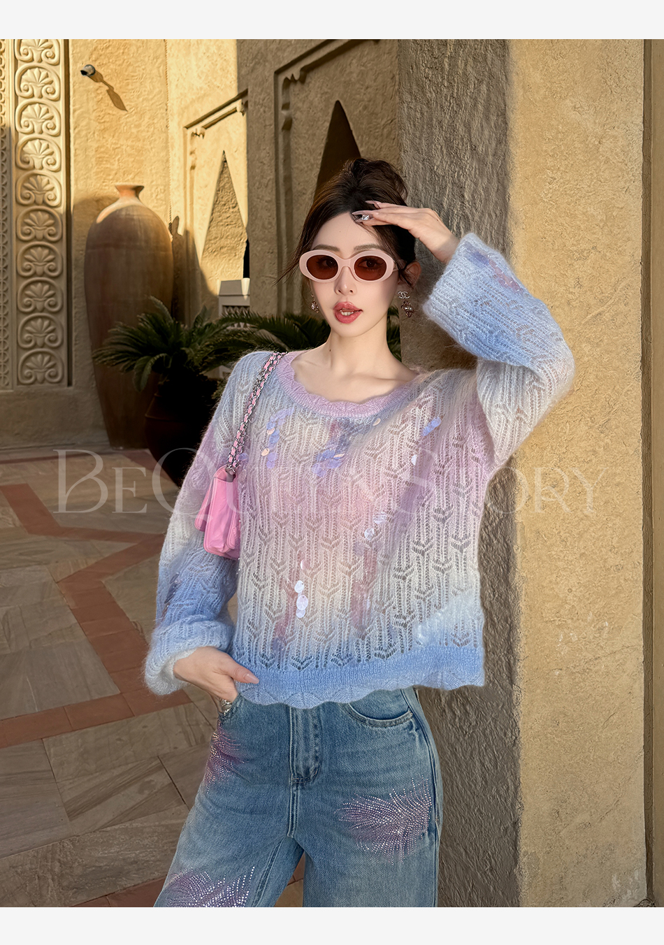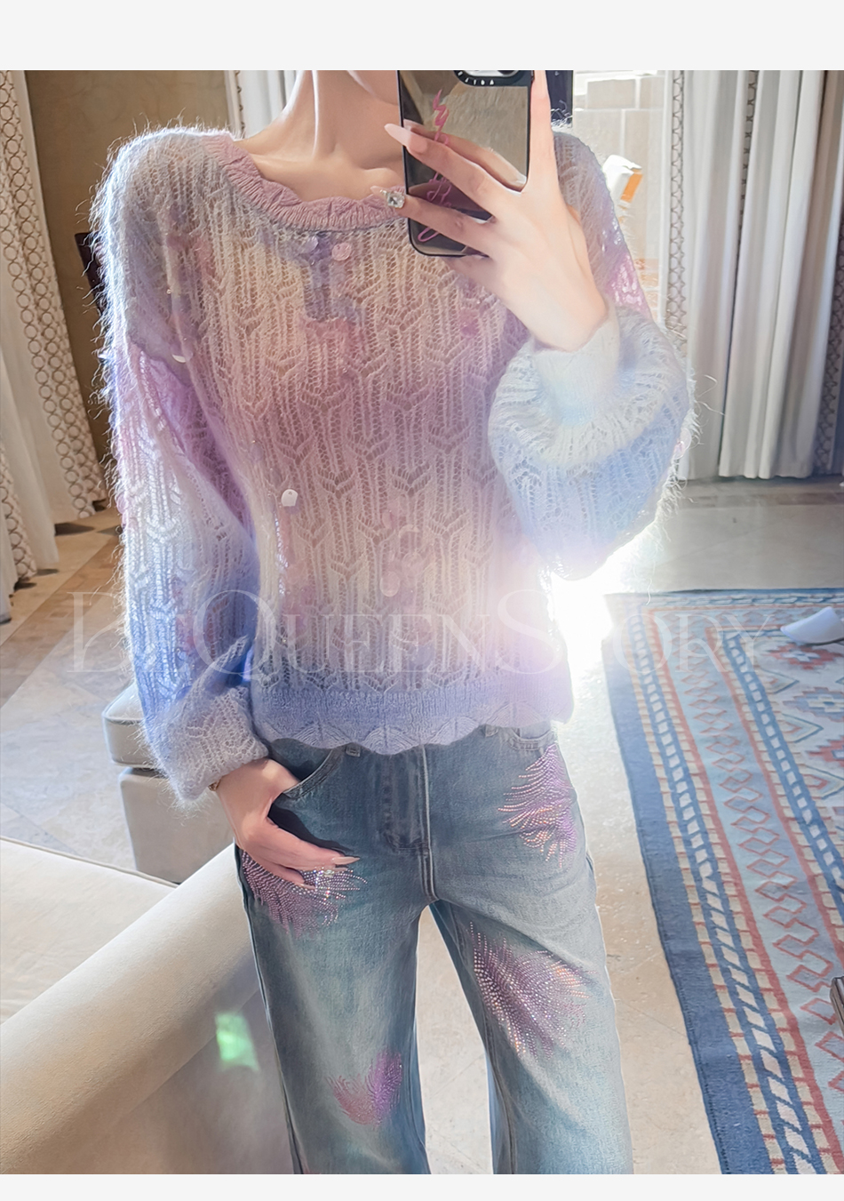 余潇潇【幻海仙踪】2025春装新款马海毛羊毛混纺渐变段染毛衣&开衫