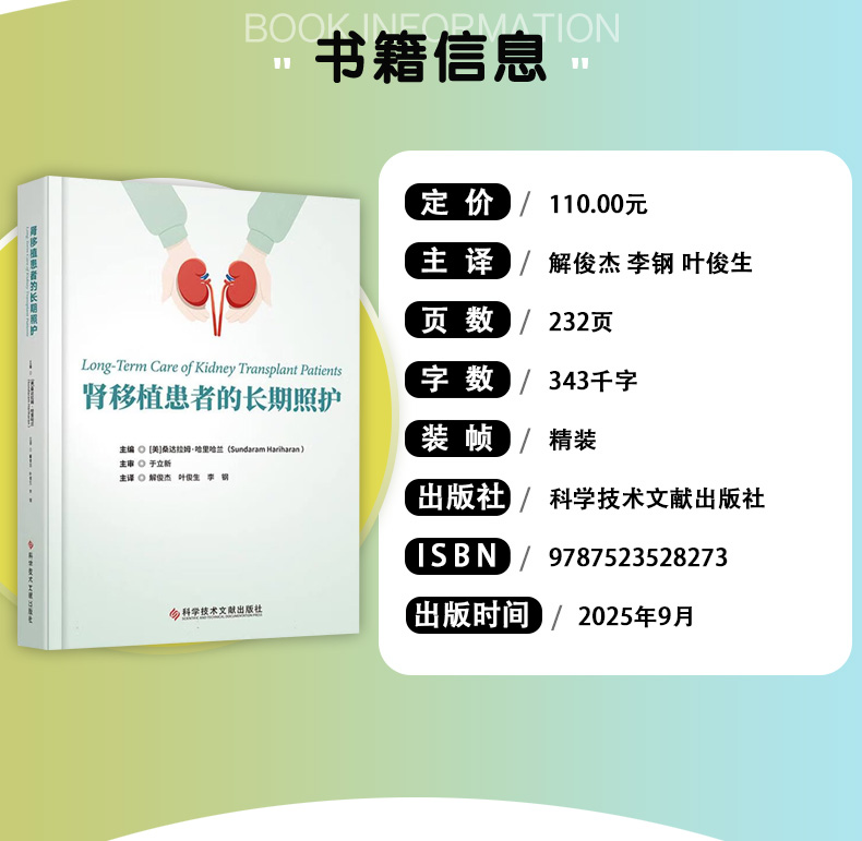 肾移植患者的长期照护 解俊杰 叶俊生 李钢 主译 影响肾移植预后的免疫和非免疫因素 等 9787523528273 科学技术文献出版社