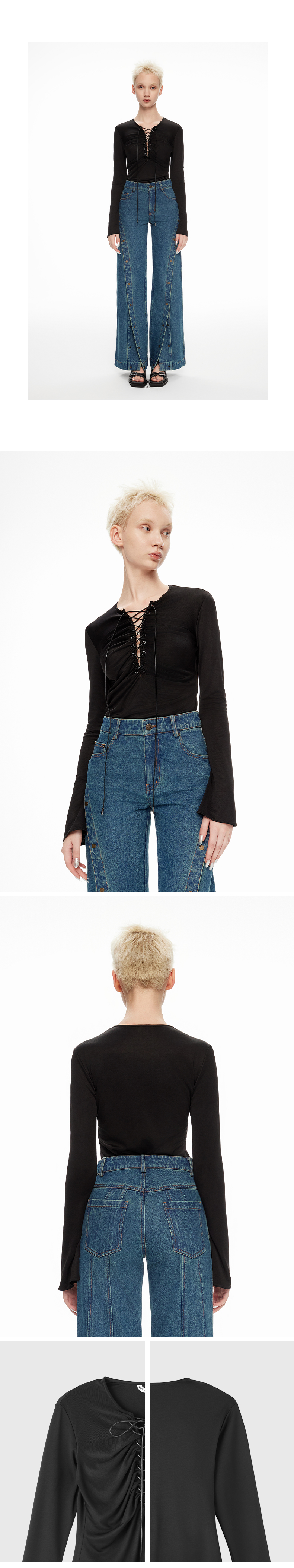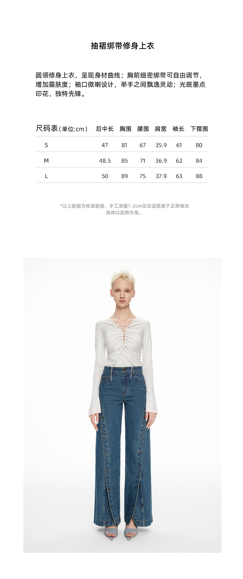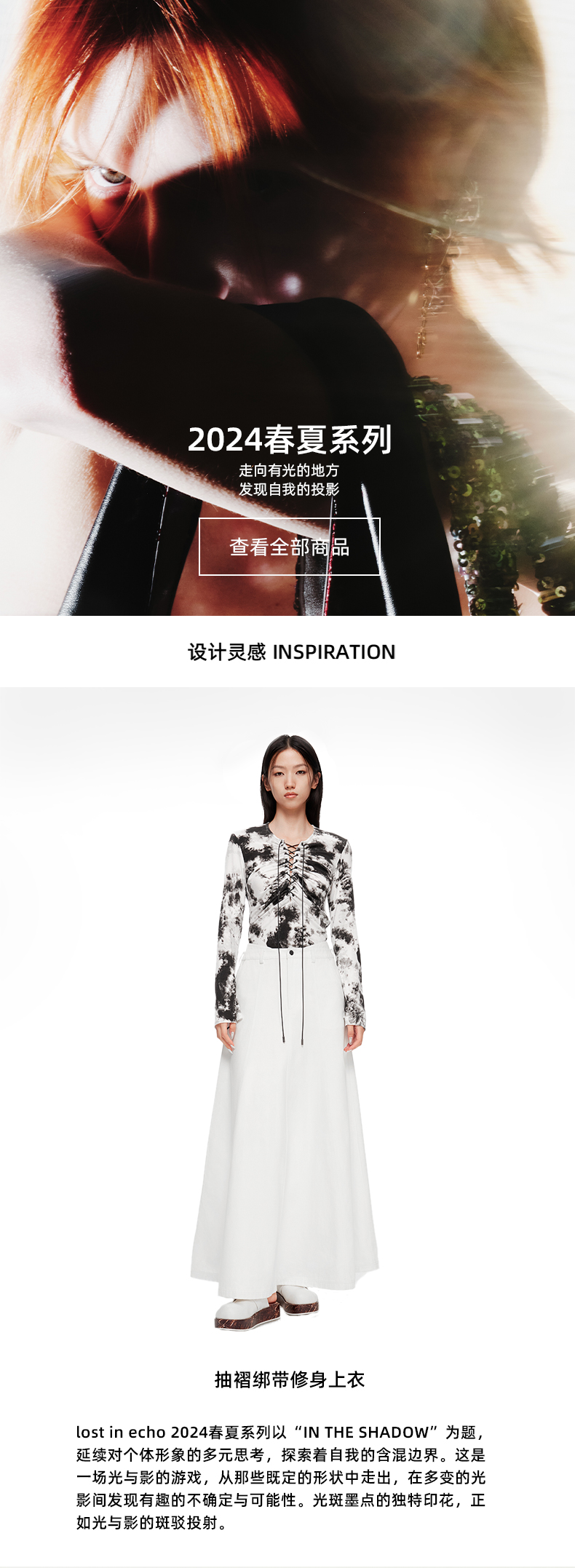 lost in echo2024春季新品设计师品牌抽褶绑带修身微喇长袖上衣女