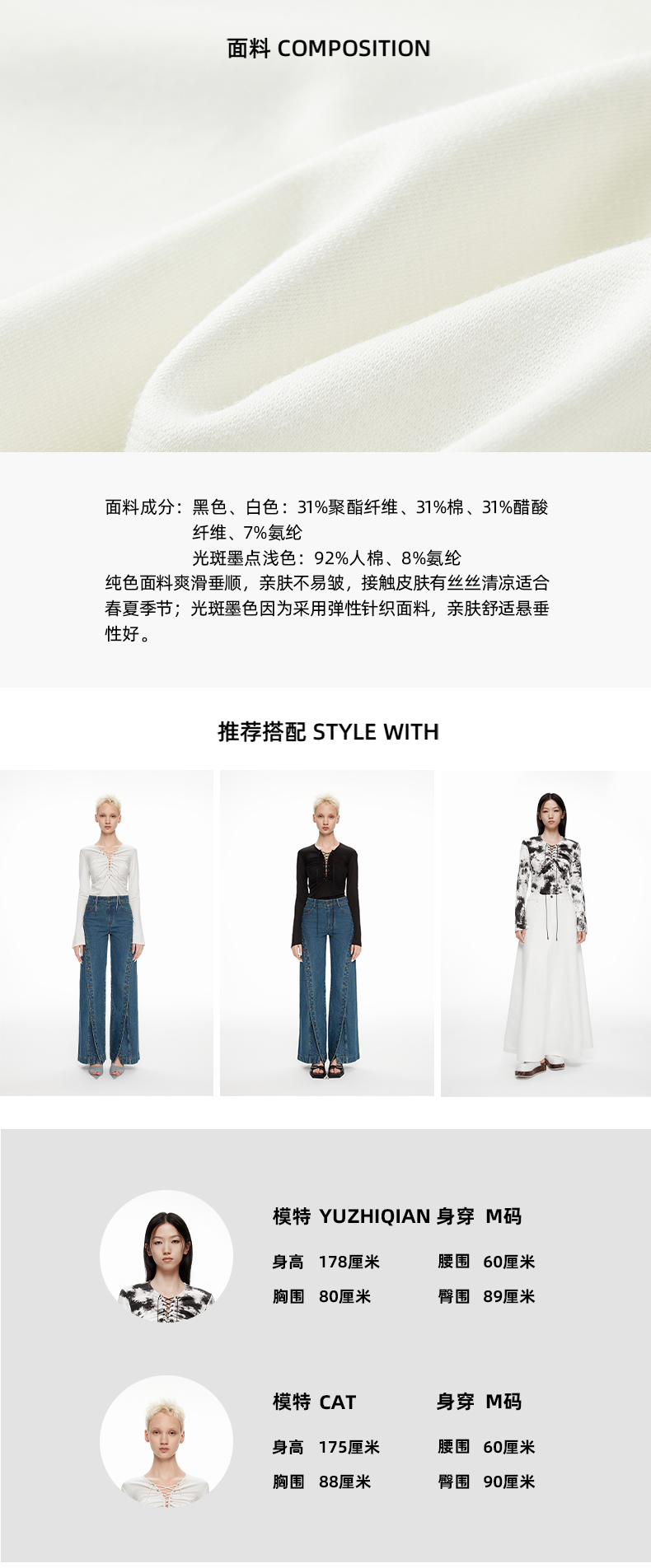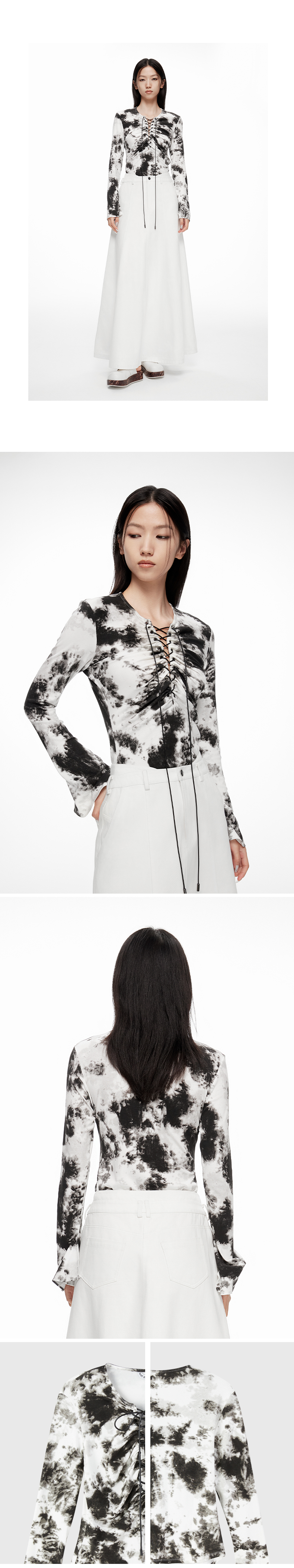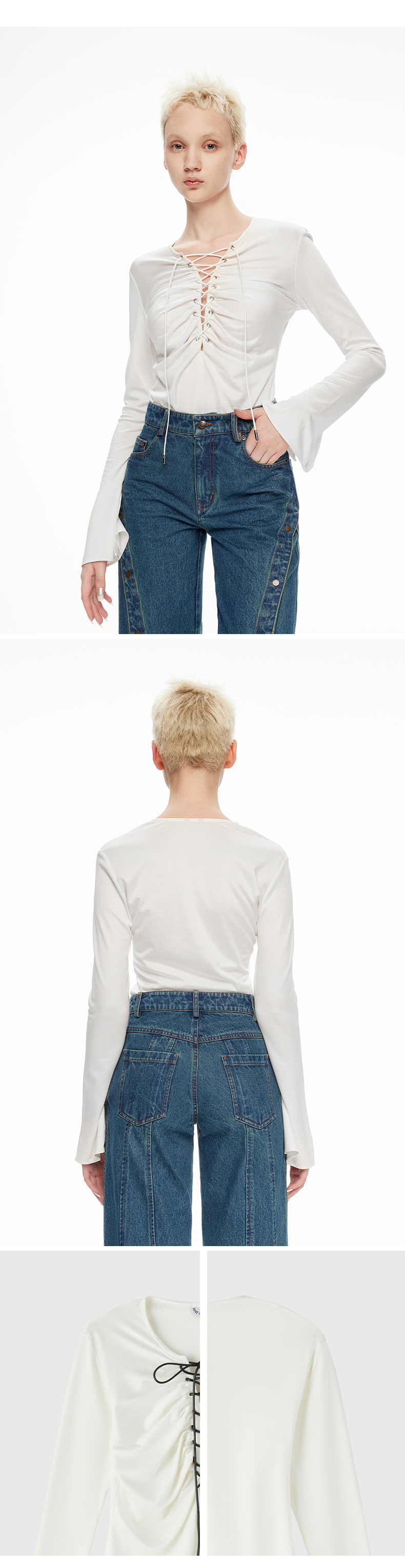 lost in echo2024春季新品设计师品牌抽褶绑带修身微喇长袖上衣女