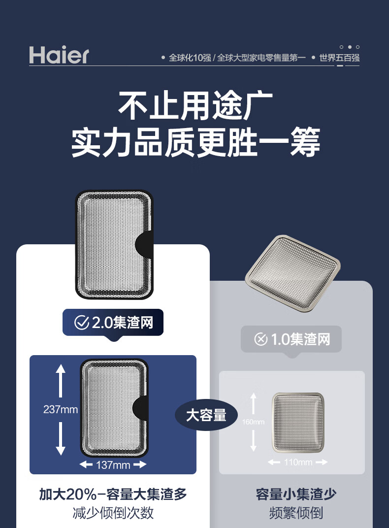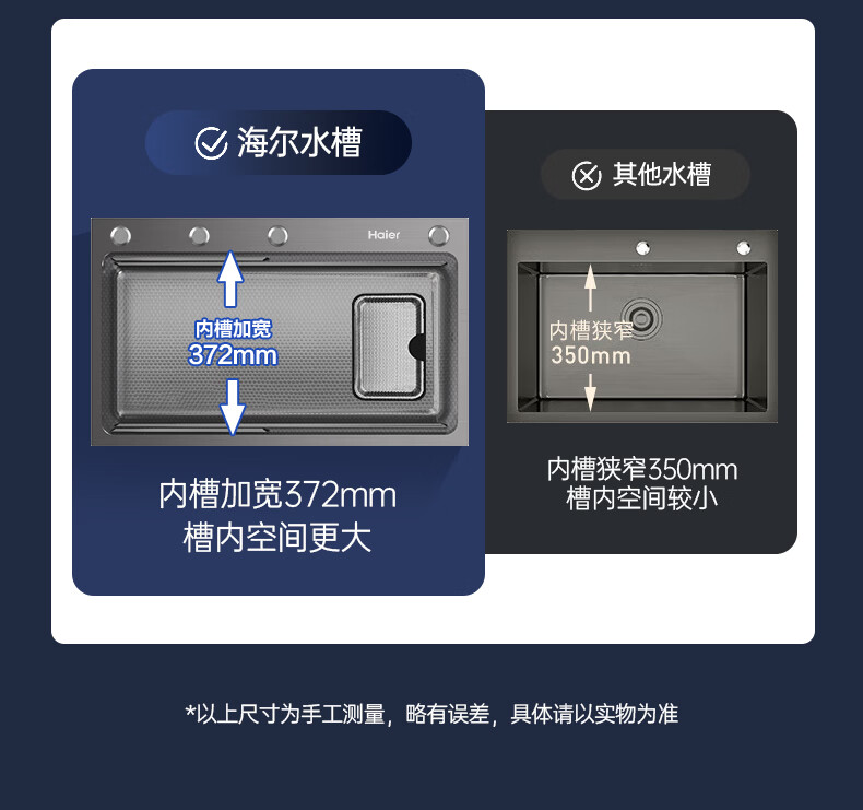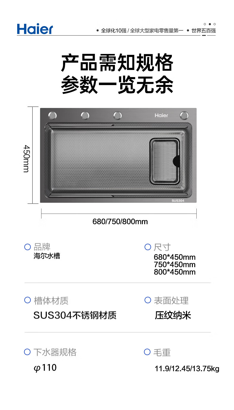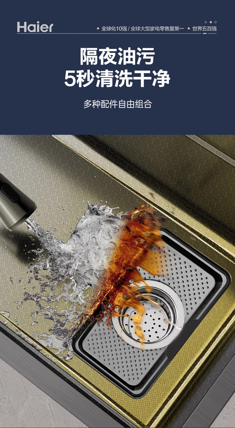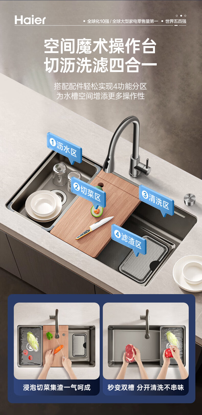 海尔水槽大单槽洗菜盆一体盆单槽厨房304不锈钢水槽双重滤渣洗碗槽