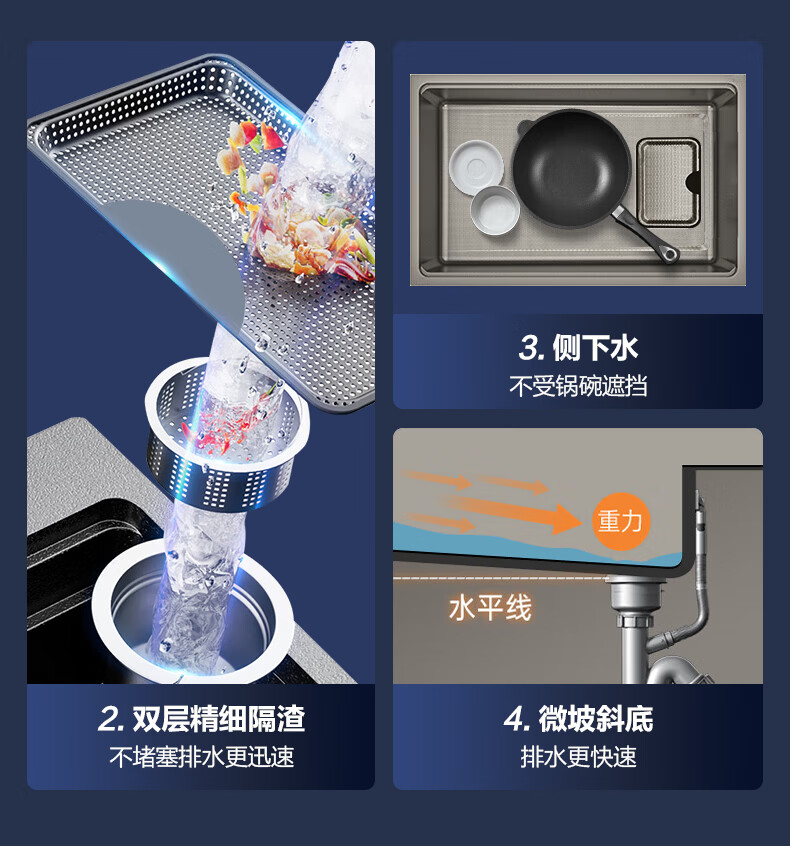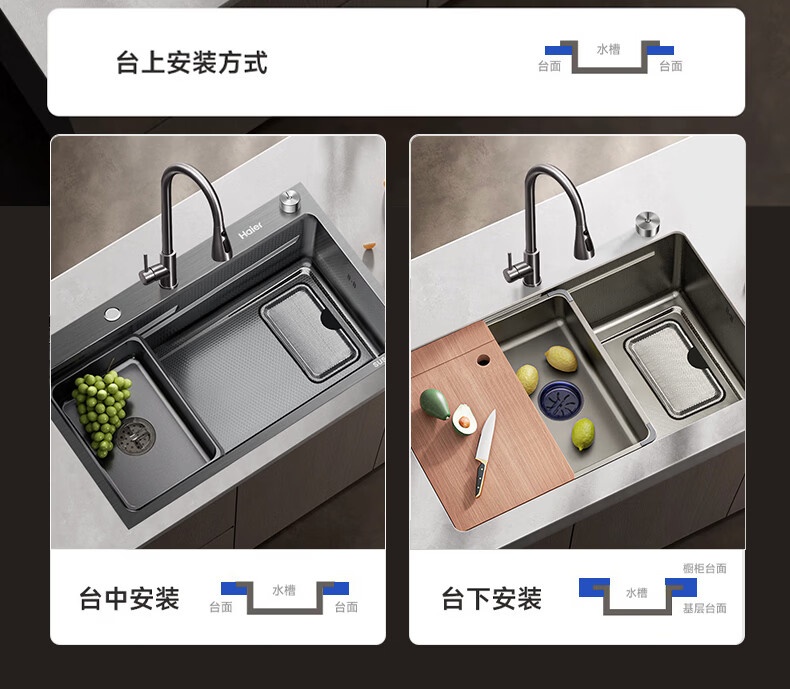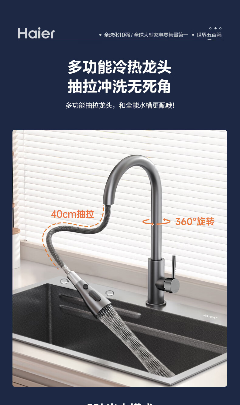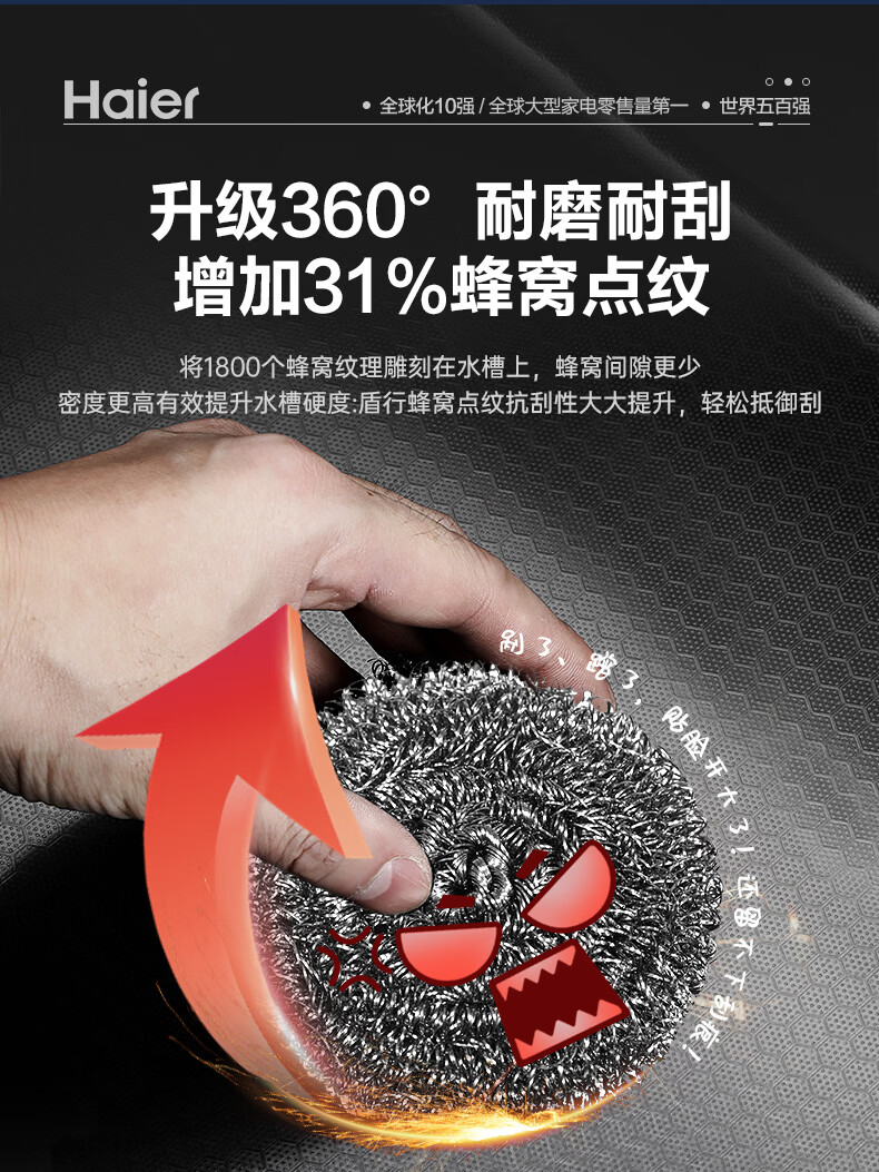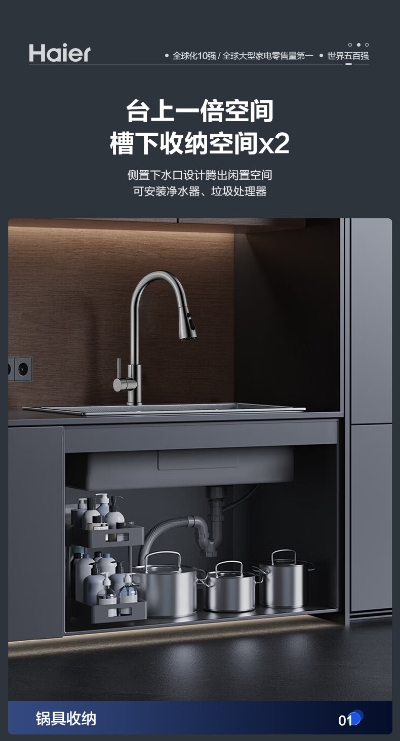 海尔水槽大单槽洗菜盆一体盆单槽厨房304不锈钢水槽双重滤渣洗碗槽