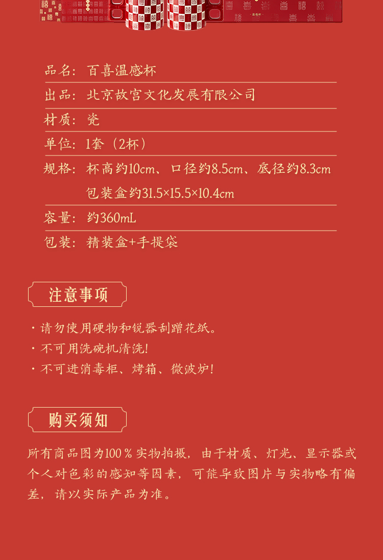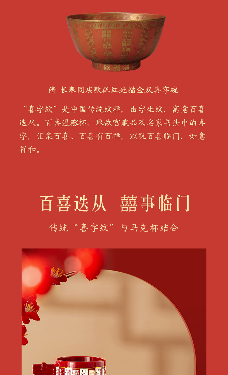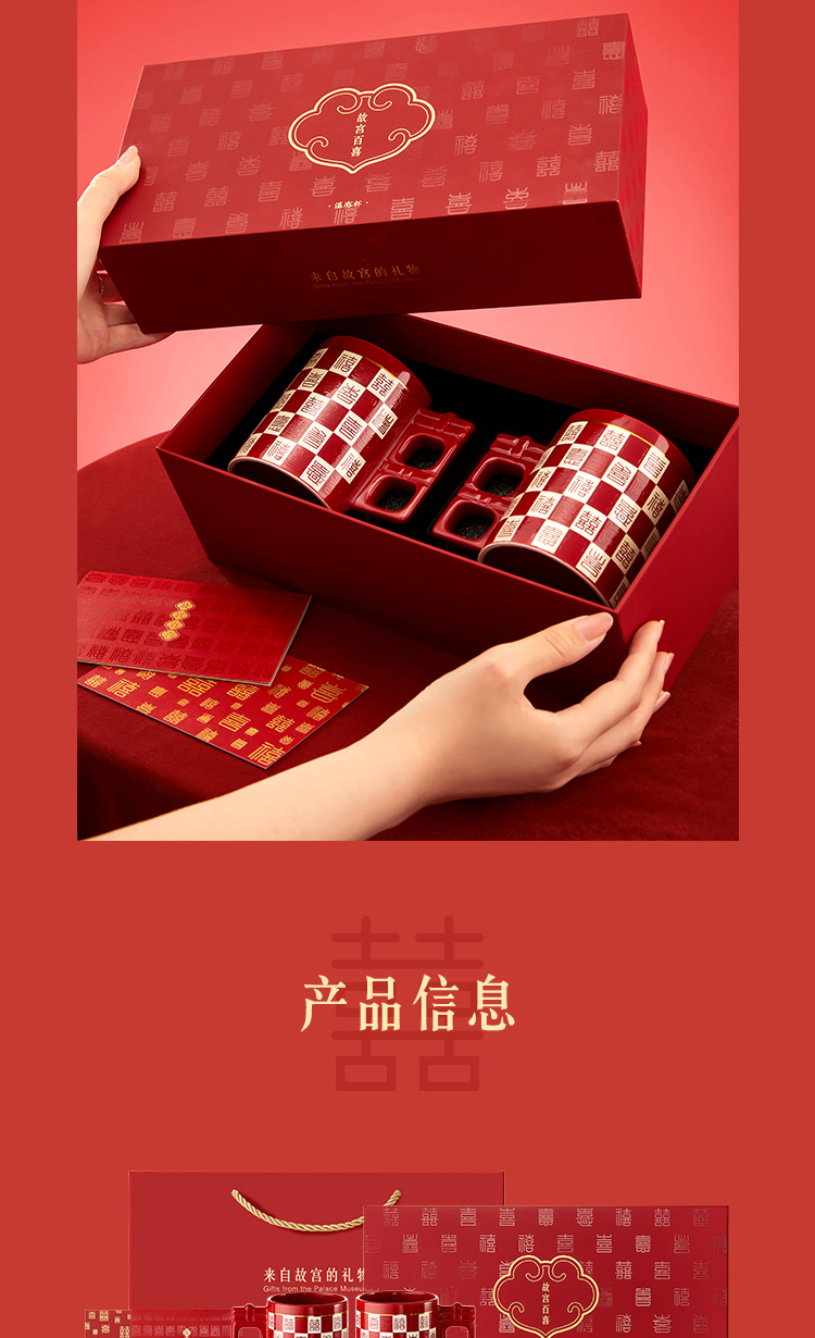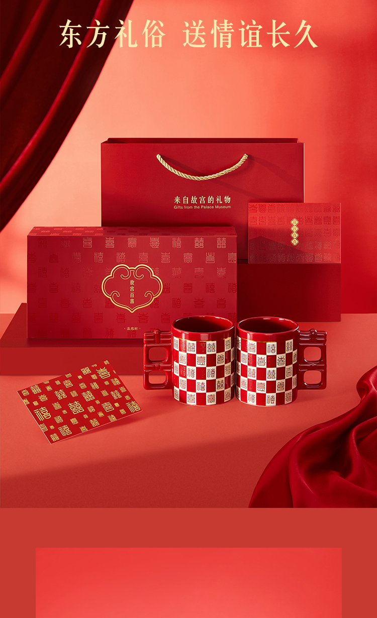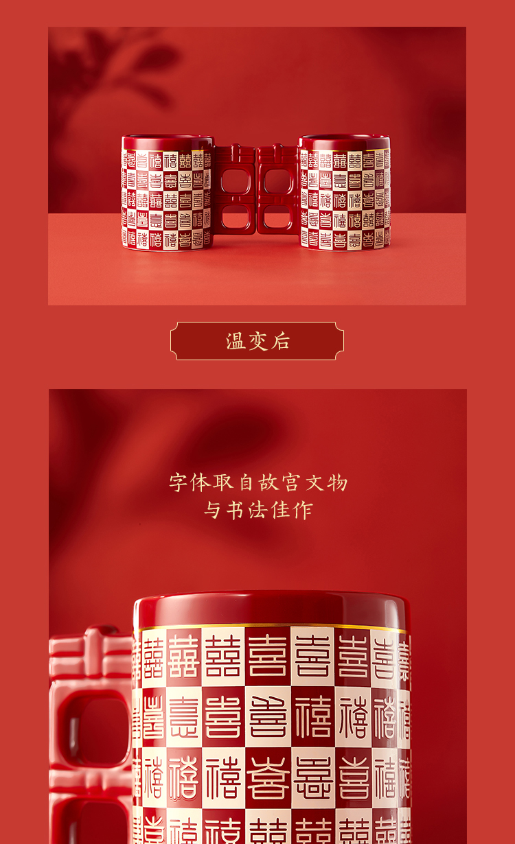 【故宫杯子】百喜杯温感对杯博物馆文创杯子新婚结婚订婚礼物送新人