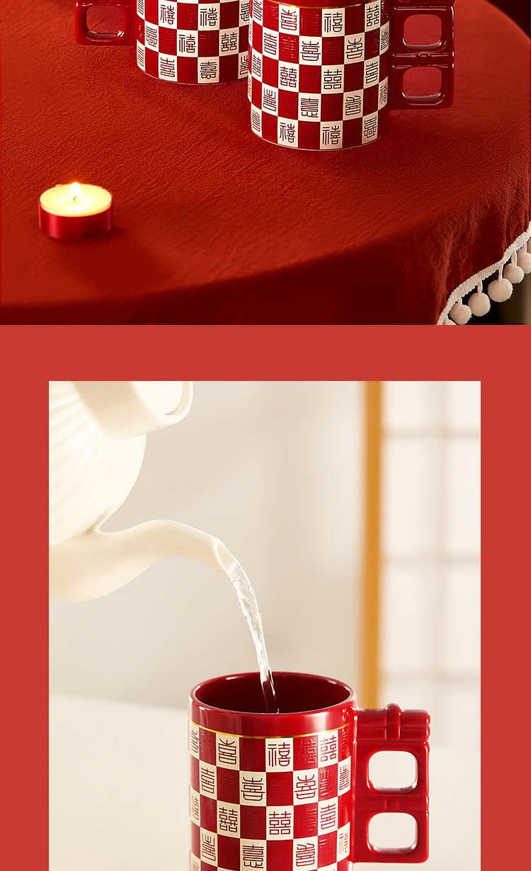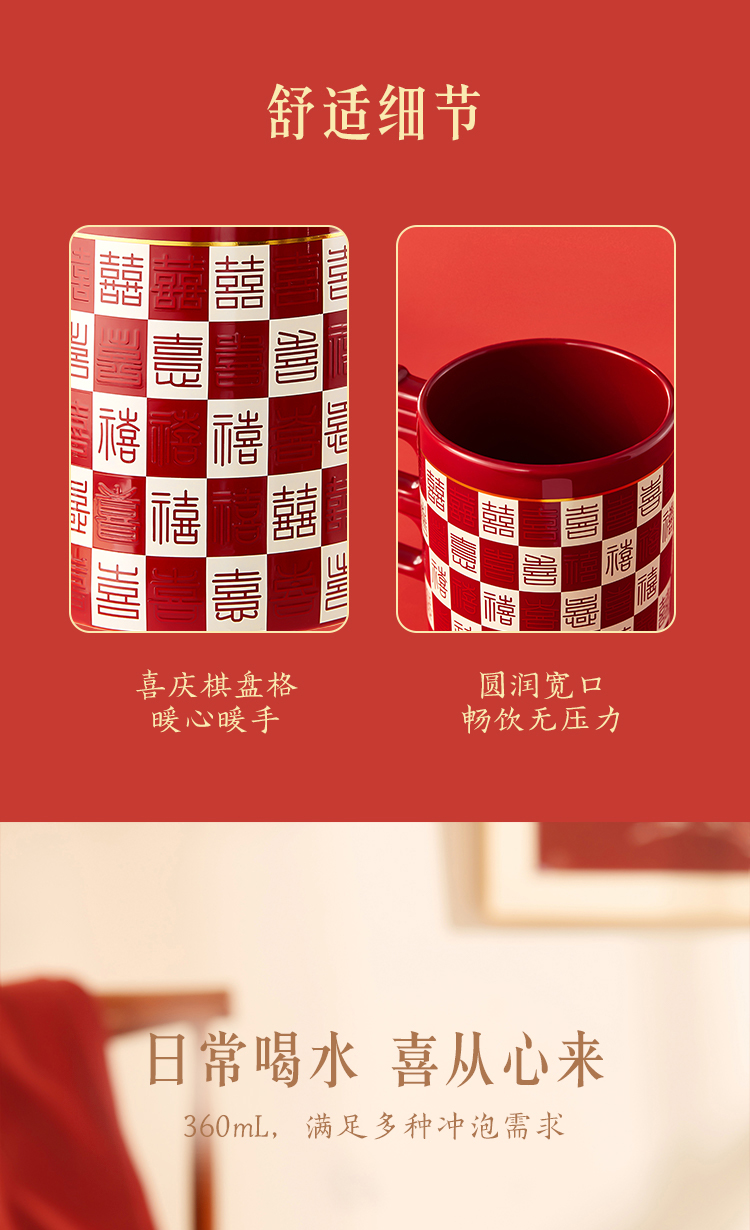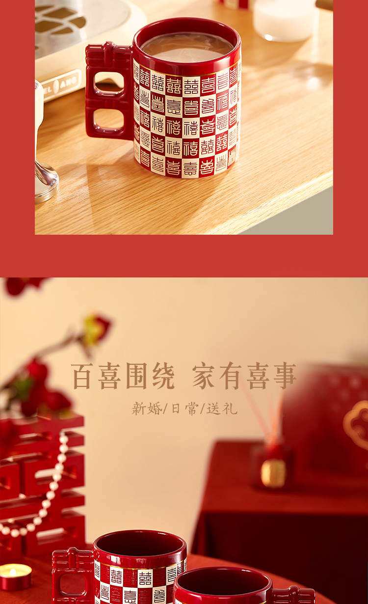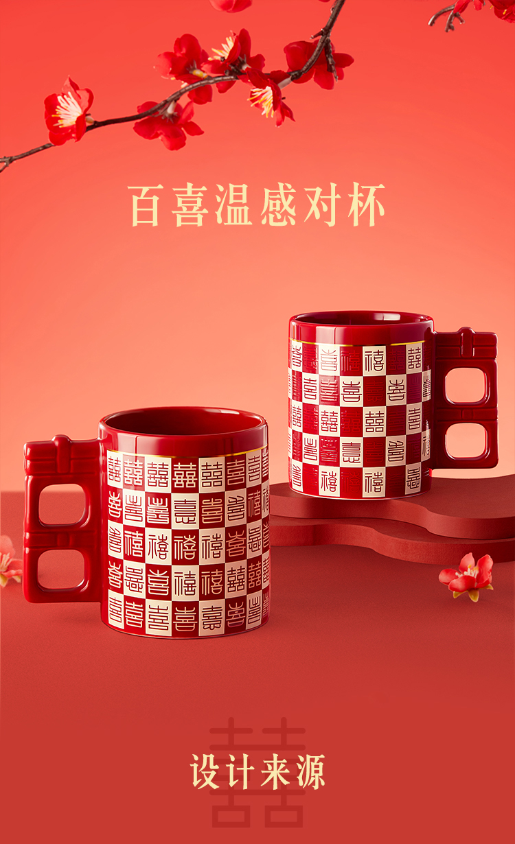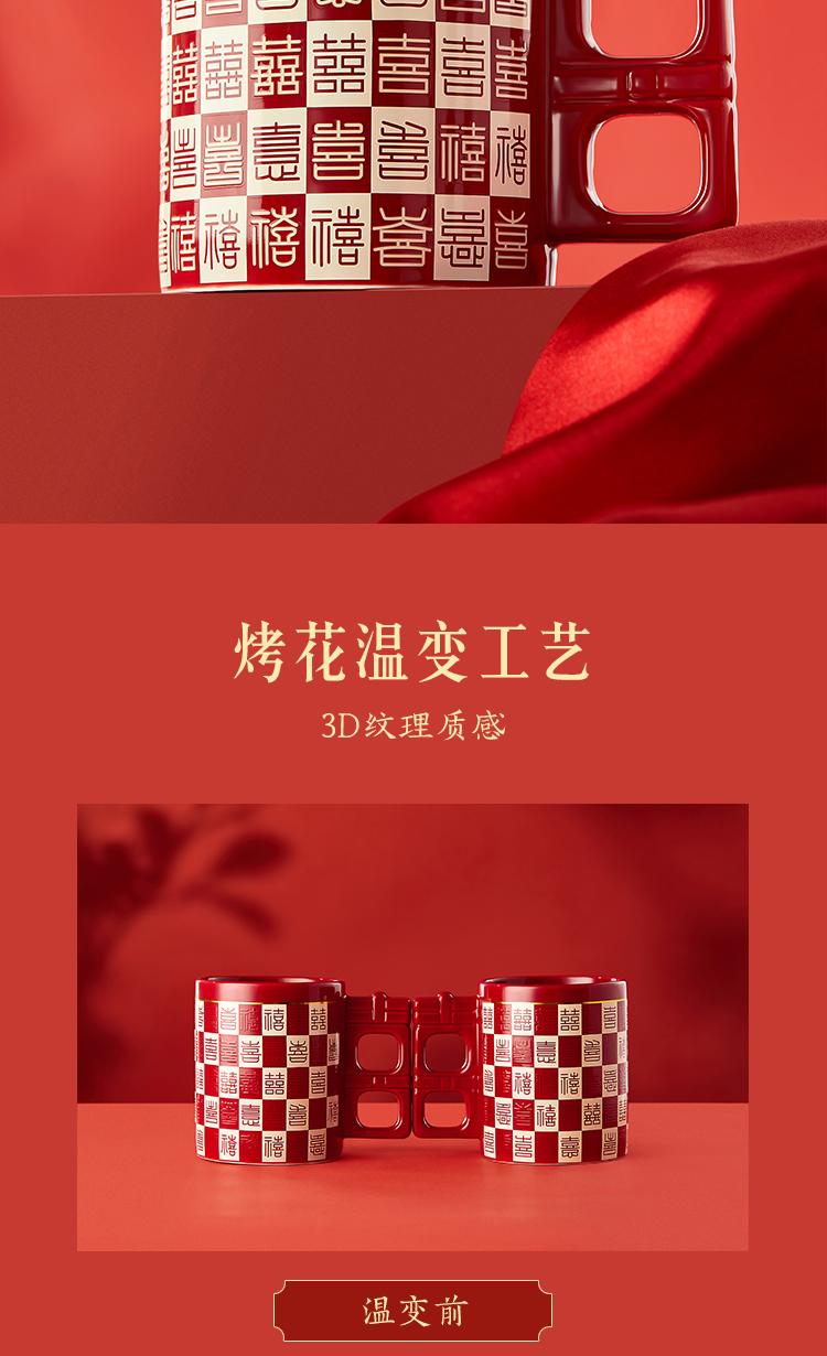【故宫杯子】百喜杯温感对杯博物馆文创杯子新婚结婚订婚礼物送新人