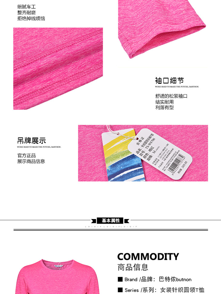 8706巴特侬 圆领运动长袖T恤女户外长袖T恤强弹力休闲长袖圆领