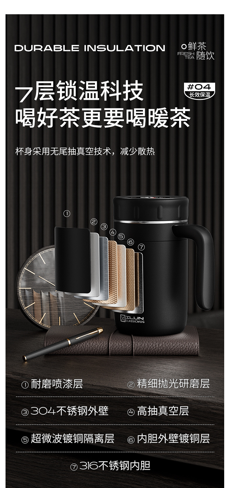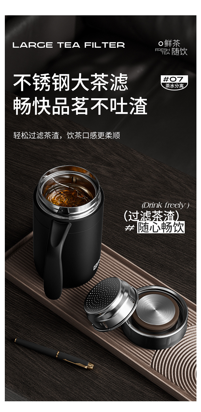 【健康升级!316不锈钢】不锈钢大茶滤,畅快品茗不吐渣,大容量水杯茶水分离商务杯保温杯。rb