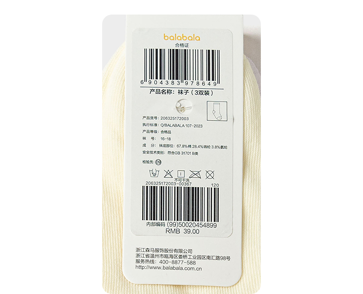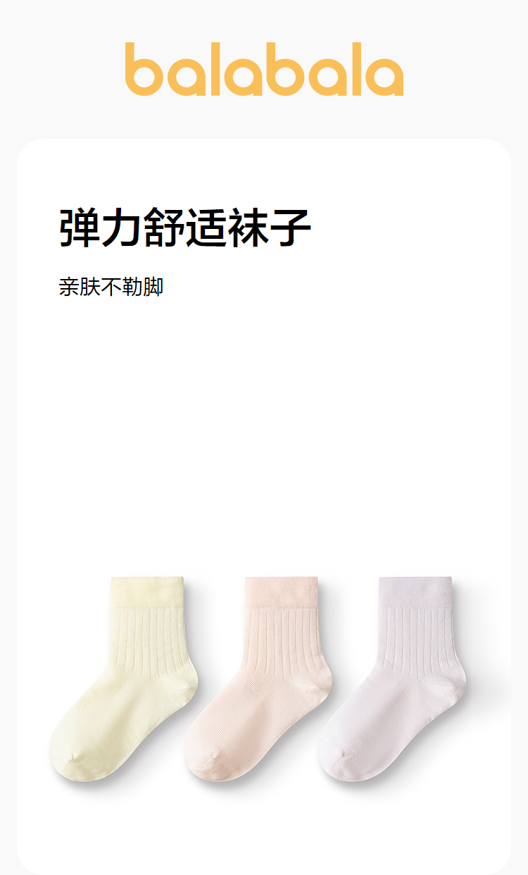 巴拉巴拉女童袜子秋新品儿童中筒婴童袜不勒脚三双装