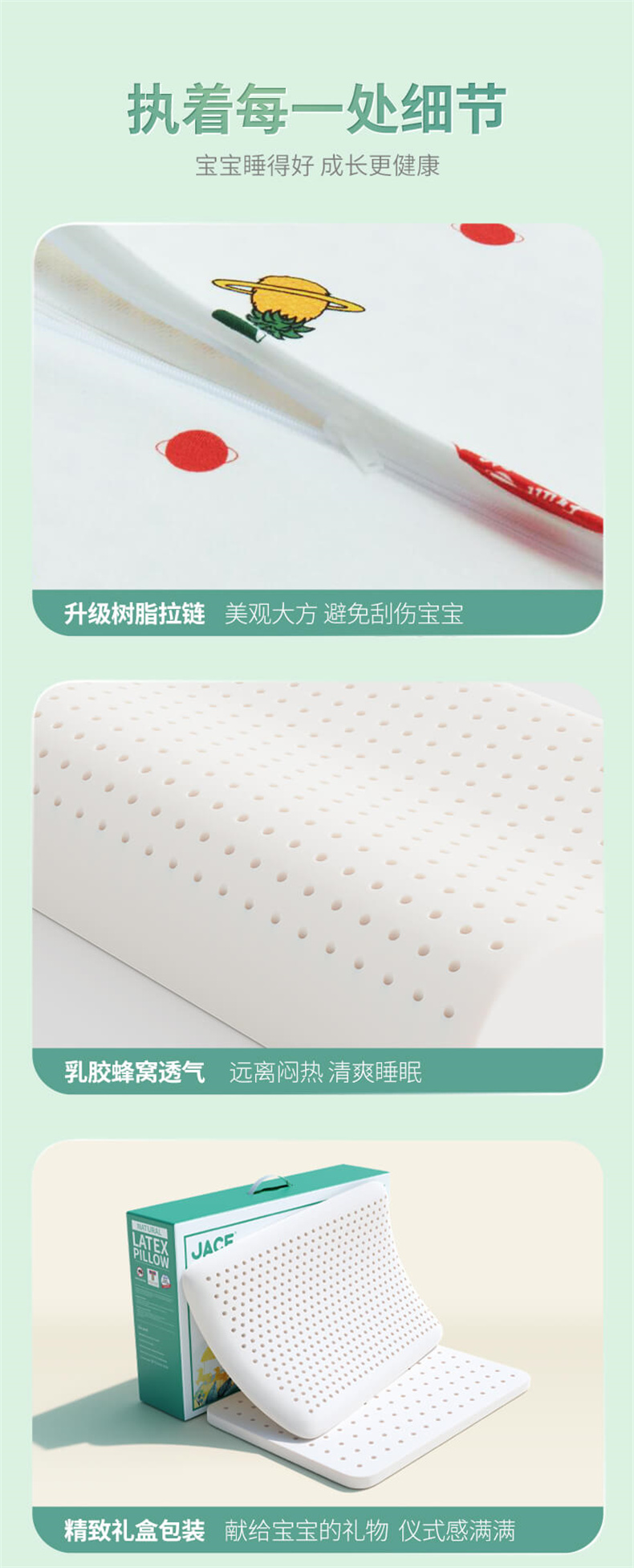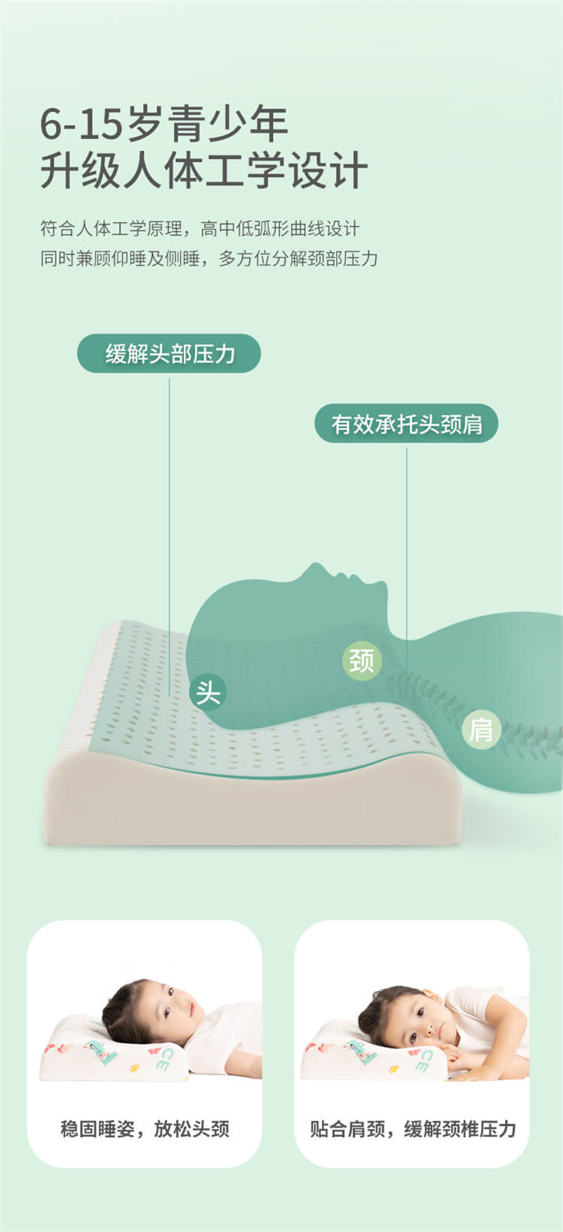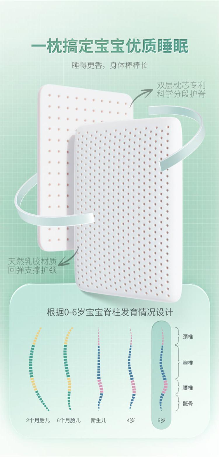 【青少年乳胶枕】0-6岁儿童、6-15岁青少年专用乳胶枕,抑菌防螨、A类可触标准、蜂窝透气、95%乳胶含量