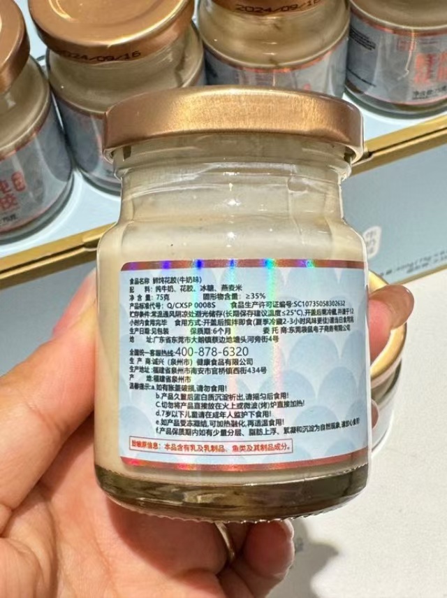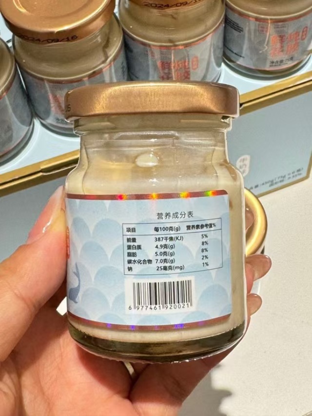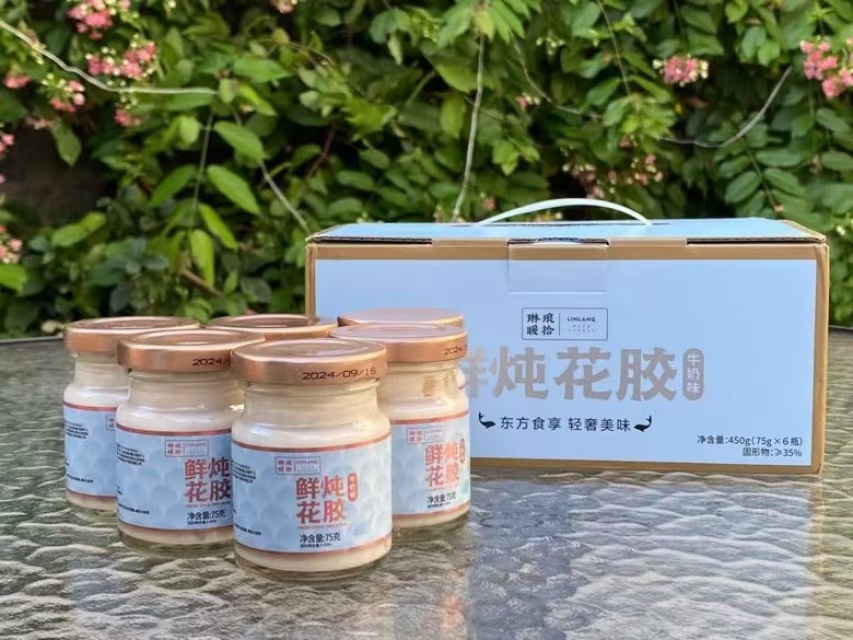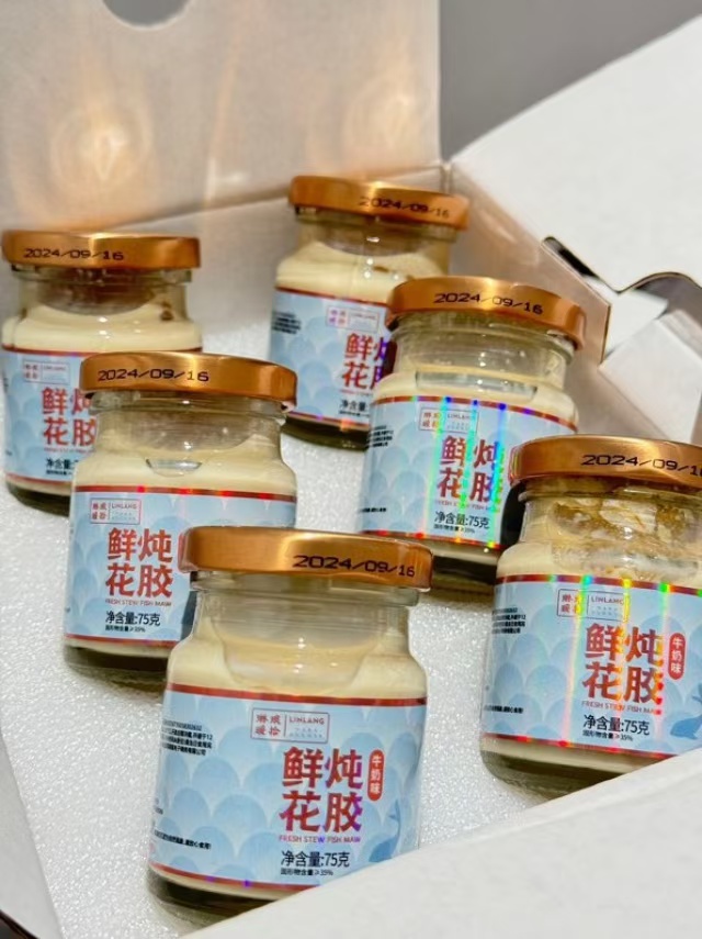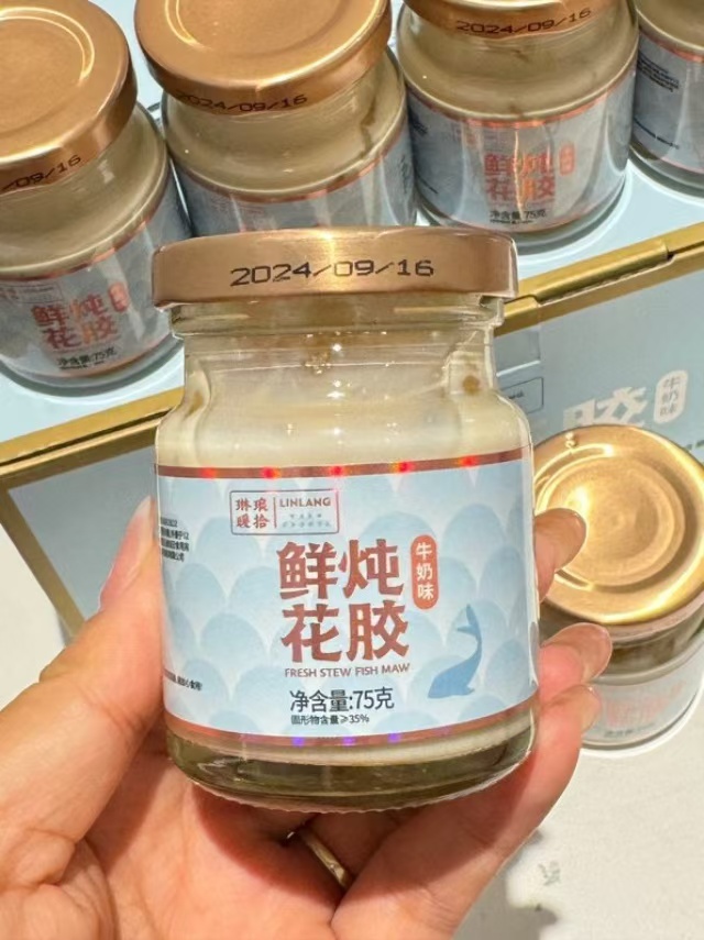 品名:鲜炖花胶 规格:75g/瓶(75g*6瓶装下2份送手提袋;75g*10瓶送手提袋1,送勺子1,送完即止,不另行通知)发货地/产地:福建等多仓随机/福建保质期:6个月,建议收到后尽快食用。包装方式:箱装