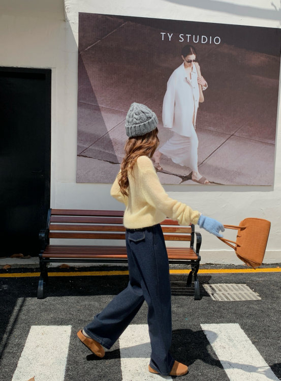 🍁秋冬季节,我们的新品羊毛牛仔弯刀裤闪亮登场啦!👖 🧶采用高品质羊毛面料,柔软舒适又保暖,穿上去挺括有型,让你在这个季节里既时尚又温暖。