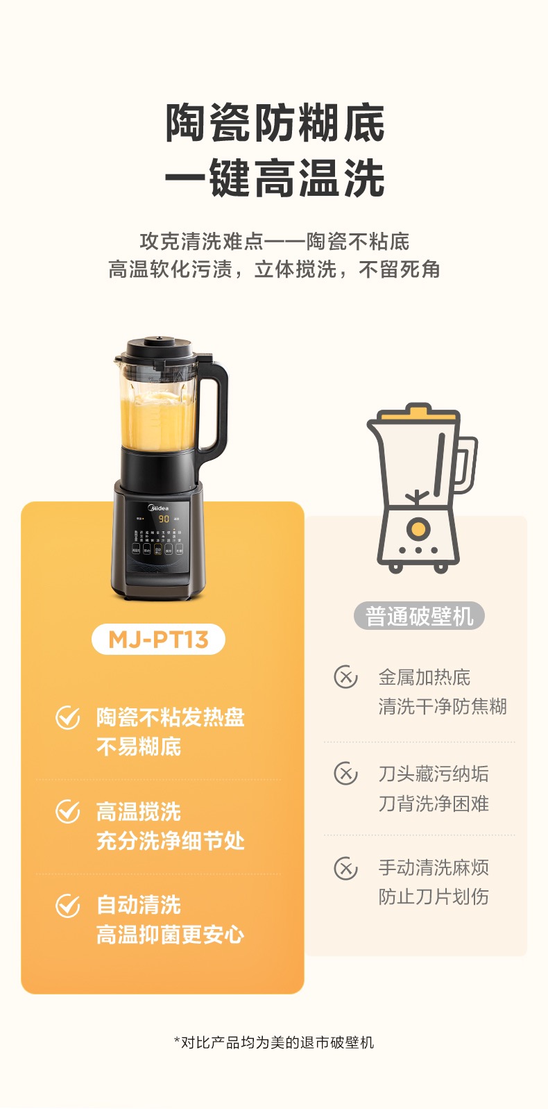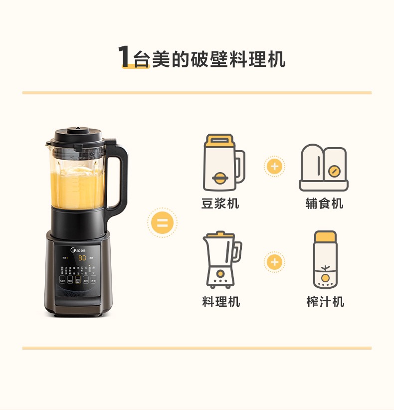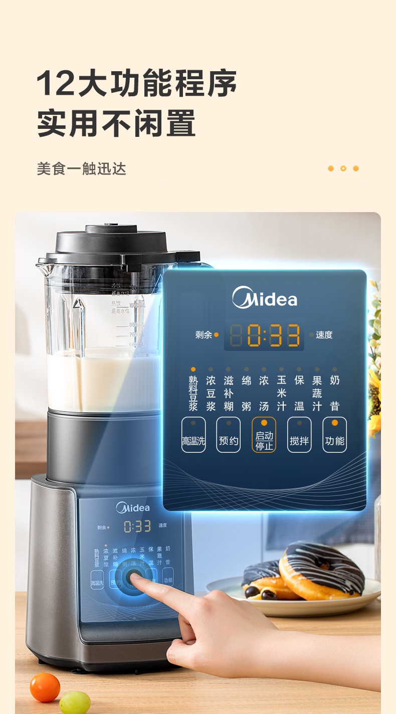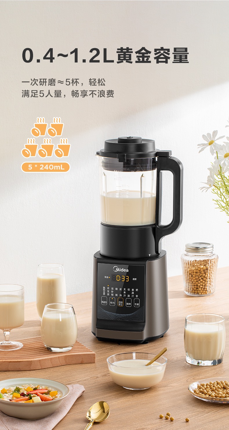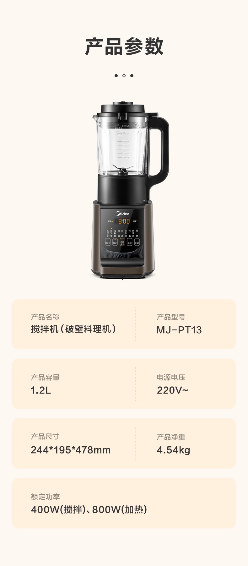 美的(Midea)(510525)破壁机 MJ-PT13 1.2L 220V 50Hz 精钢4叶破壁刀