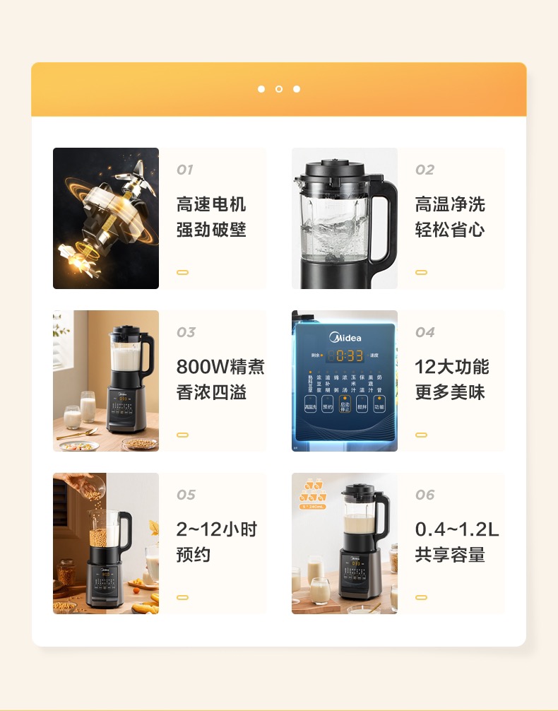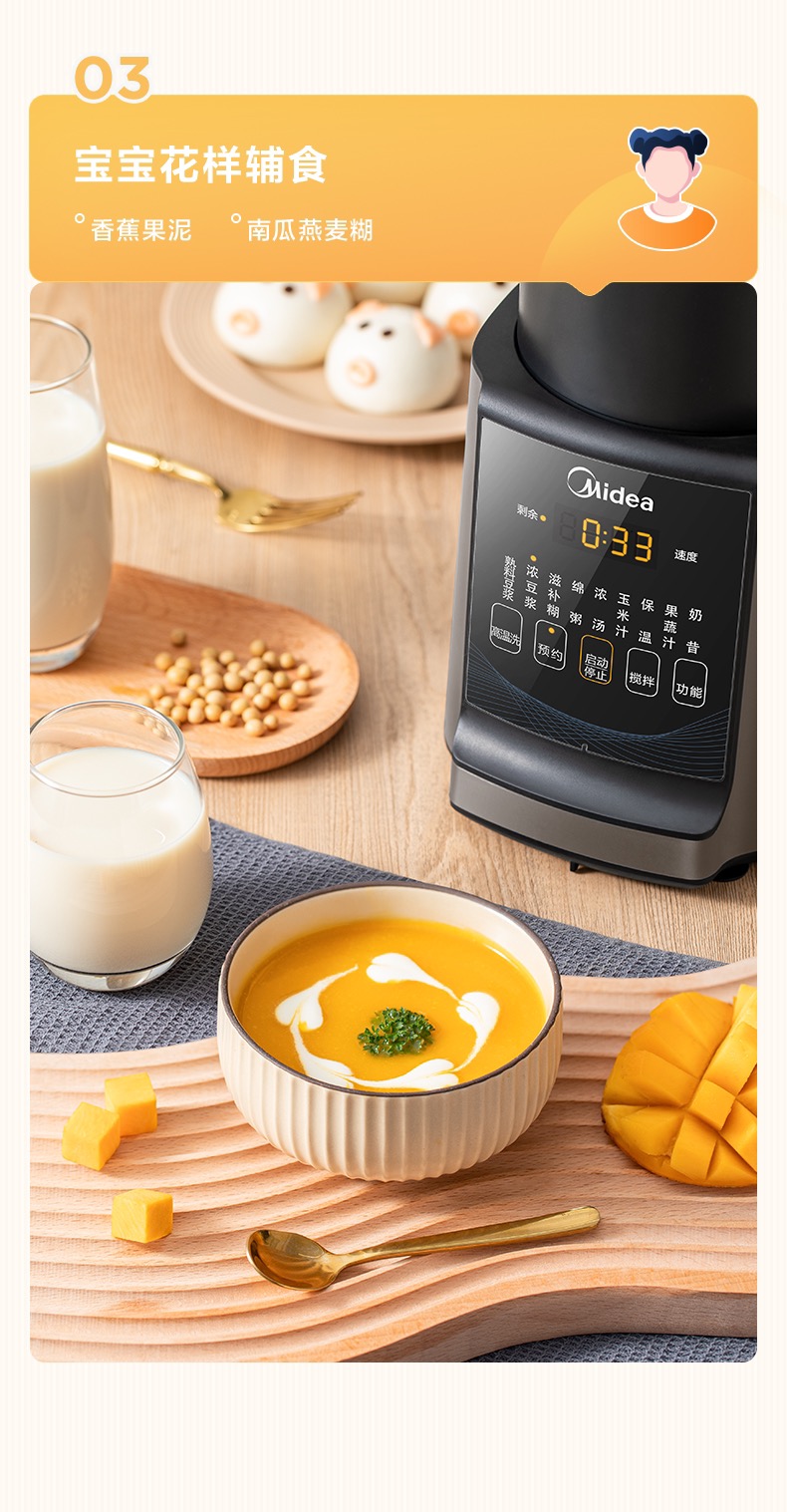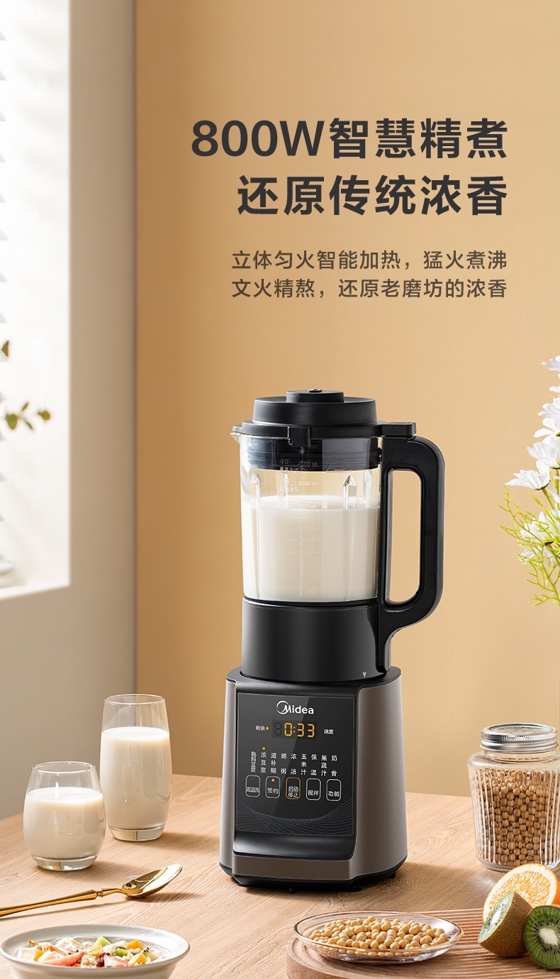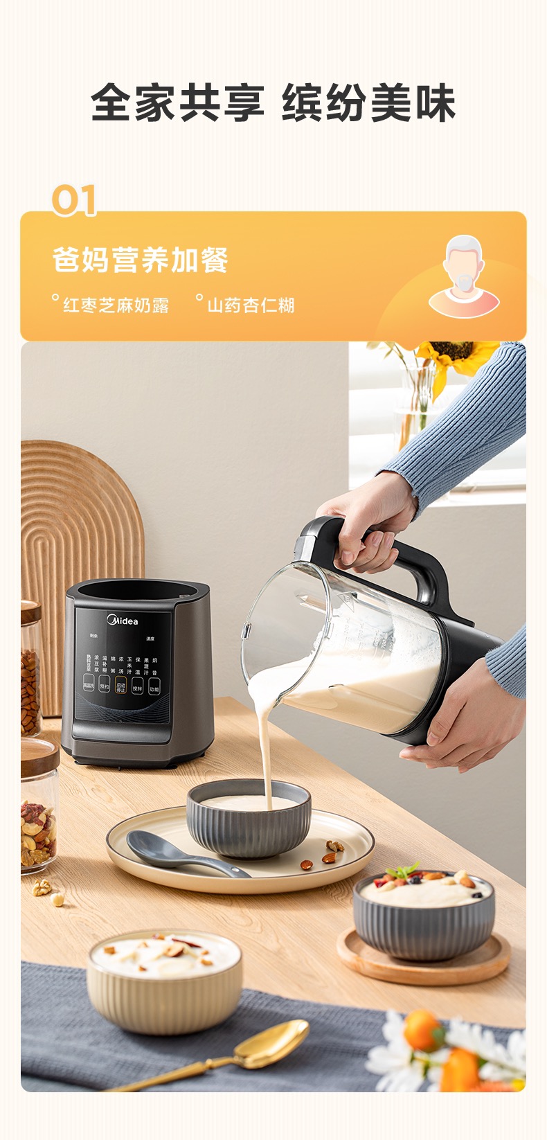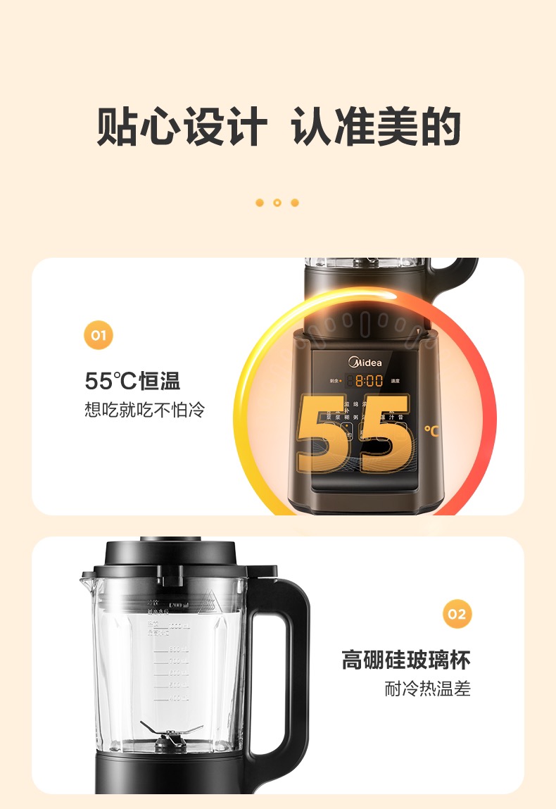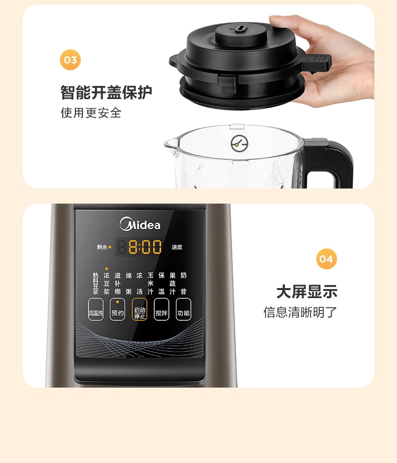 美的(Midea)(510525)破壁机 MJ-PT13 1.2L 220V 50Hz 精钢4叶破壁刀
