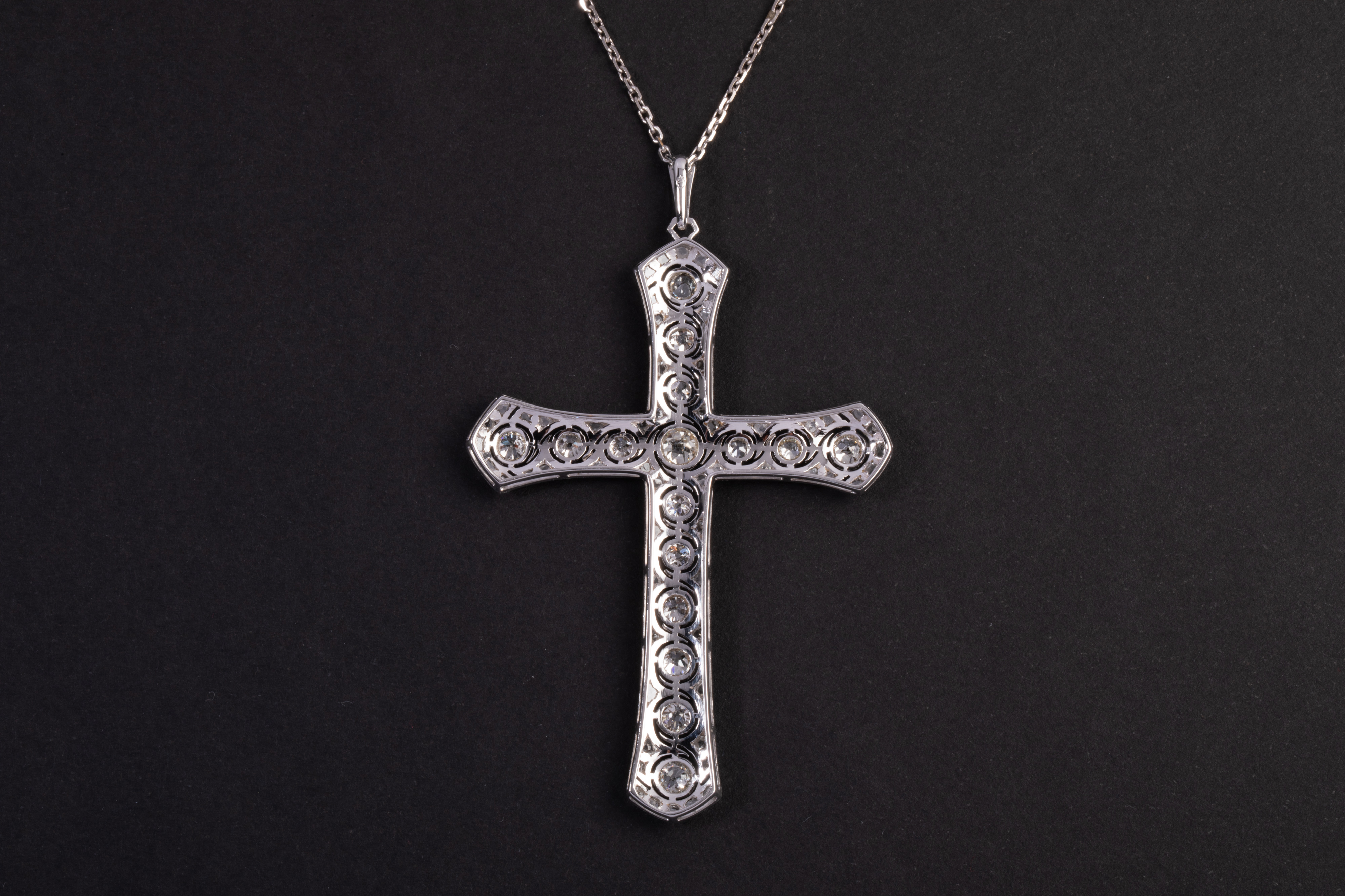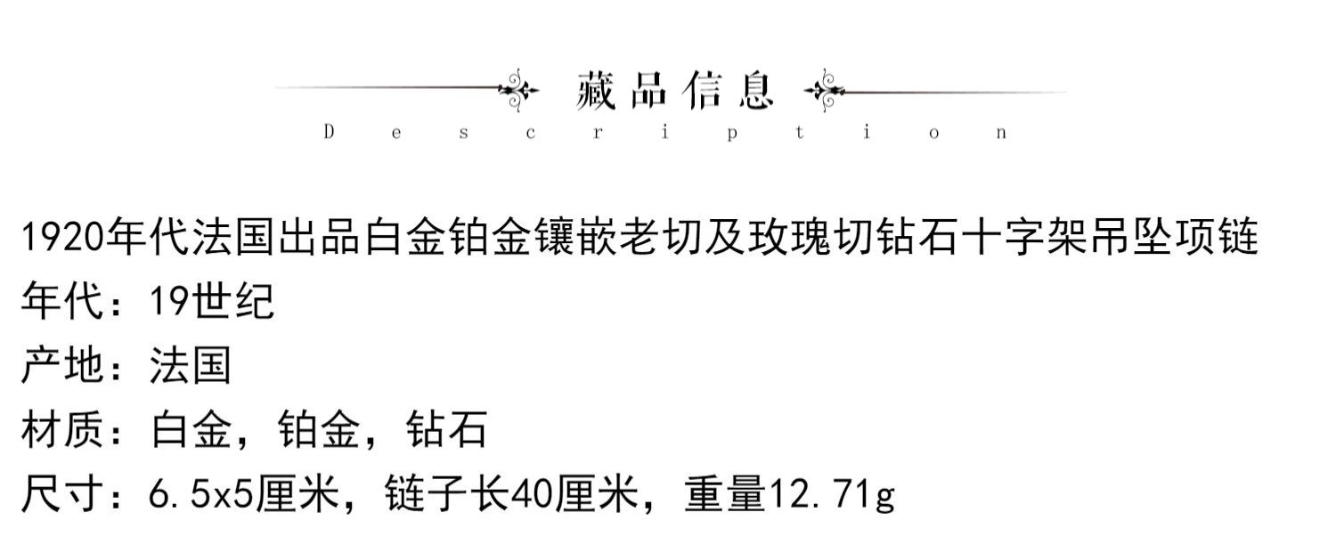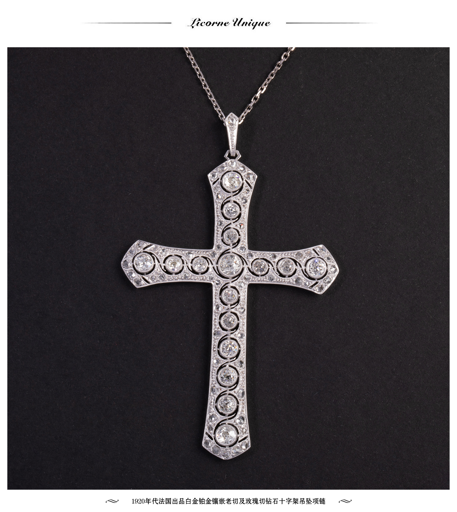 独角鹿西洋古董珠宝首白金铂金镶嵌老切玫瑰切钻石十字架吊坠项链