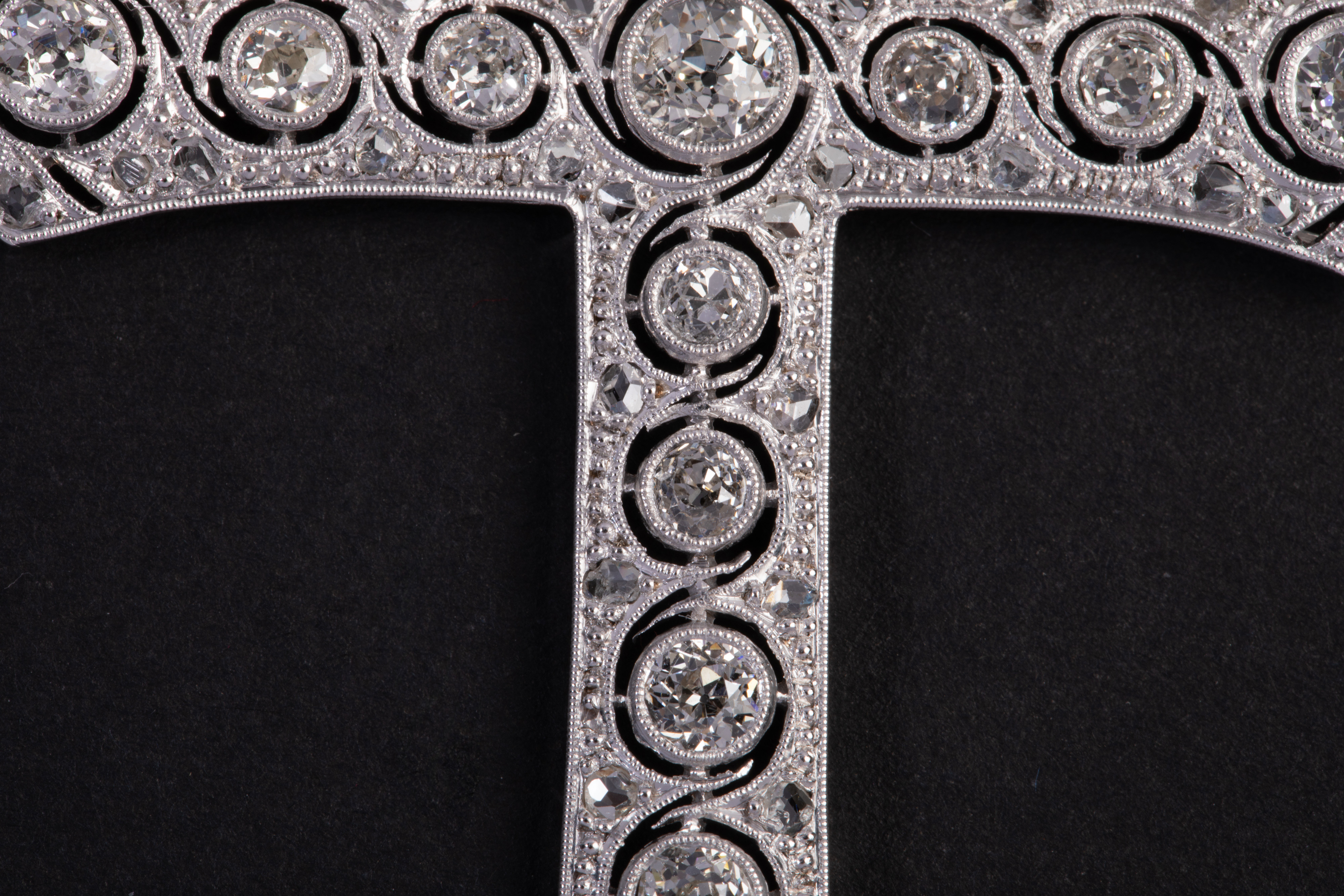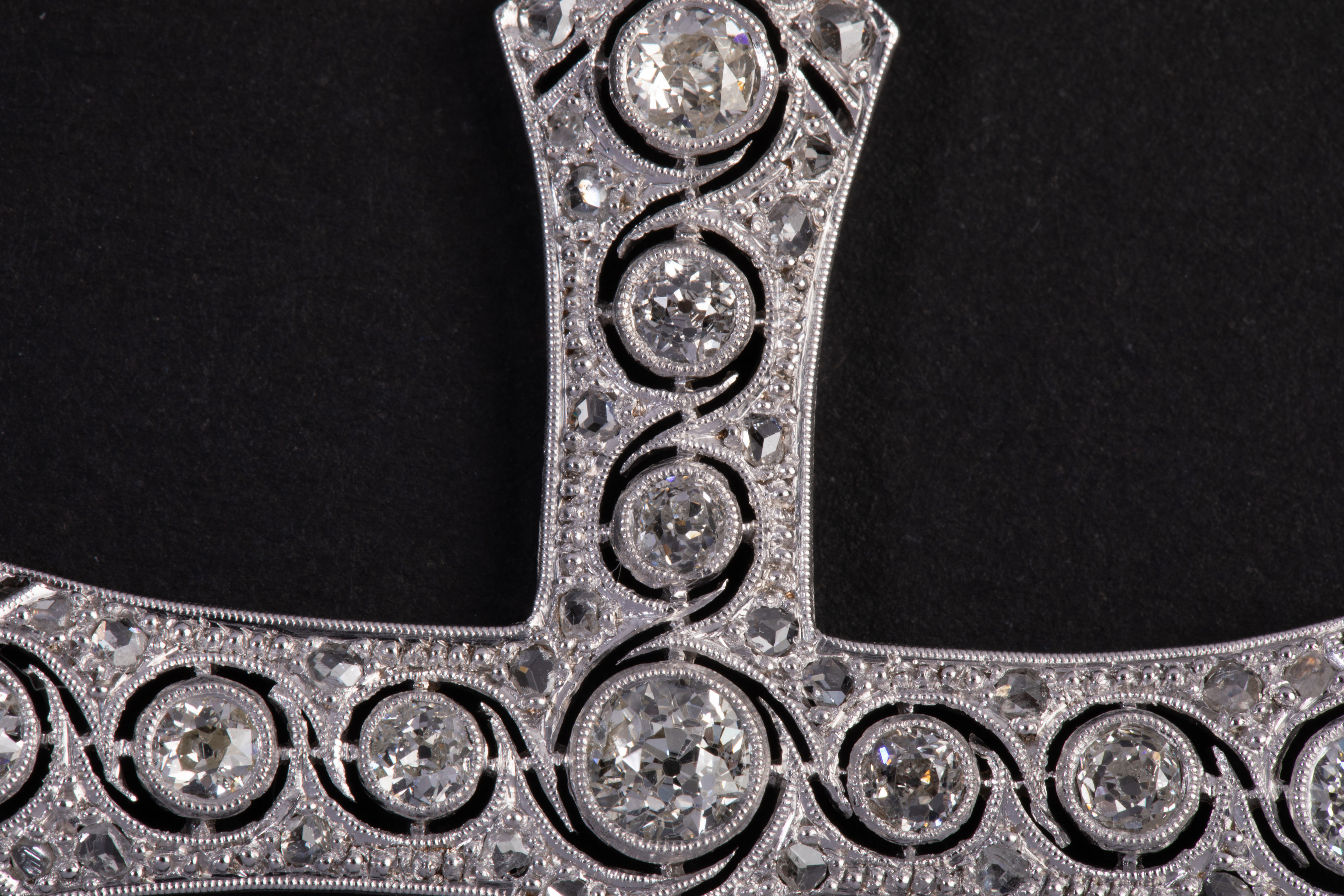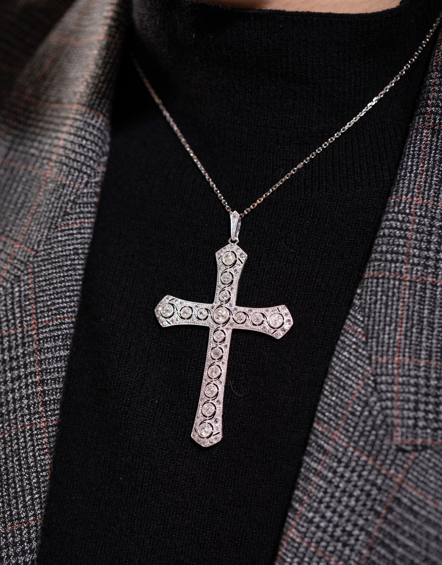 独角鹿西洋古董珠宝首白金铂金镶嵌老切玫瑰切钻石十字架吊坠项链