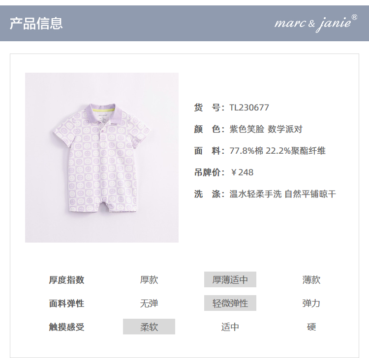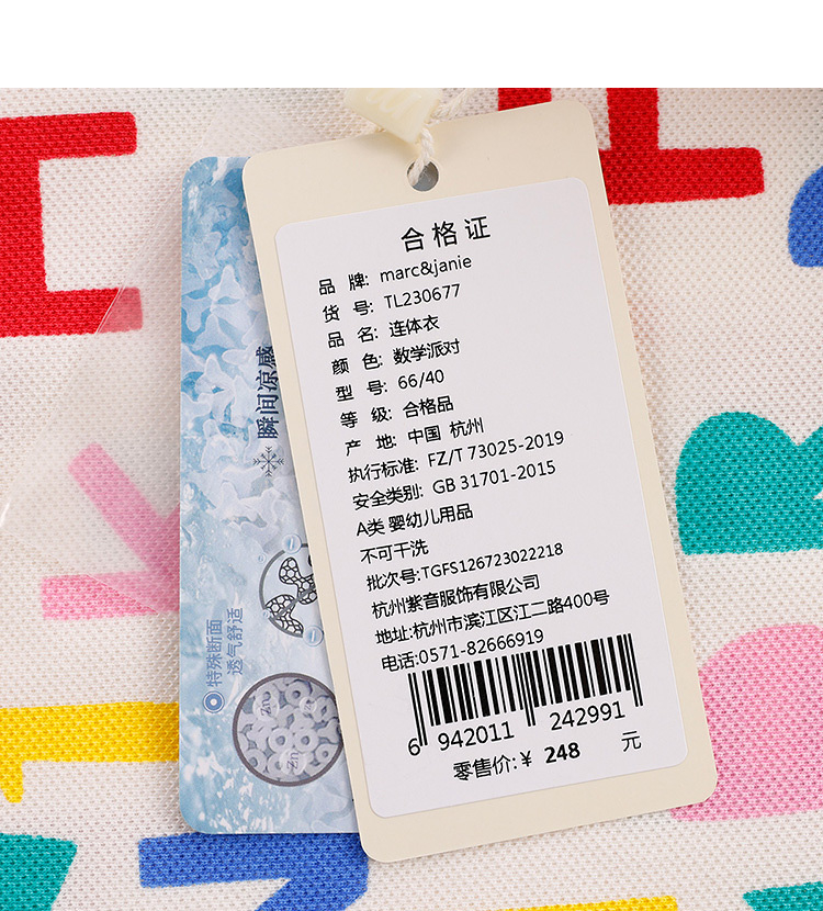 【科技凉感抗菌面料】马克珍妮夏装新款男女宝宝连体衣230677