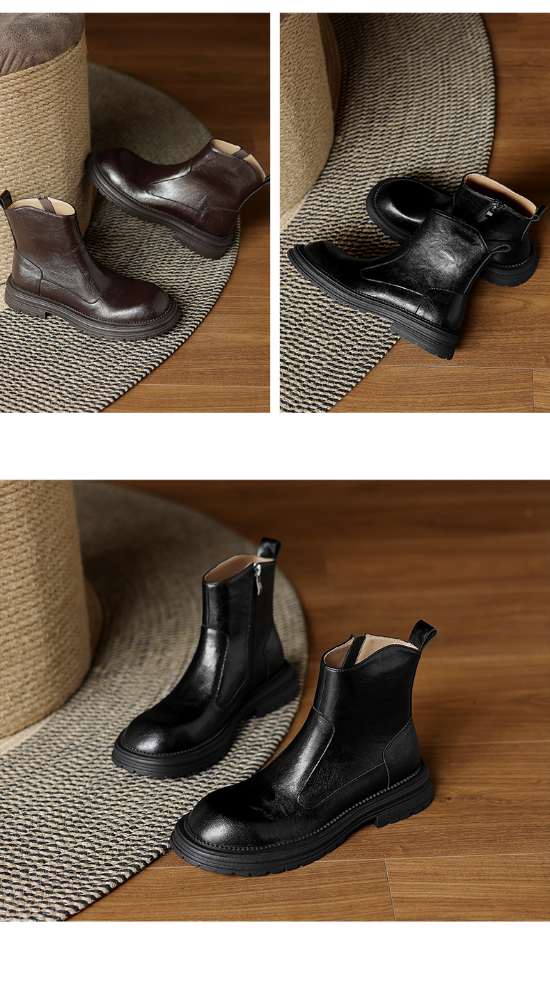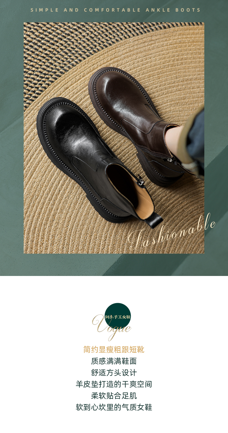 阿么手工女鞋羊皮时装靴高质感穿搭2025新款时尚秋冬百搭短靴5CM