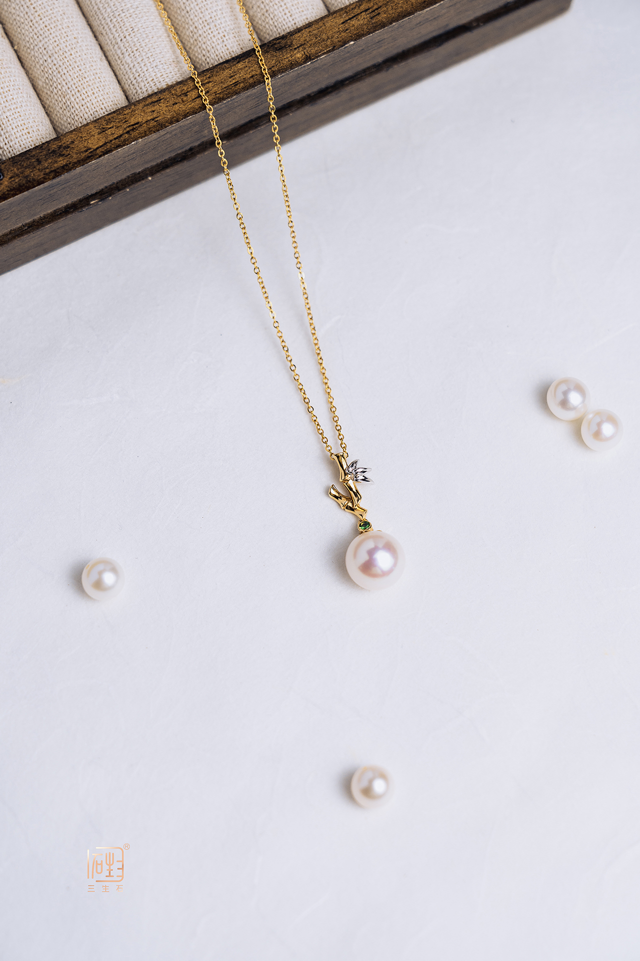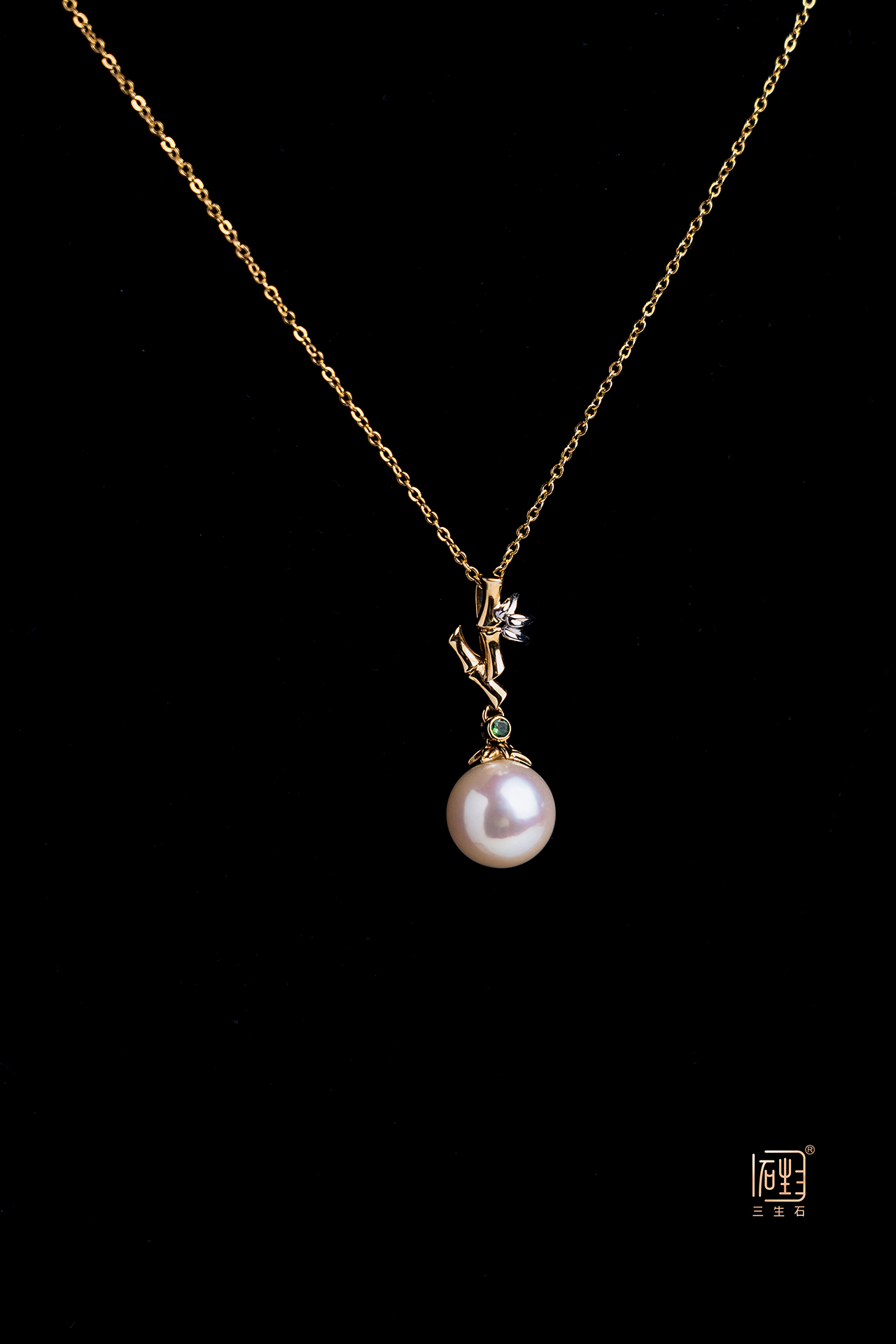 —— 18K金竹韵精品珍珠吊坠