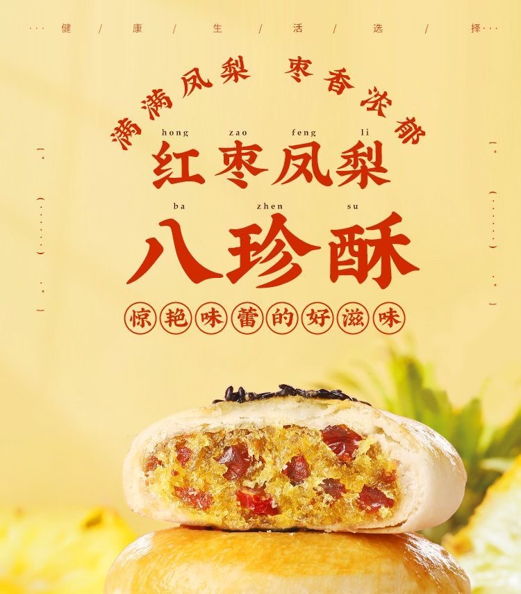【惊艳味蕾的好滋味!红枣凤梨八珍酥】满满凤梨八珍料,黄金酥皮 清甜内馅 枣香浓郁 口口醇香,传统糕点早餐代餐好吃零食Y
