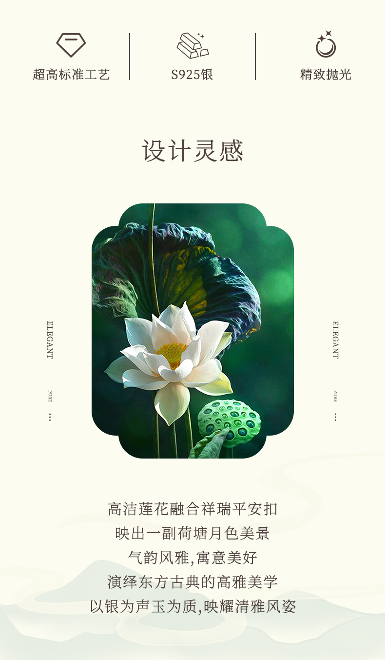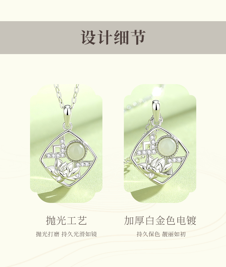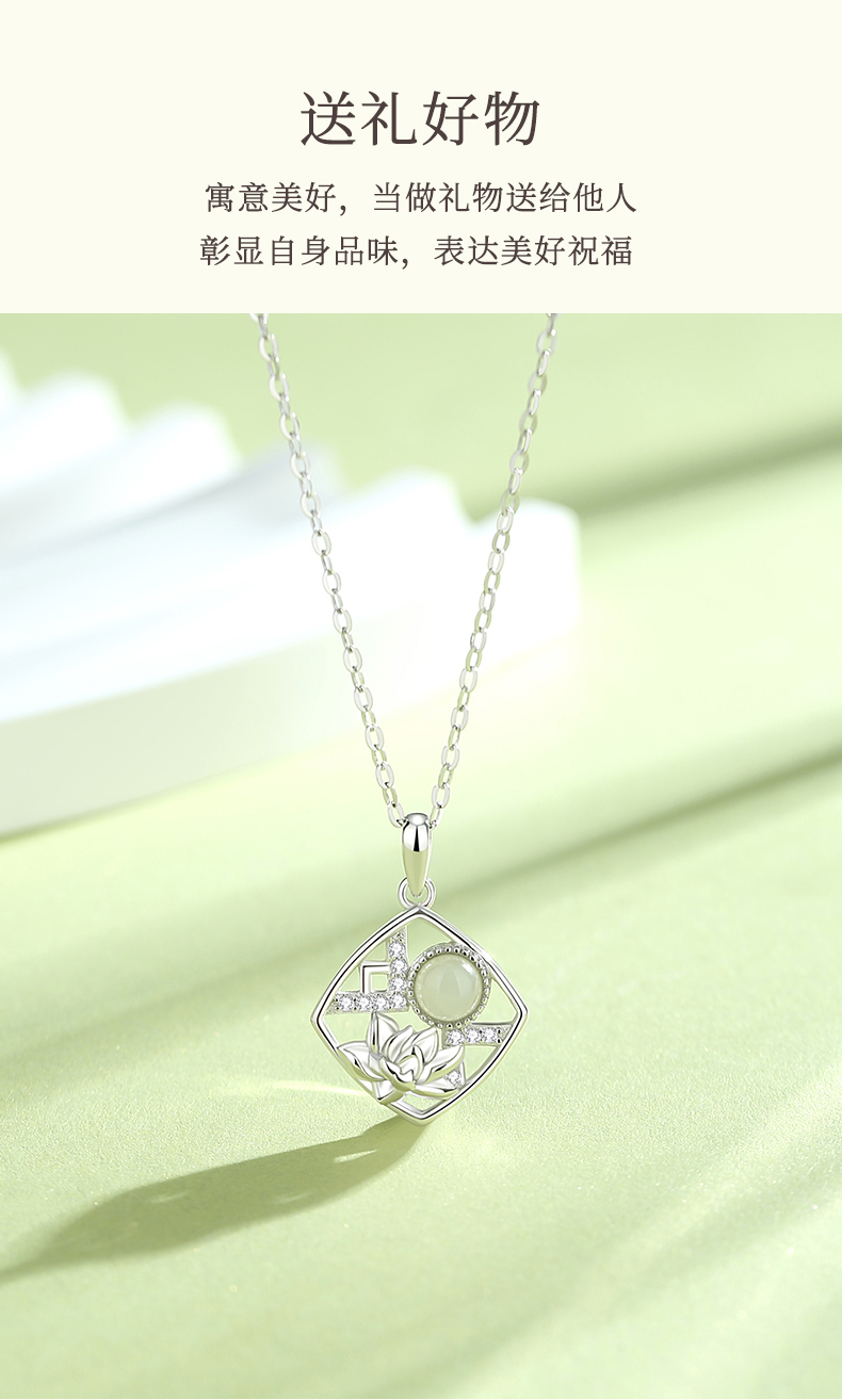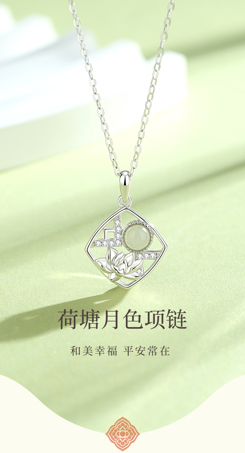 卡蒂罗/KADER 荷塘月色项链 新中式国潮古风好事莲莲可调节锁骨链 镂空设计古典汉服穿搭东方美学吊坠 925银 闺蜜同款