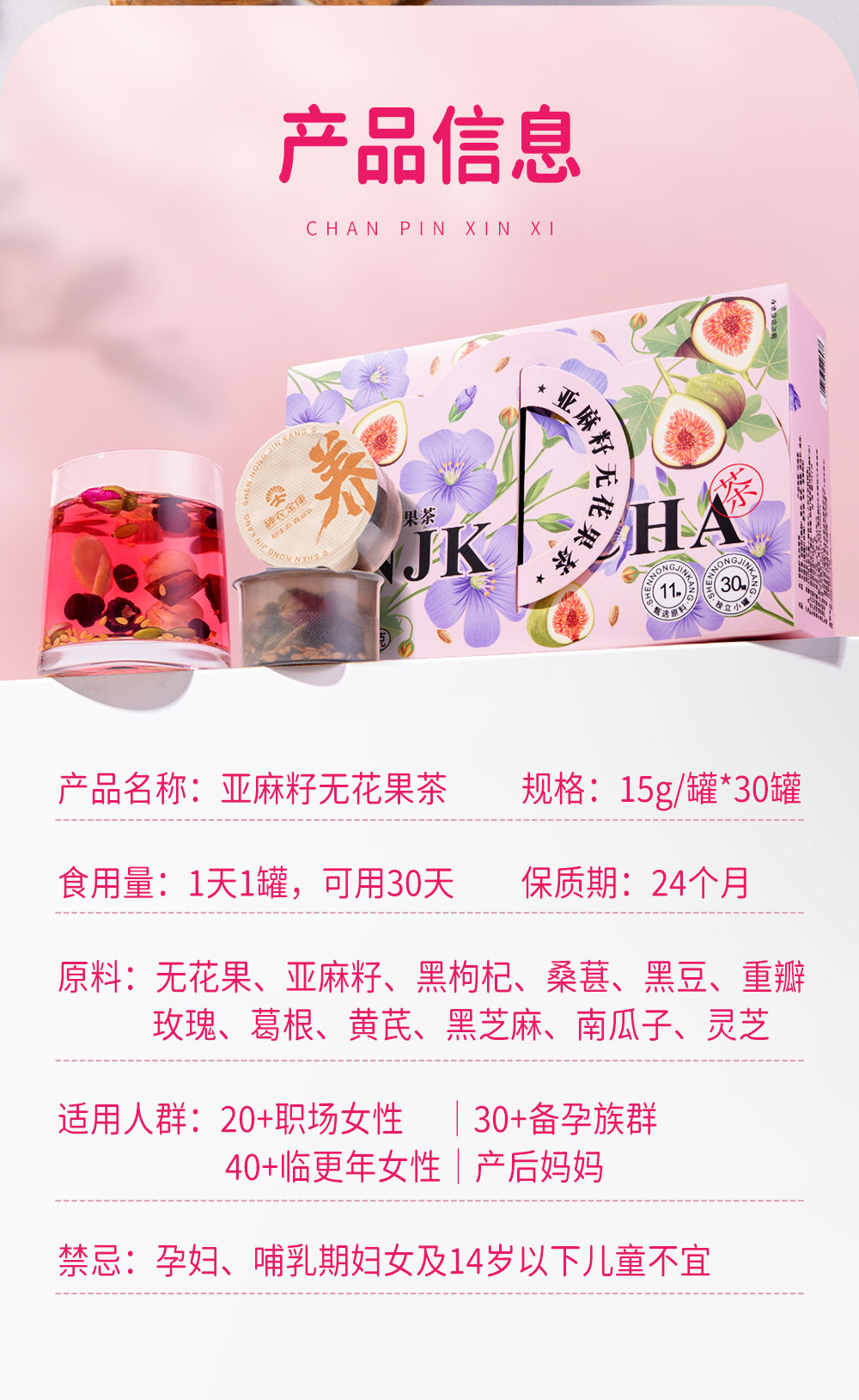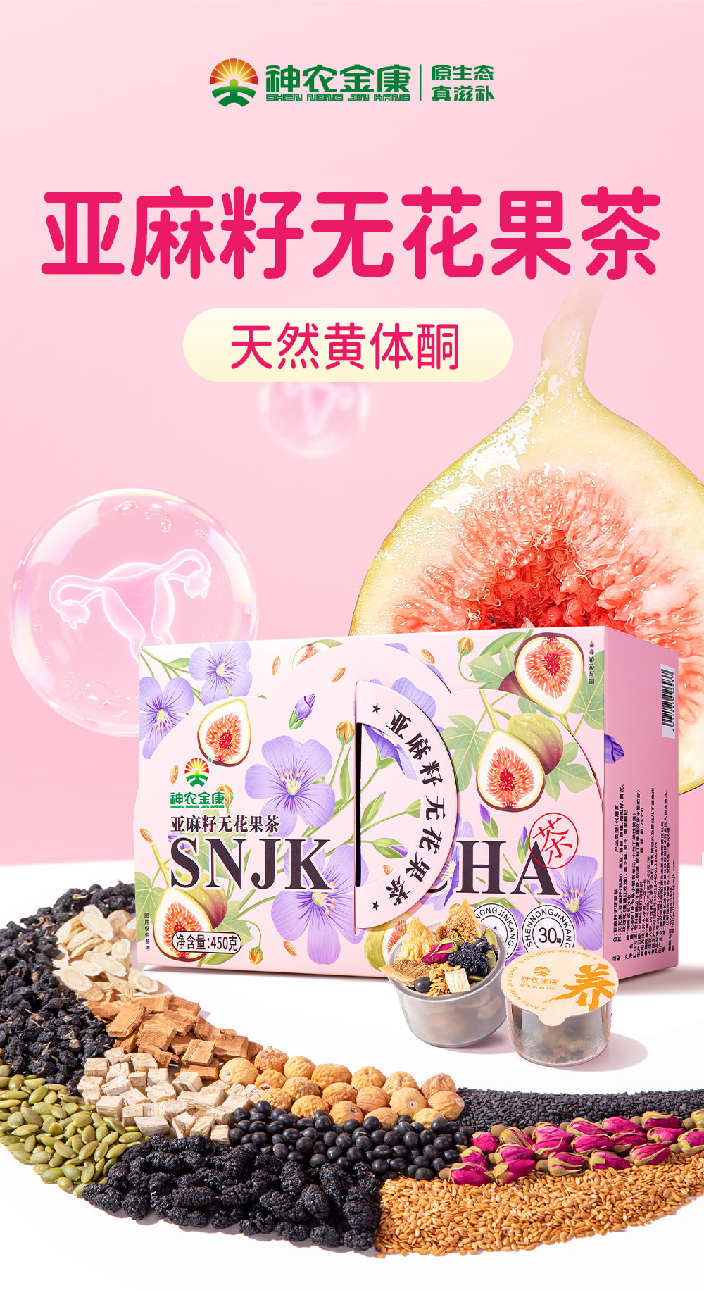 神农金康 亚麻籽无花果茶 桑葚黑枸杞女生养生茶包