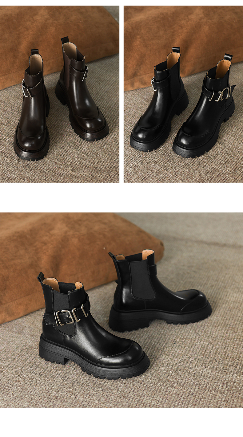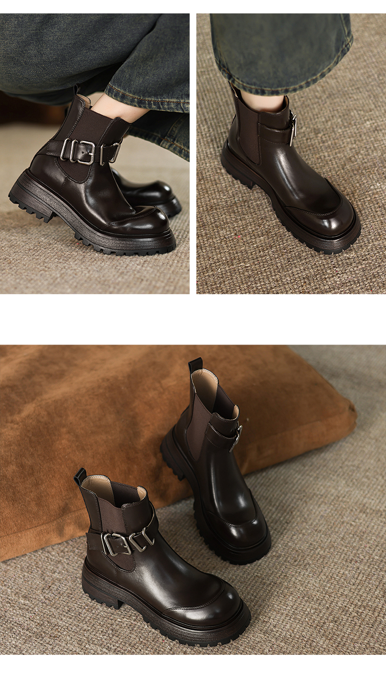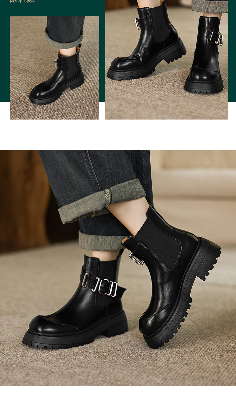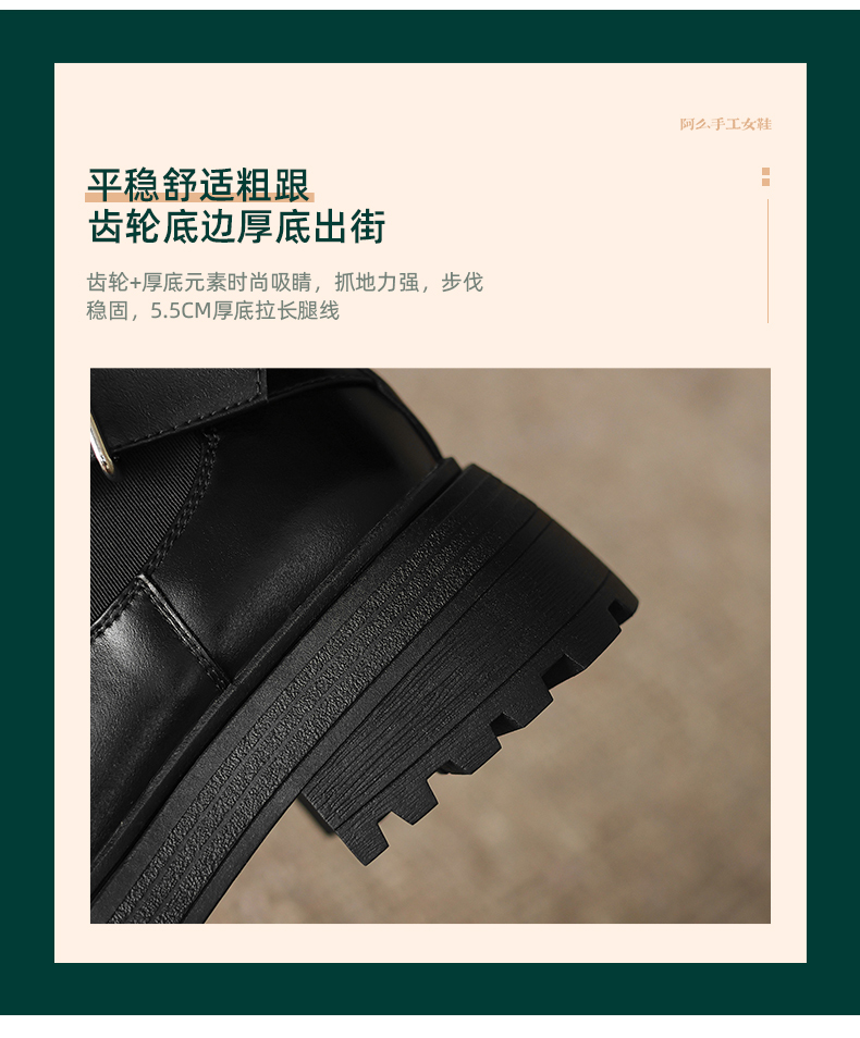 阿么手工女鞋皮带扣甜酷厚底切尔西靴朋克套筒真皮复古短靴5.5CM