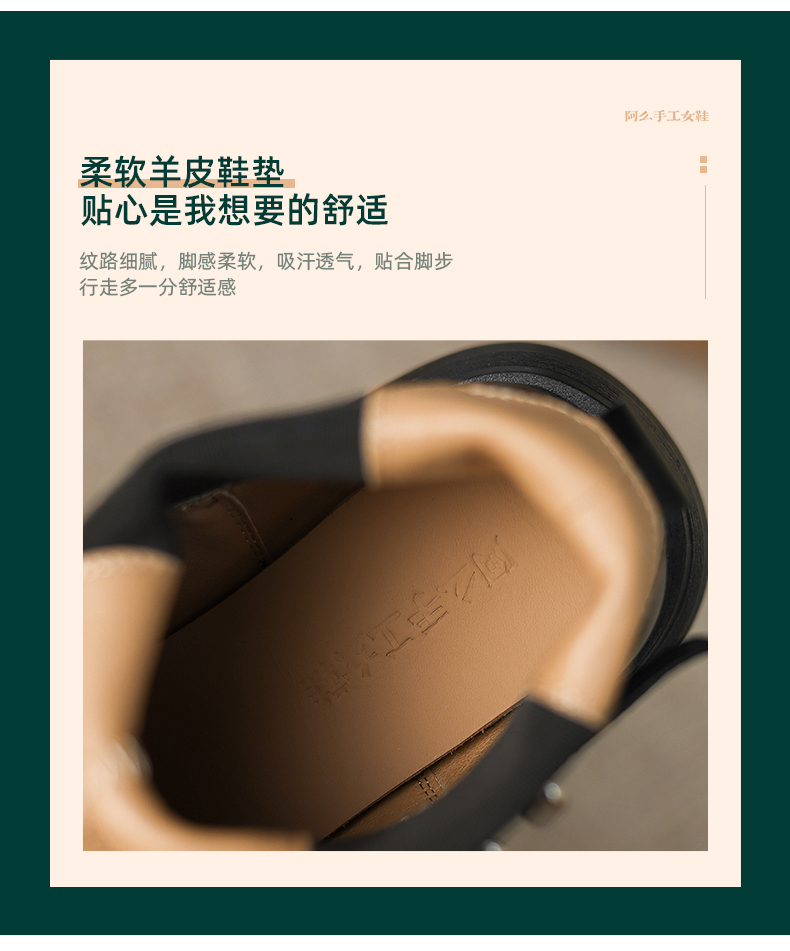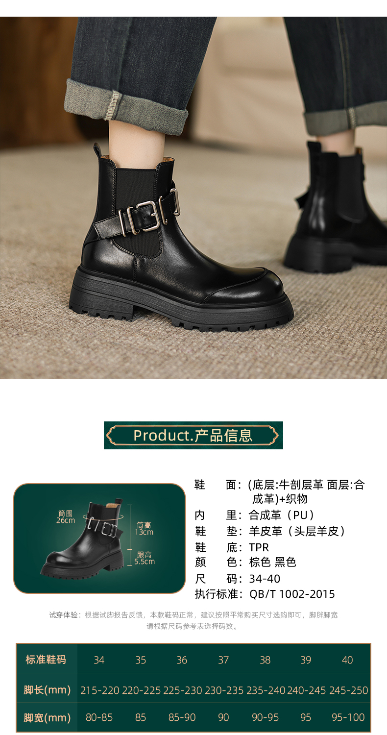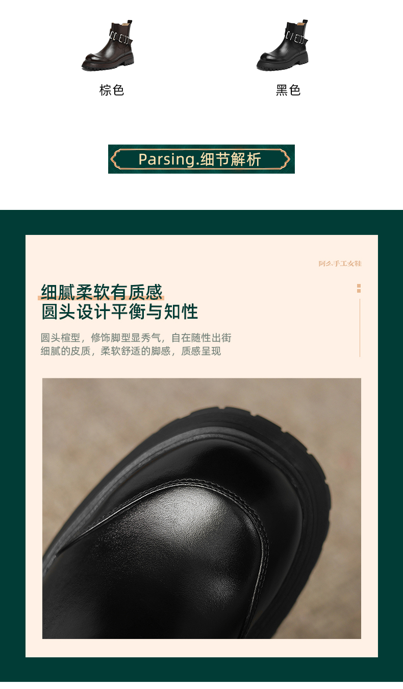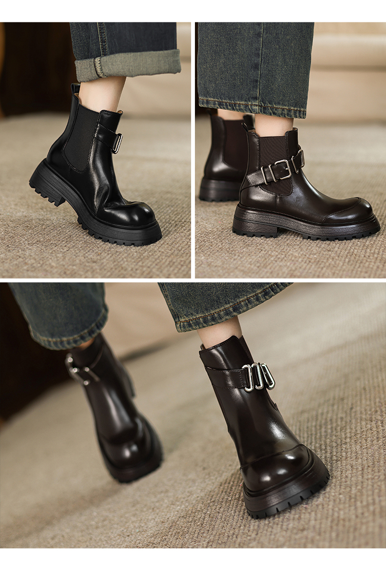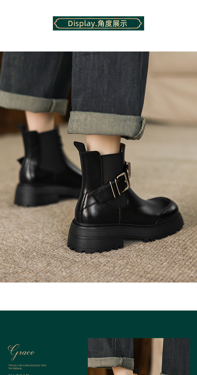 阿么手工女鞋皮带扣甜酷厚底切尔西靴朋克套筒真皮复古短靴5.5CM