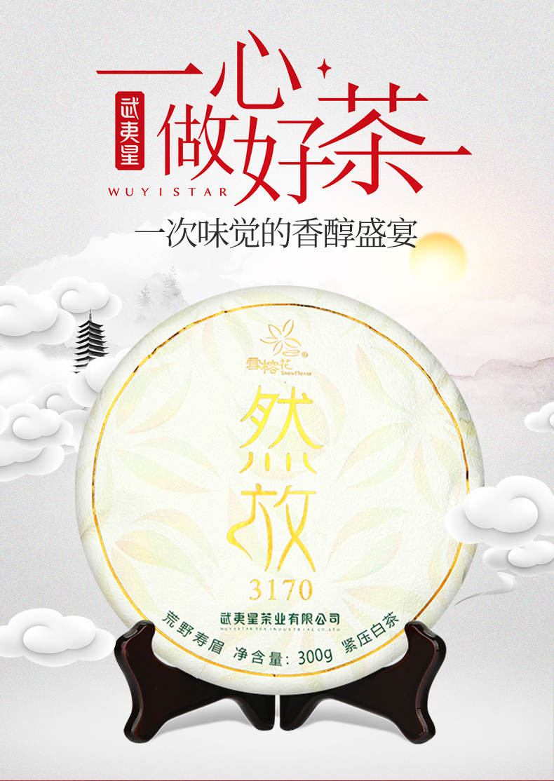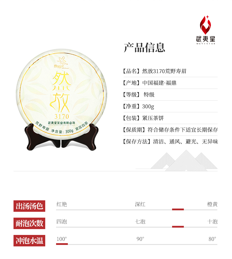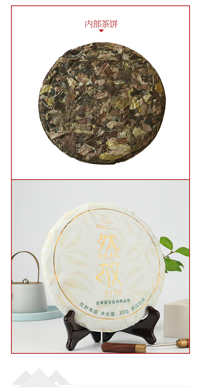 武夷星然放3170荒野寿眉饼装福建福鼎白茶茶叶老白茶300g
