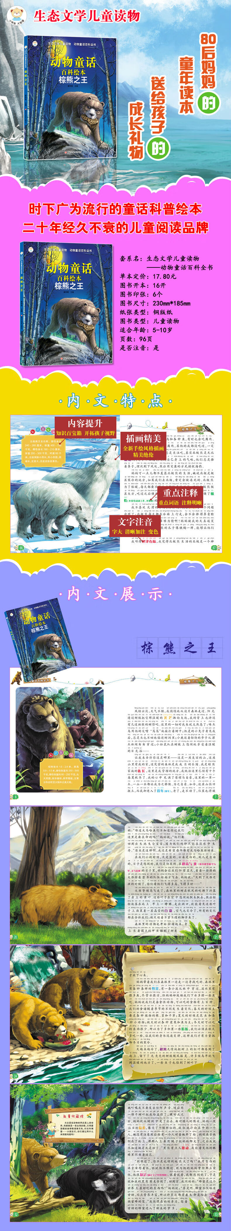 生态文学儿童读物 动物童话百科全书棕熊金毛等【加厚铜版纸】