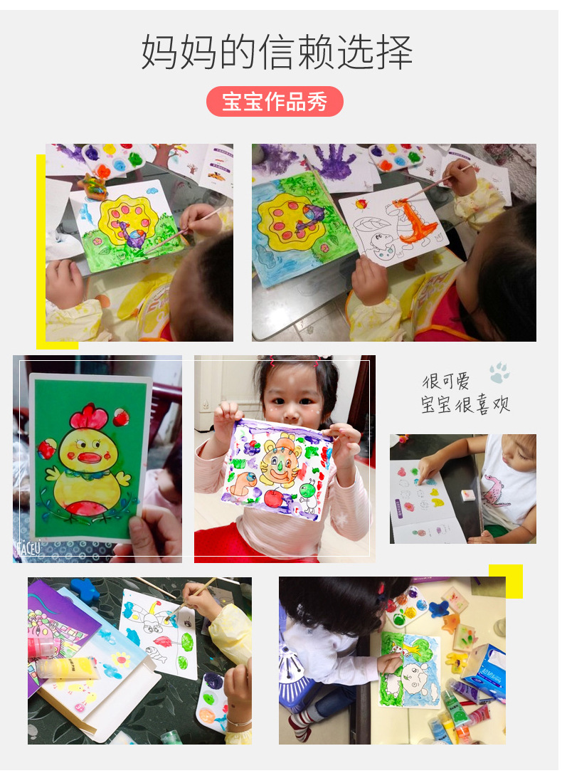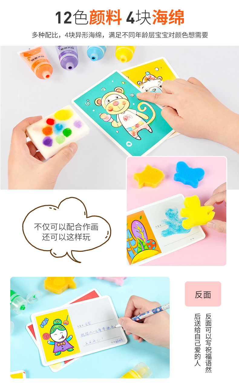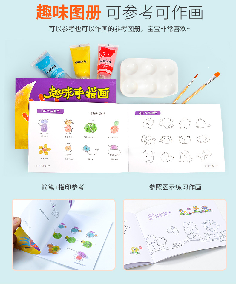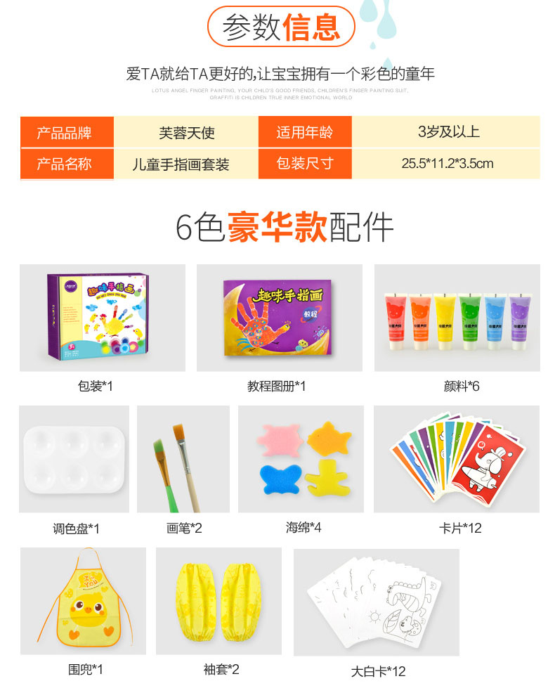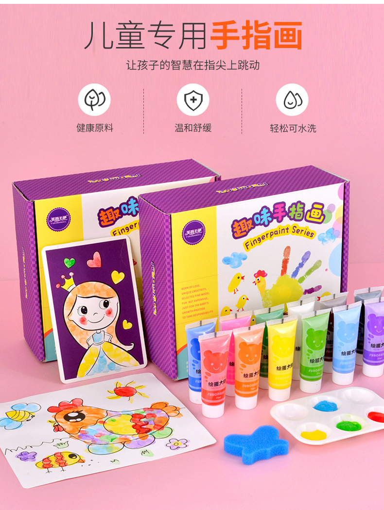 【可水洗的涂鸦材料 送围裙及袖套】芙蓉天使儿童手指画涂鸦画 宝宝益智科教玩具